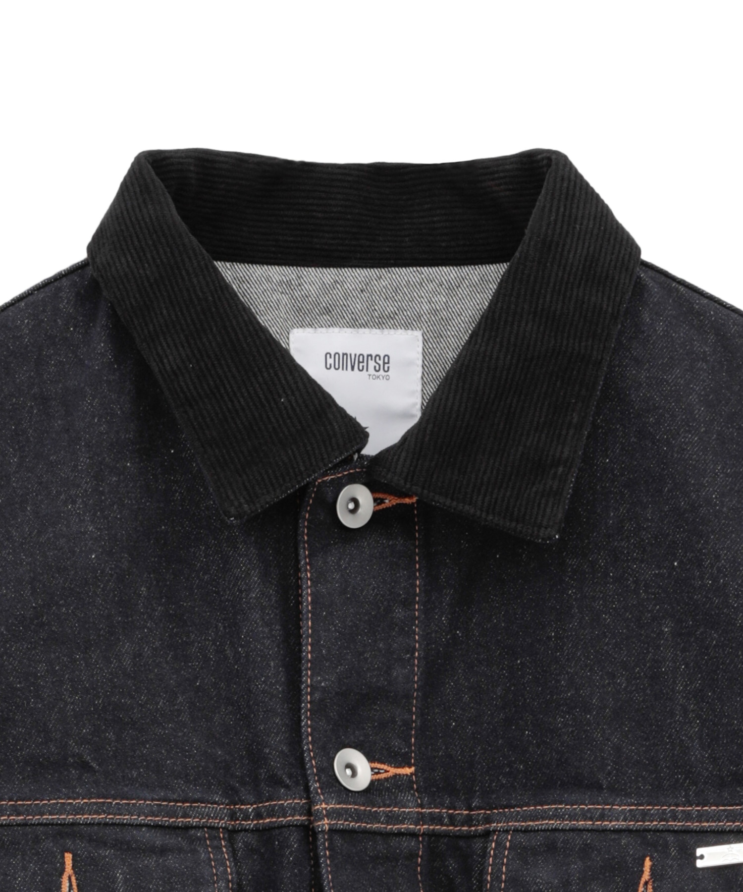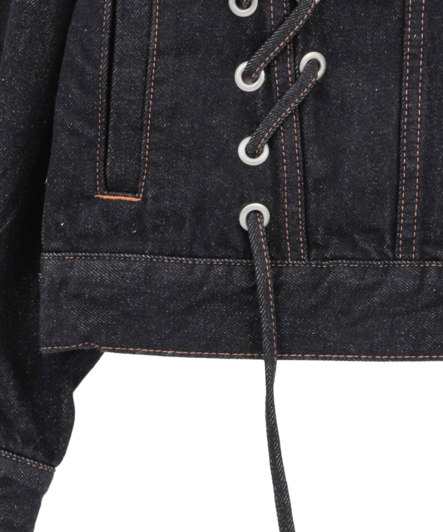シューズをイメージしたレースアップデザインが大胆に施されたデニムジャケット。