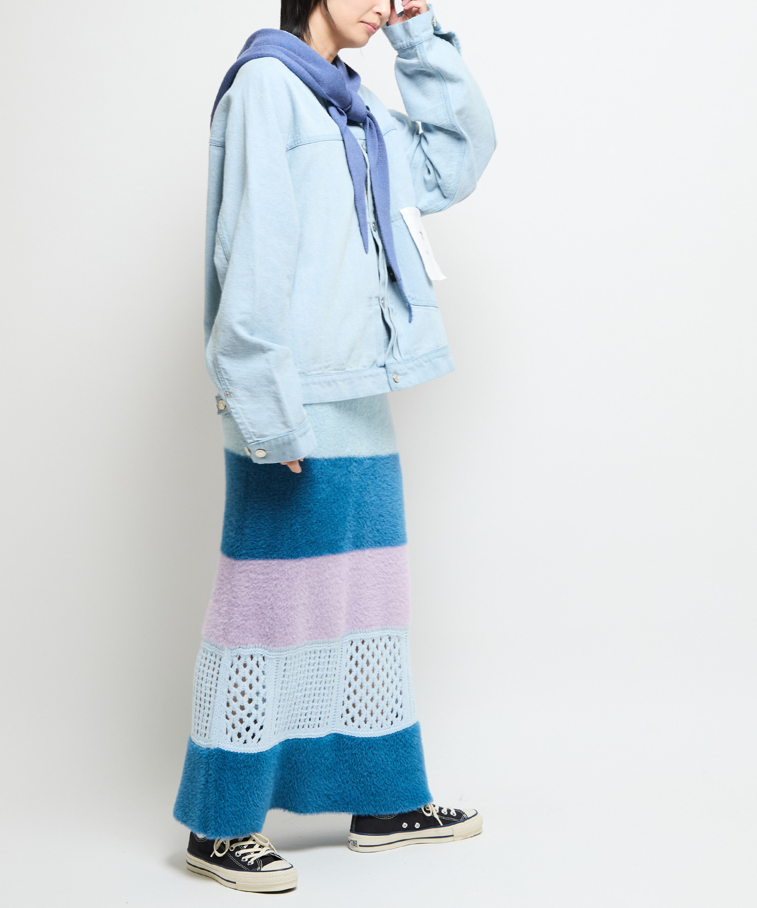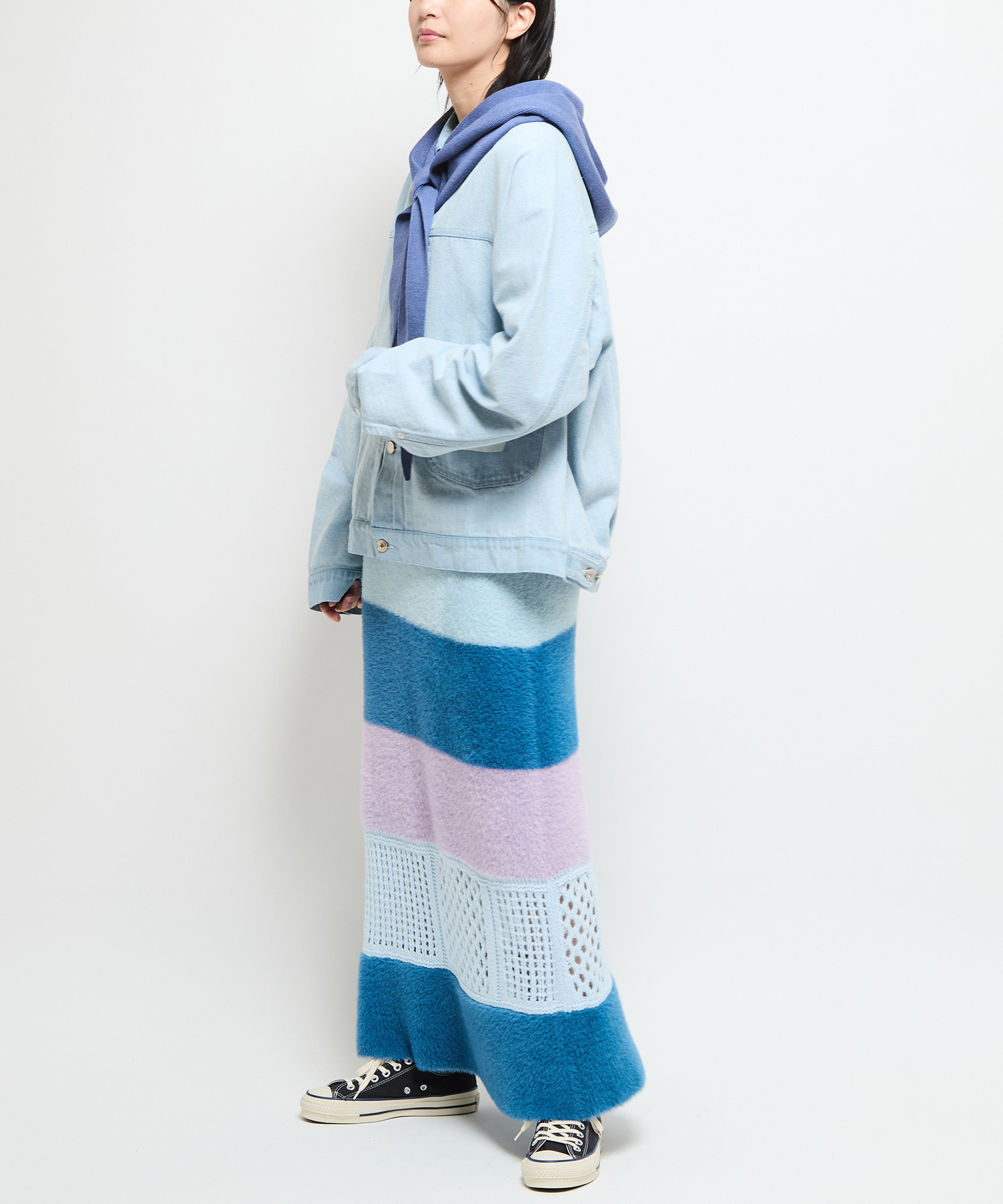 ふんわりとした温かみのあるフェザーニット素材を使用したスカート。