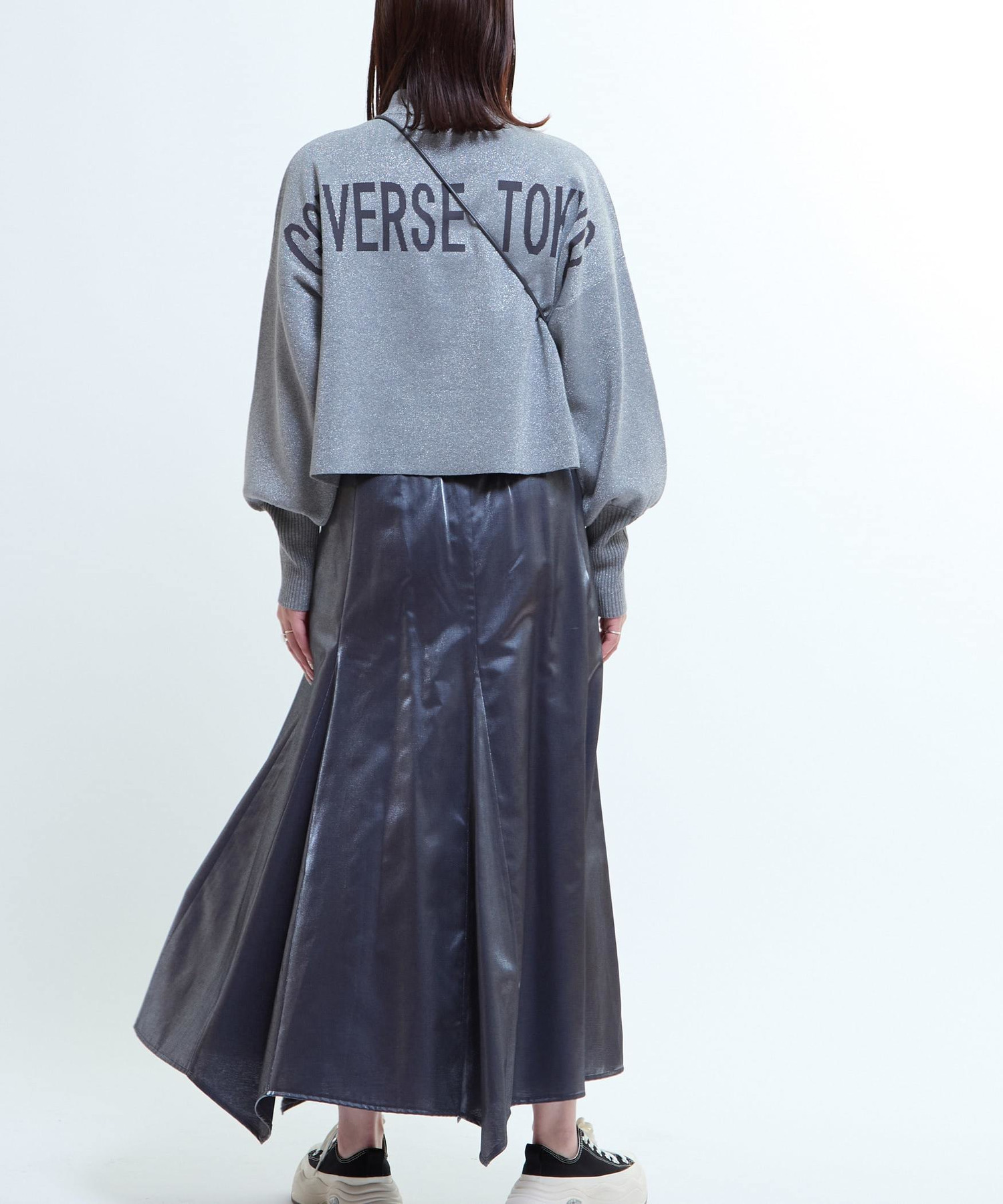 フロントはあえてシンプルに、背面には透け感のあるシアー素材で大胆に「CONVERSE TOKYO」ロゴを施し、目を惹くアイテム。