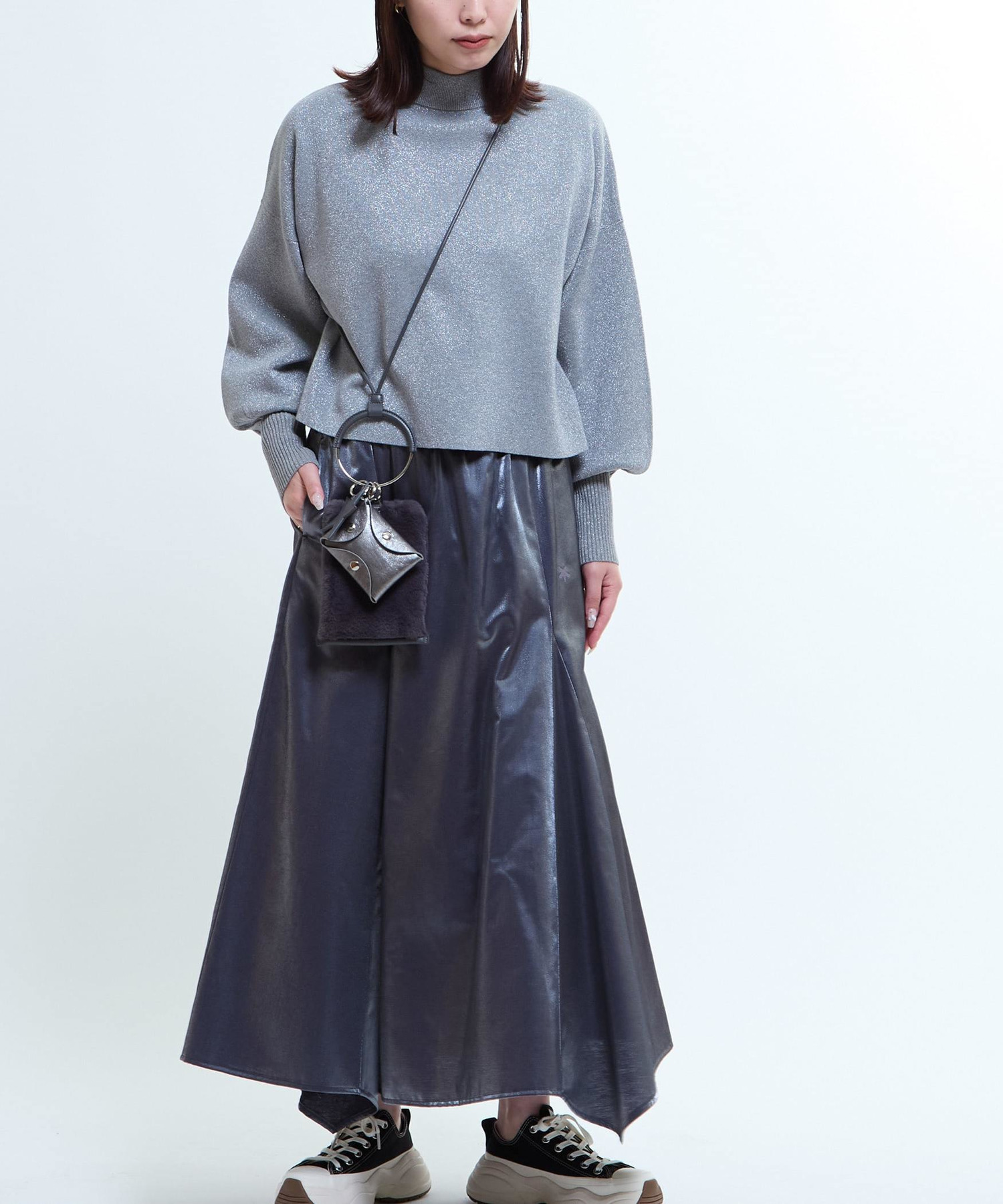 上品なラメ感のある糸を使用した、華やかさと女性らしさを兼ね備えたニットプルオーバー。