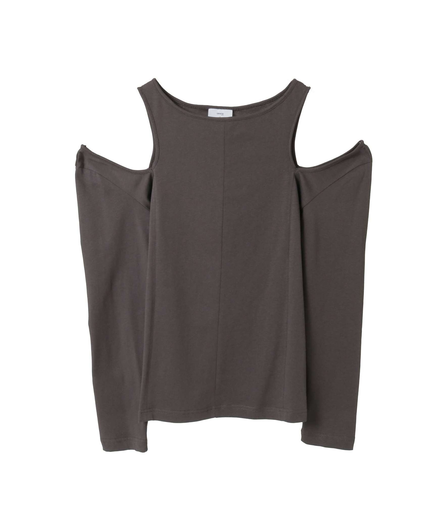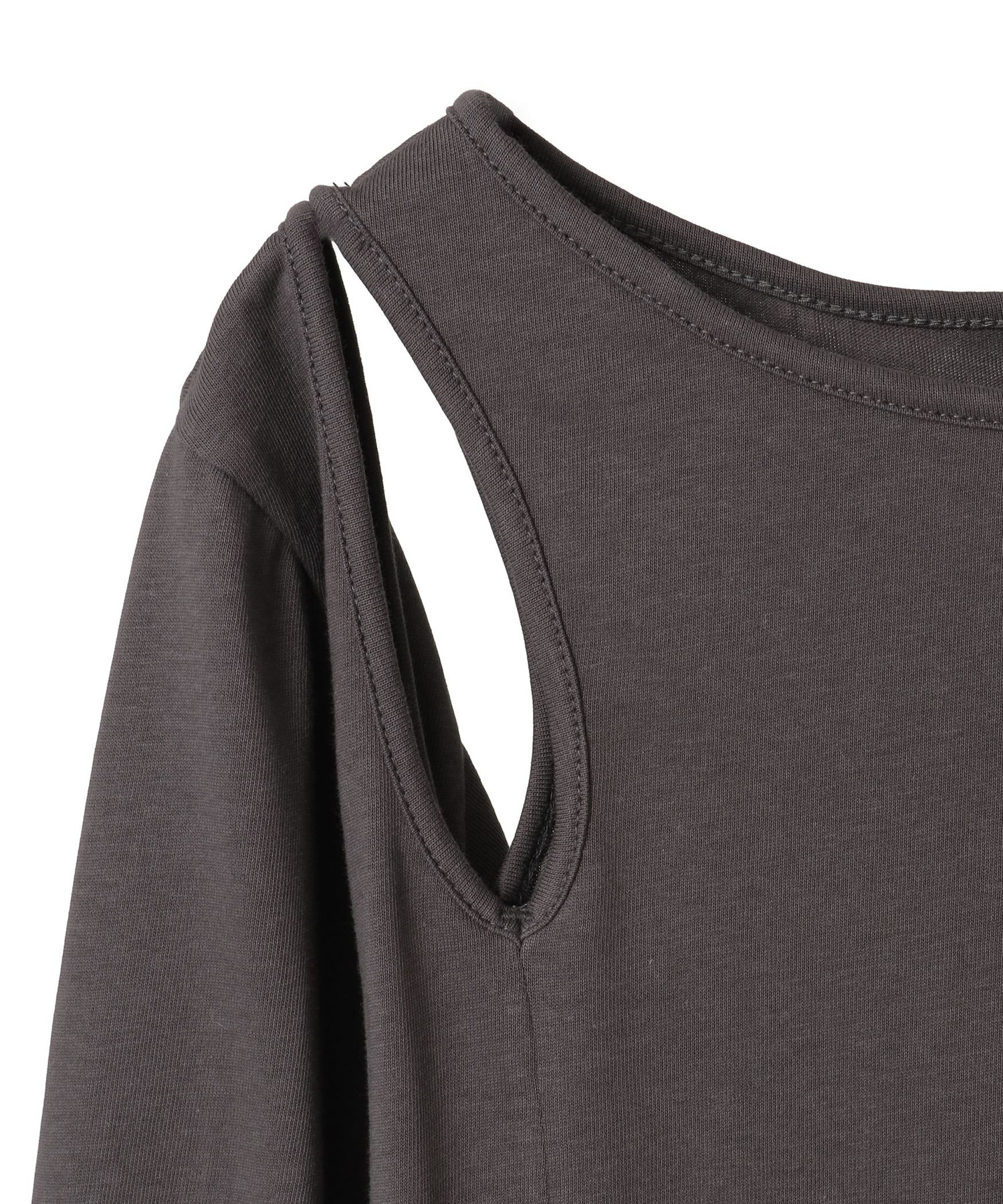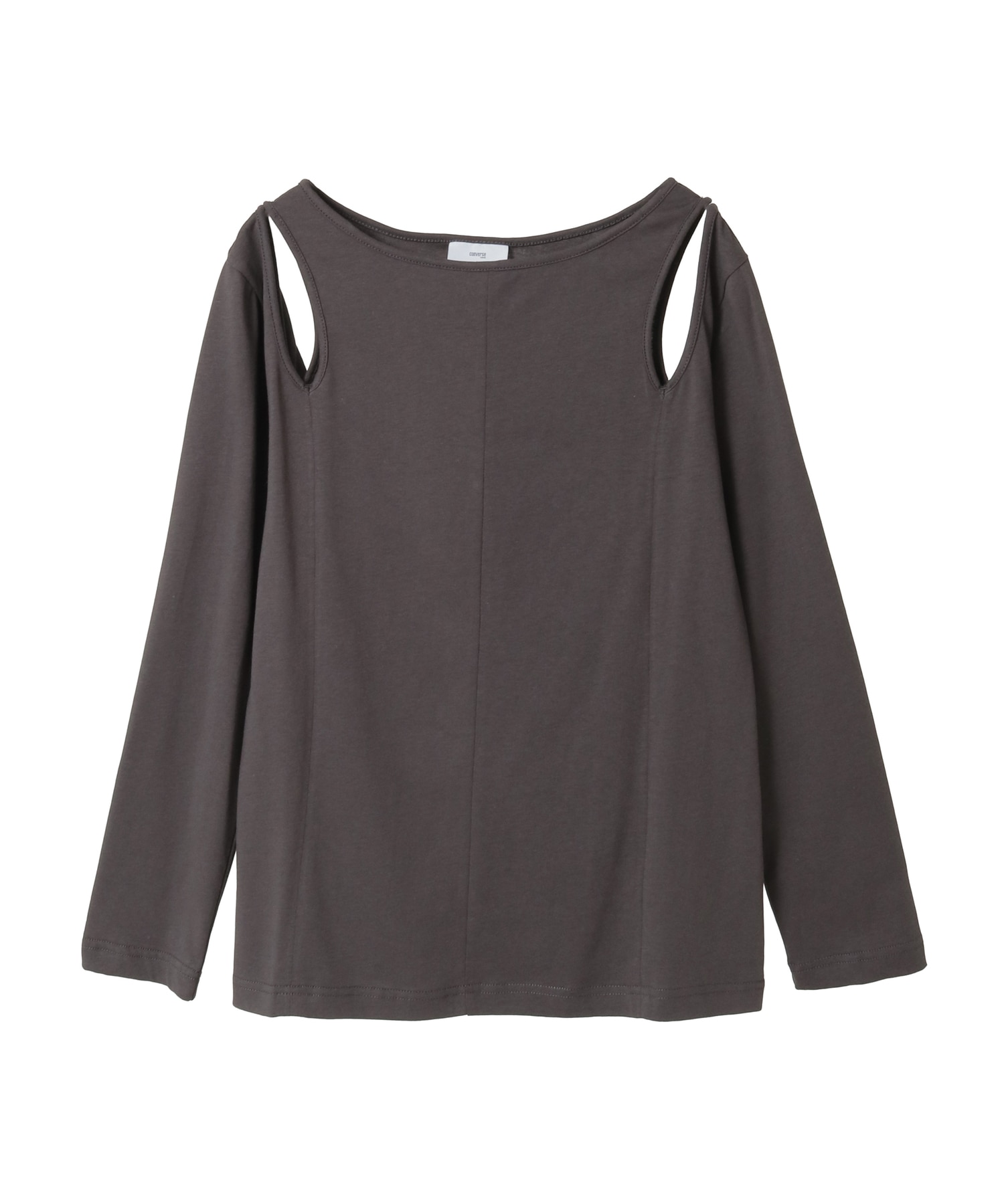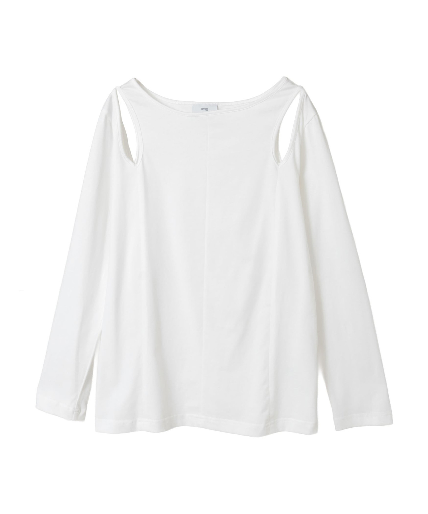 一枚でカジュアルからモードまで幅広く活躍する、肩部分にスリットを施したデザイントップス。
