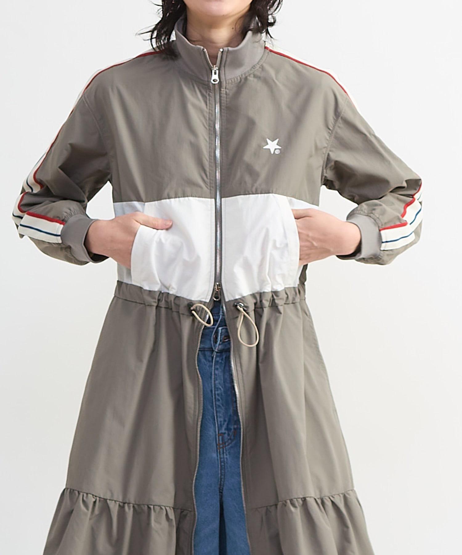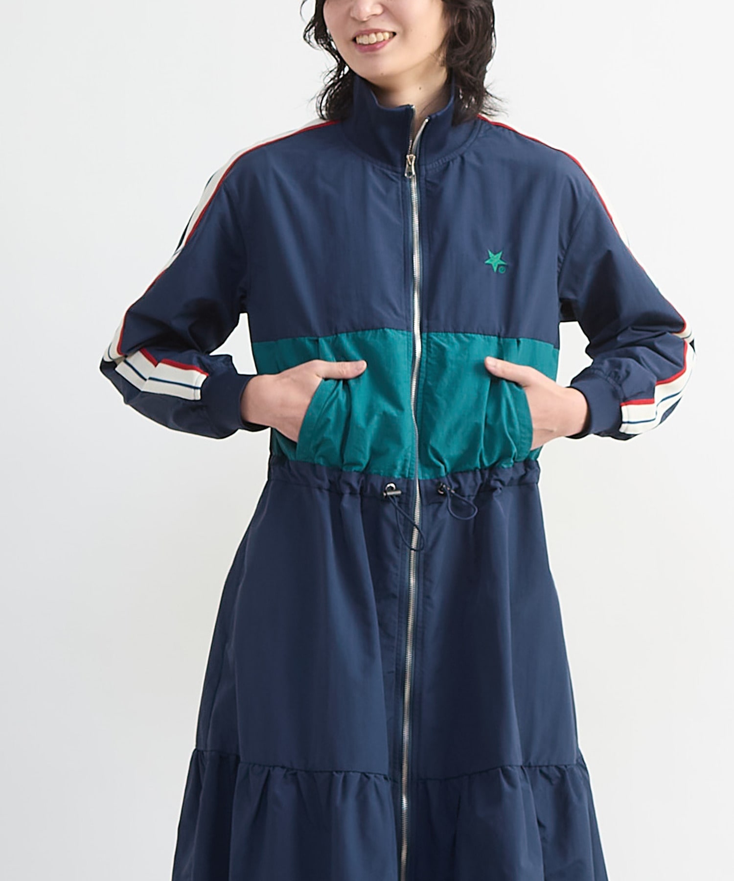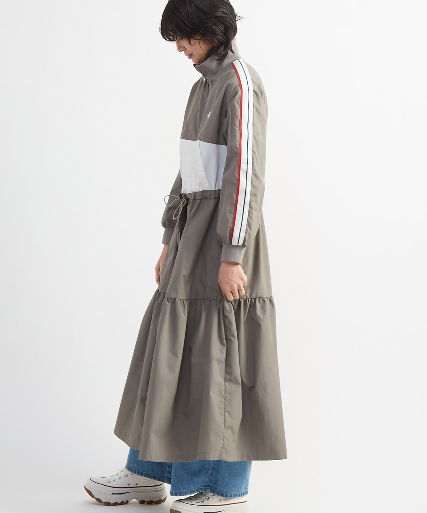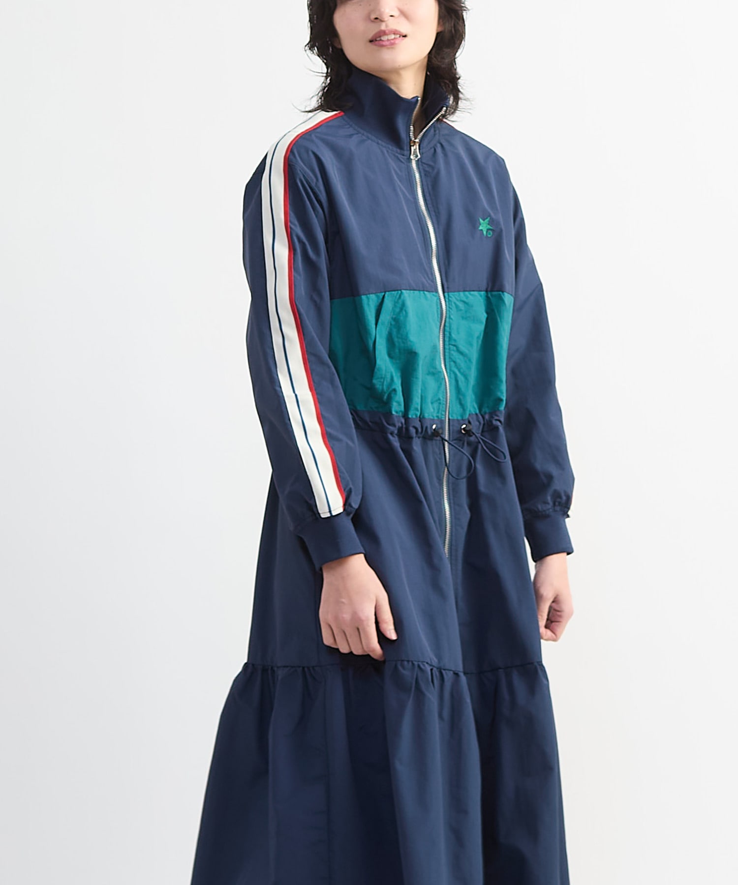 スポーティーな要素と女性らしさをバランスよく取り入れた、トラックデザインのロングワンピース。