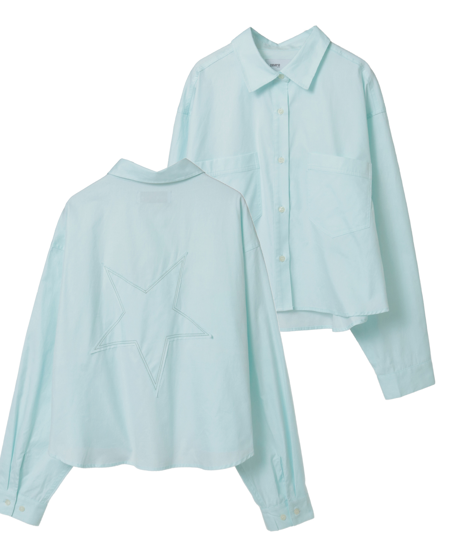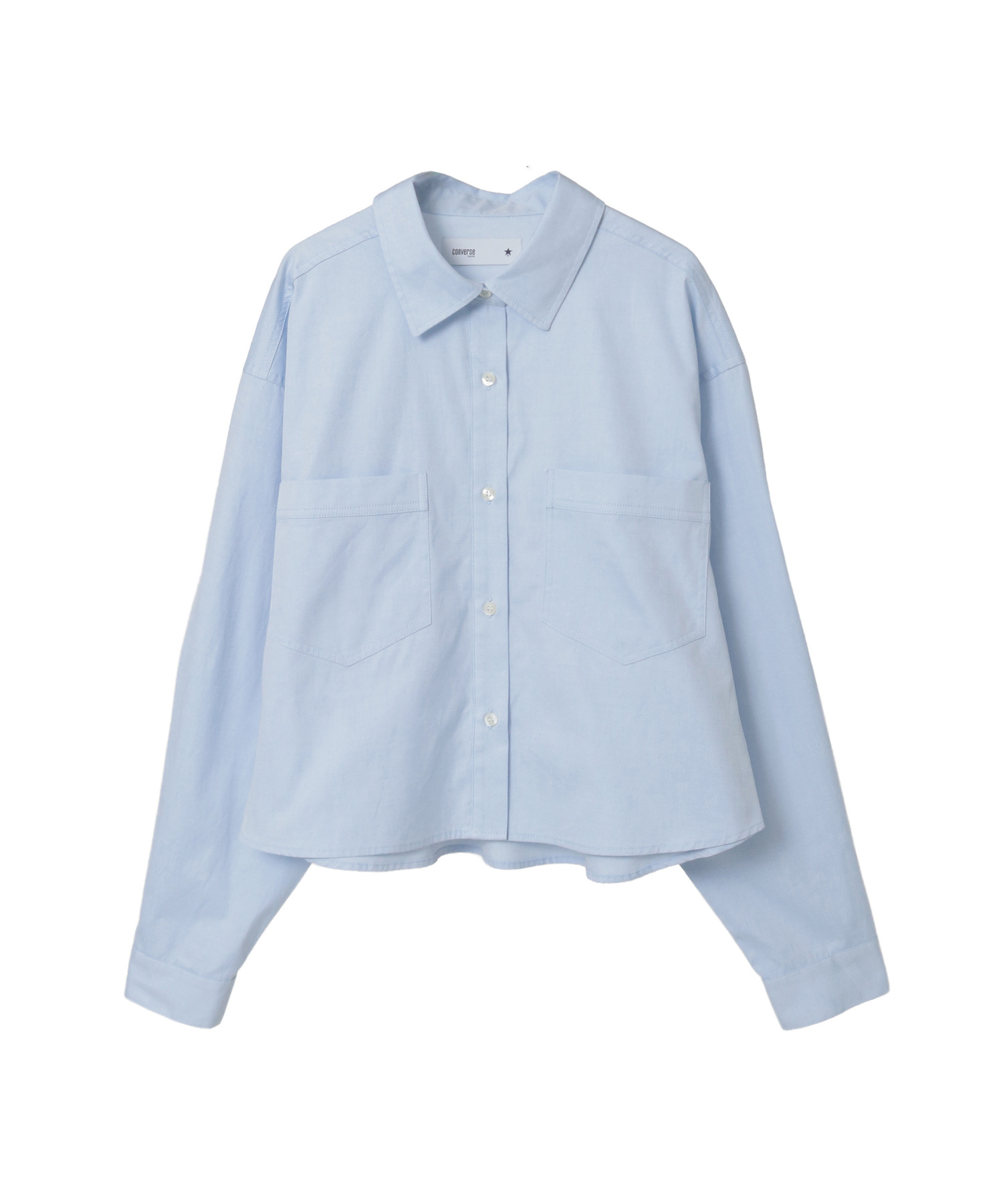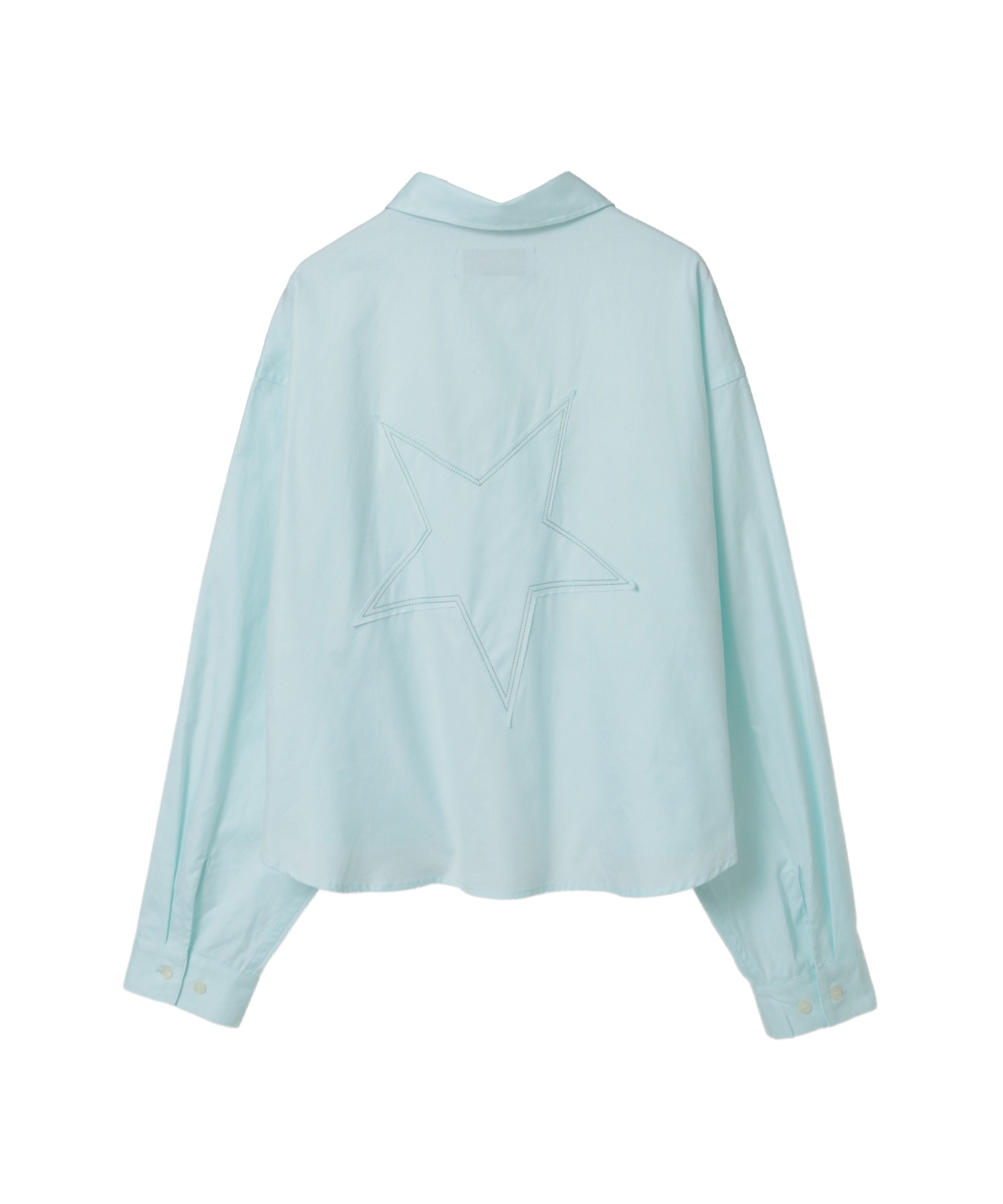 背面の大きな星★パッチが目を惹く、短丈仕様のオックスフォードシャツ。