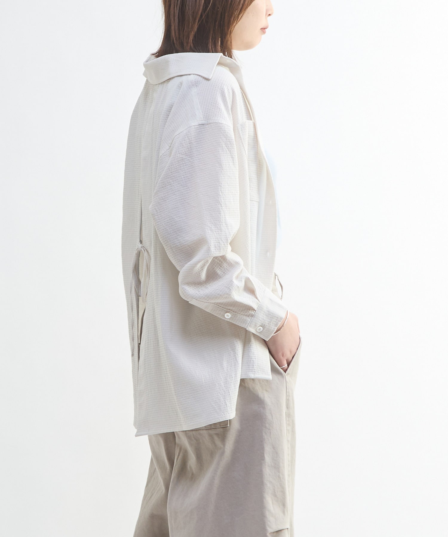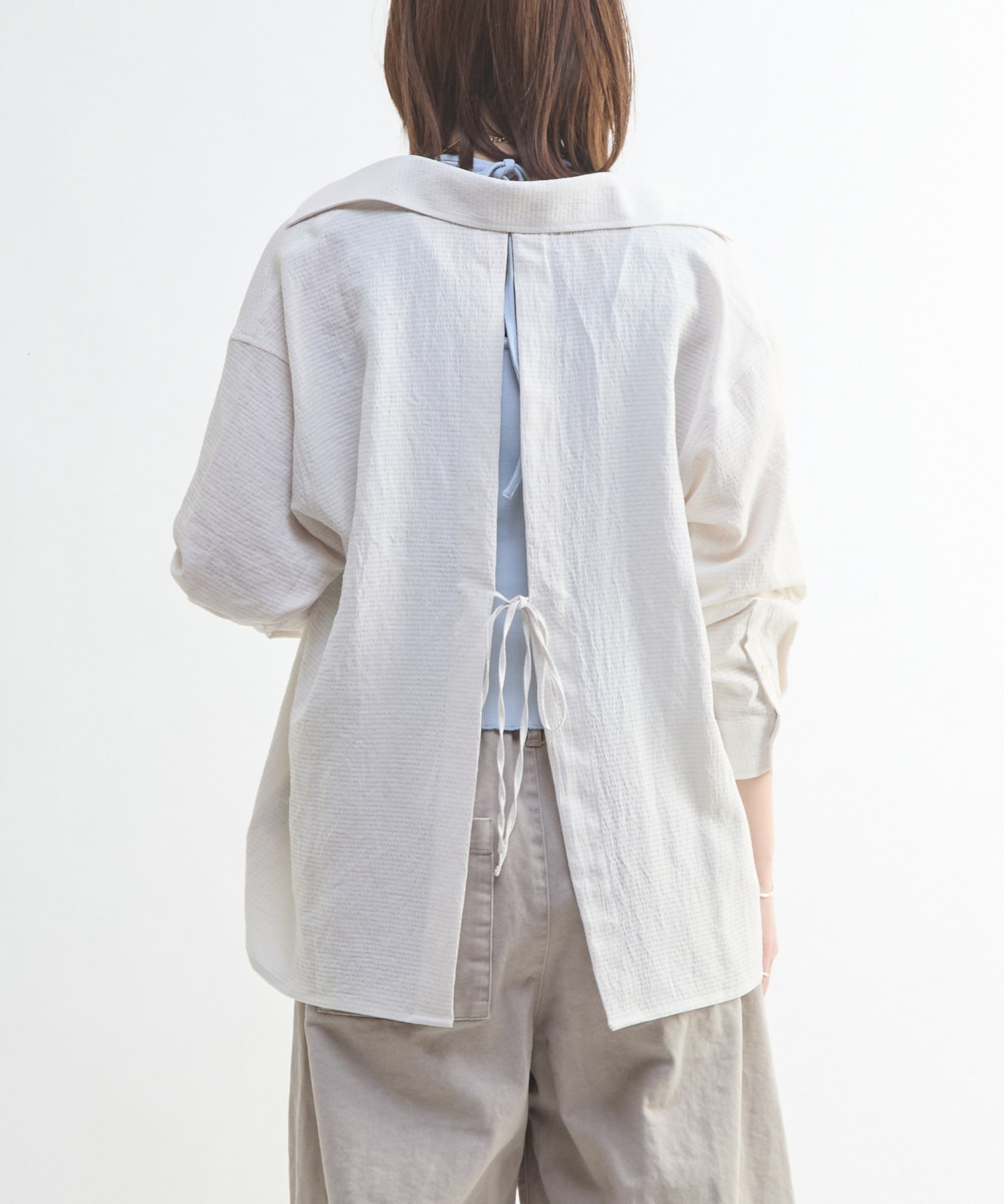 大きく開いたバックスリットが目を惹く、ロングスリーブシャツ。