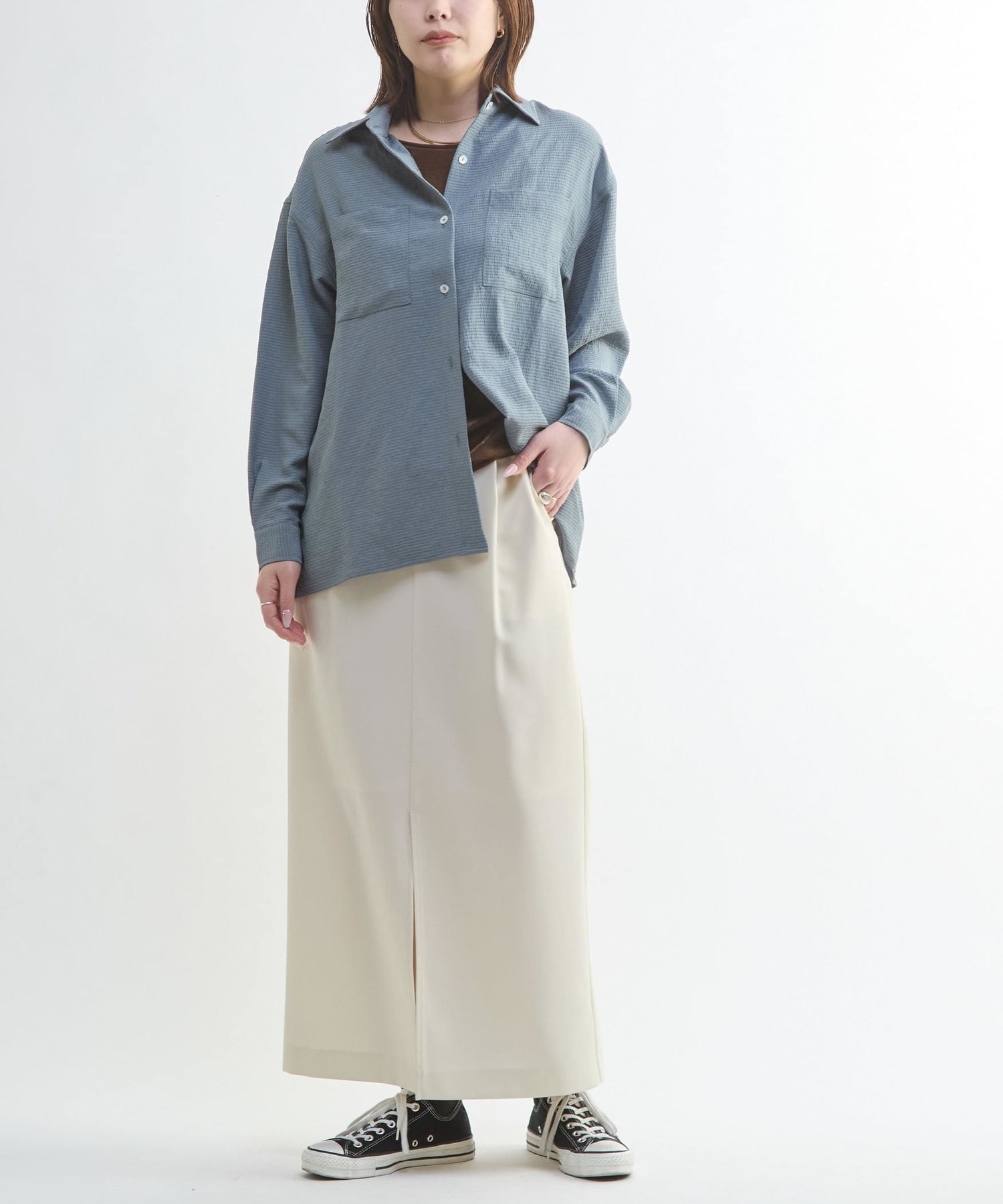 バックスリットを活かし、インナーにカラータンクトップやシアートップスを差し込んだレイヤードスタイルがおすすめ。