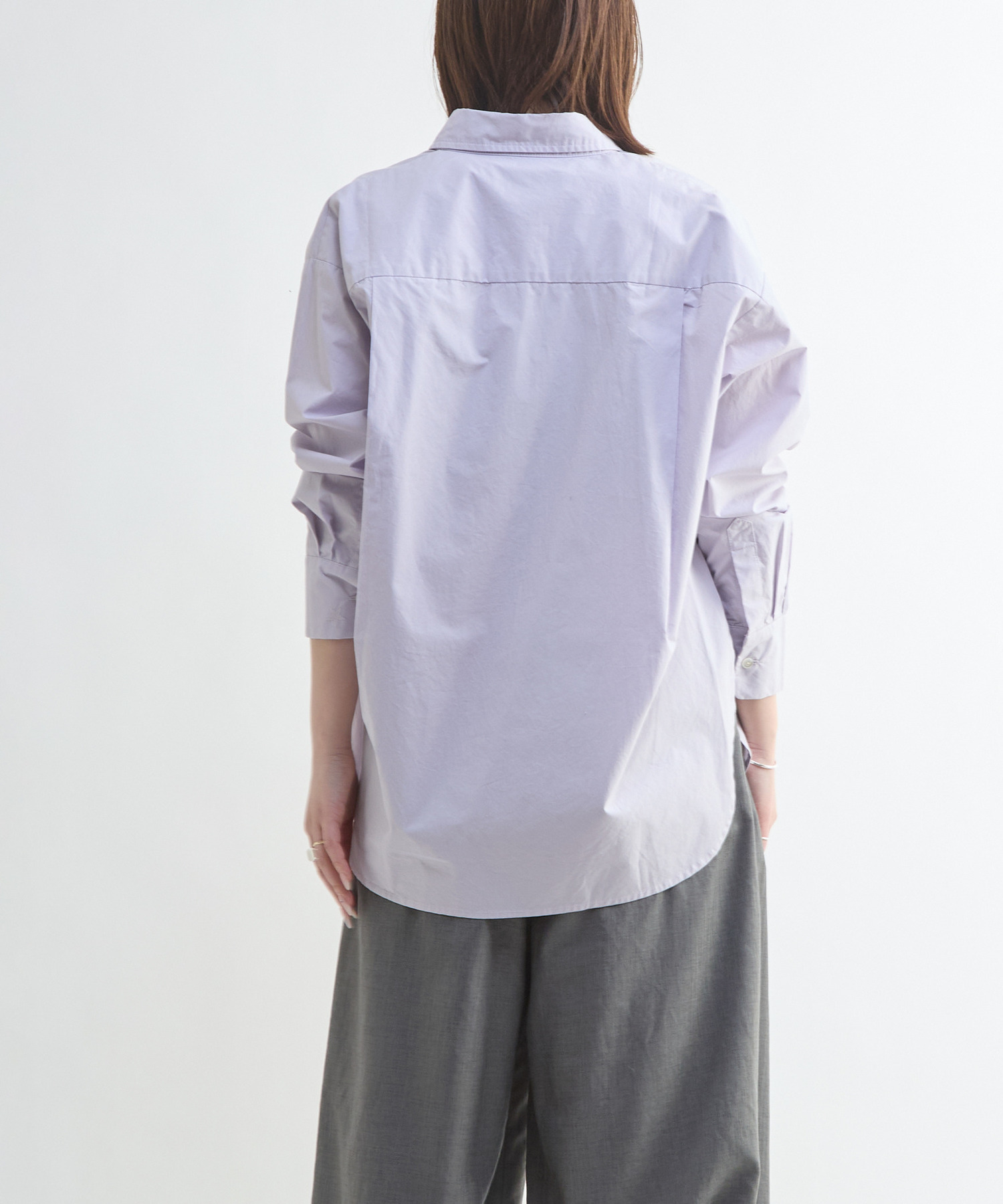 背面に深めのタックをたっぷりと施した、後ろ姿まで印象的なボックスシルエットシャツ。