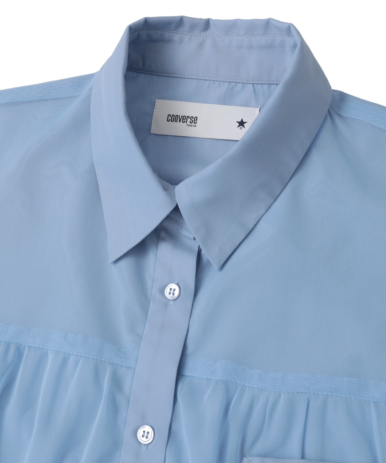 胸ポケットには星のワンポイント刺繍をプラスし、さりげなくCONVERSE TOKYOらしさを表現。