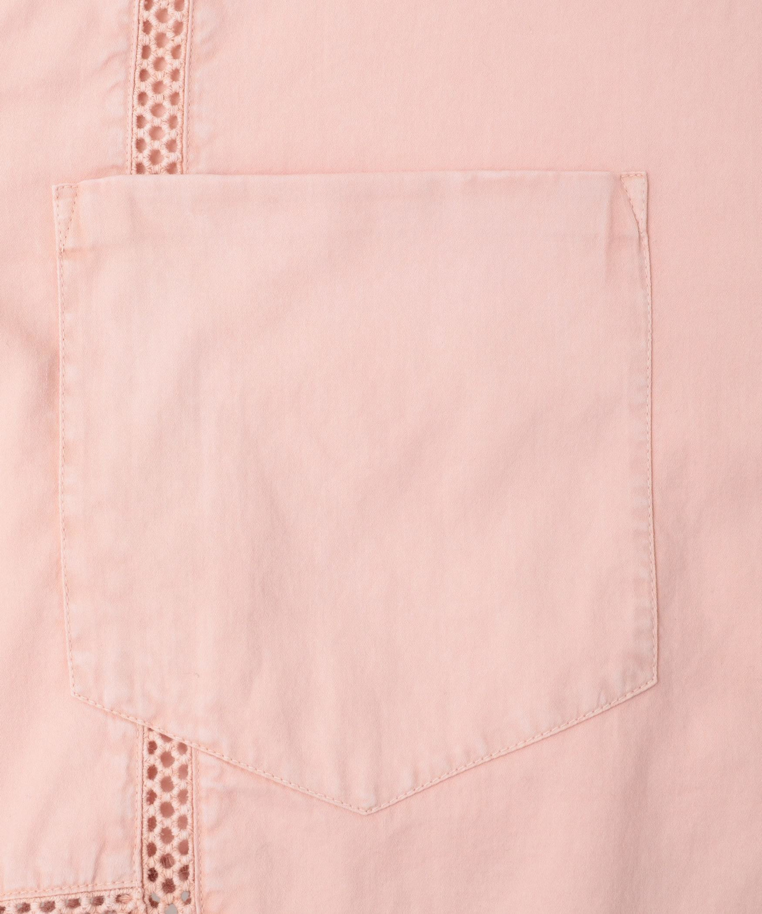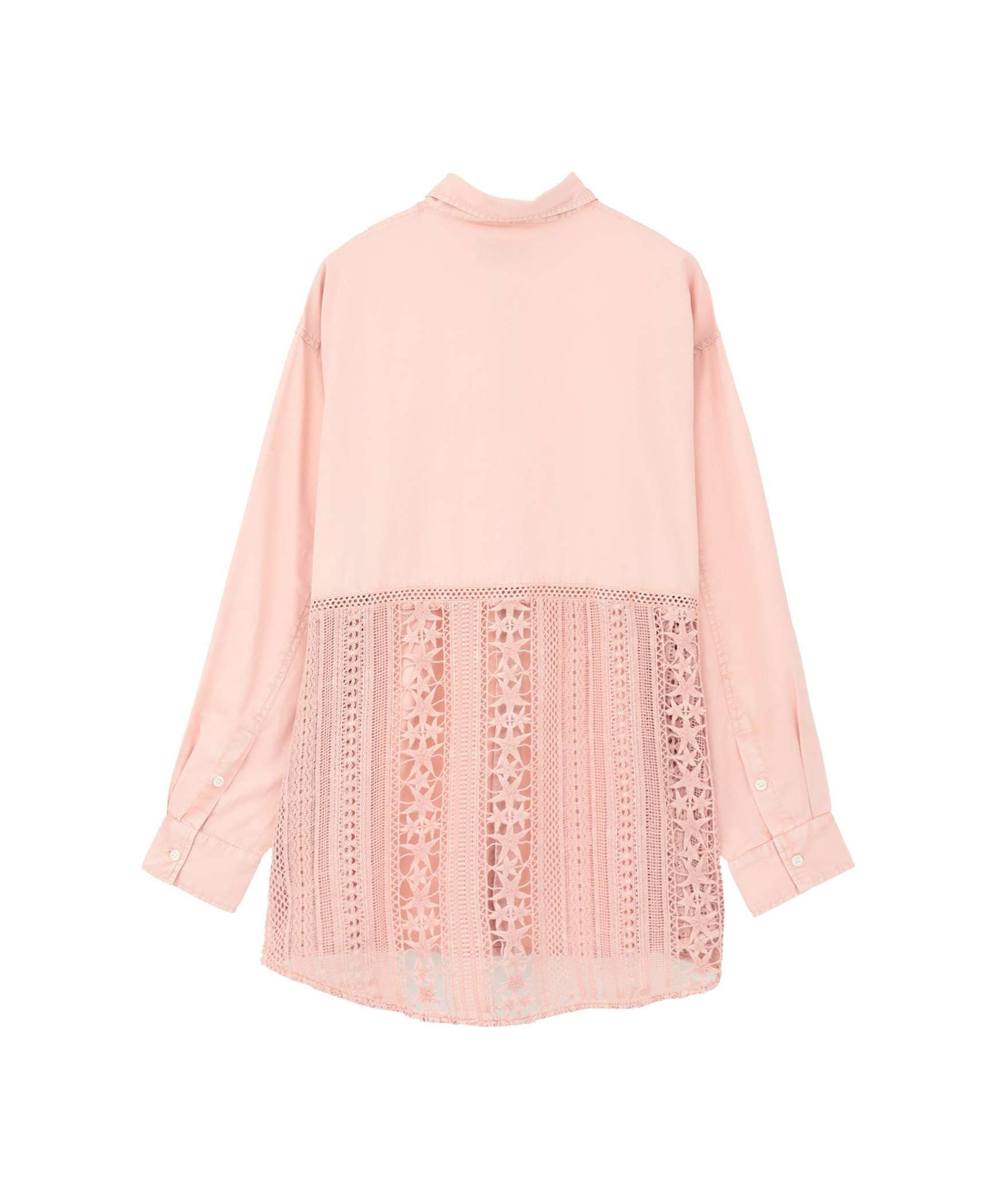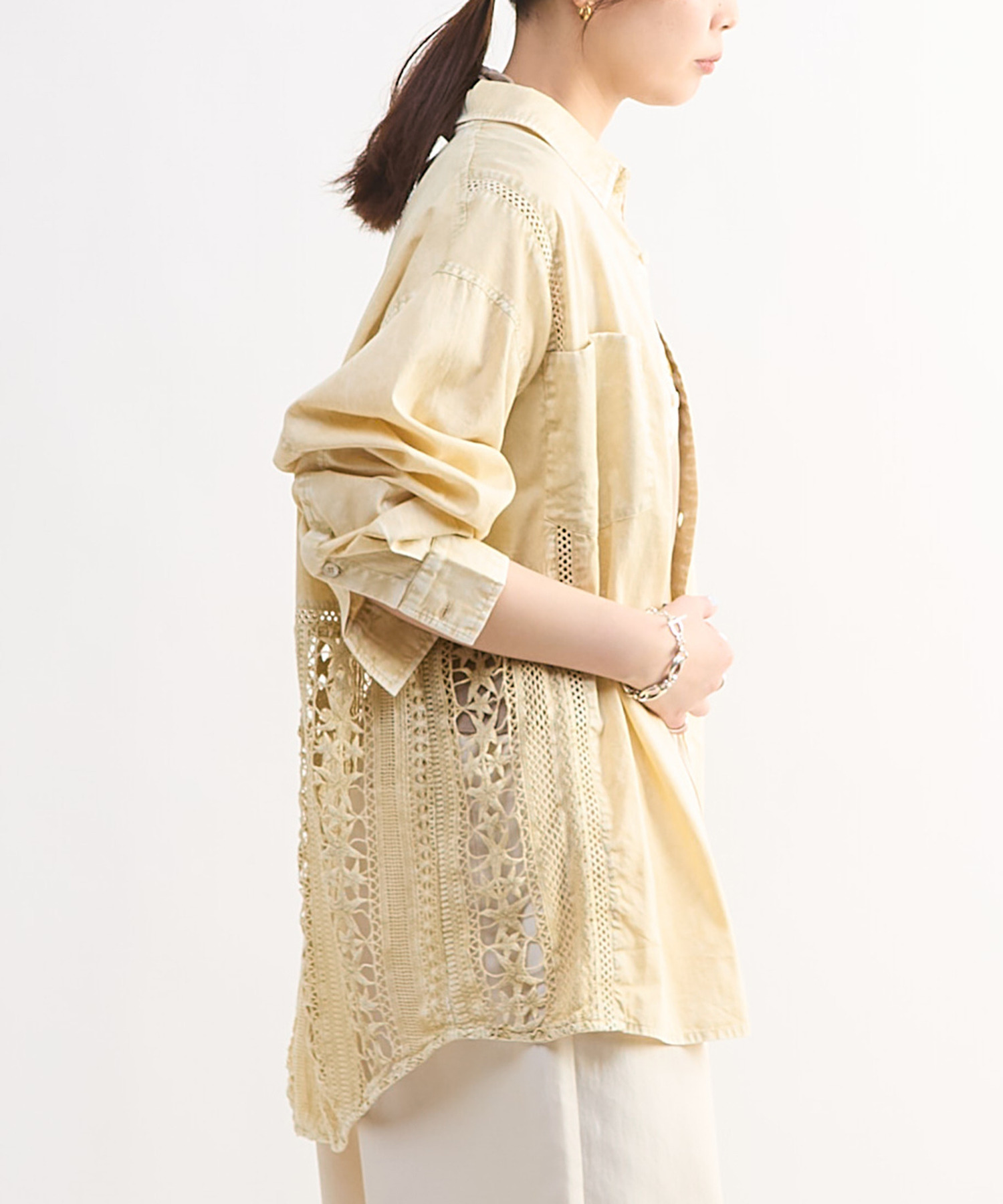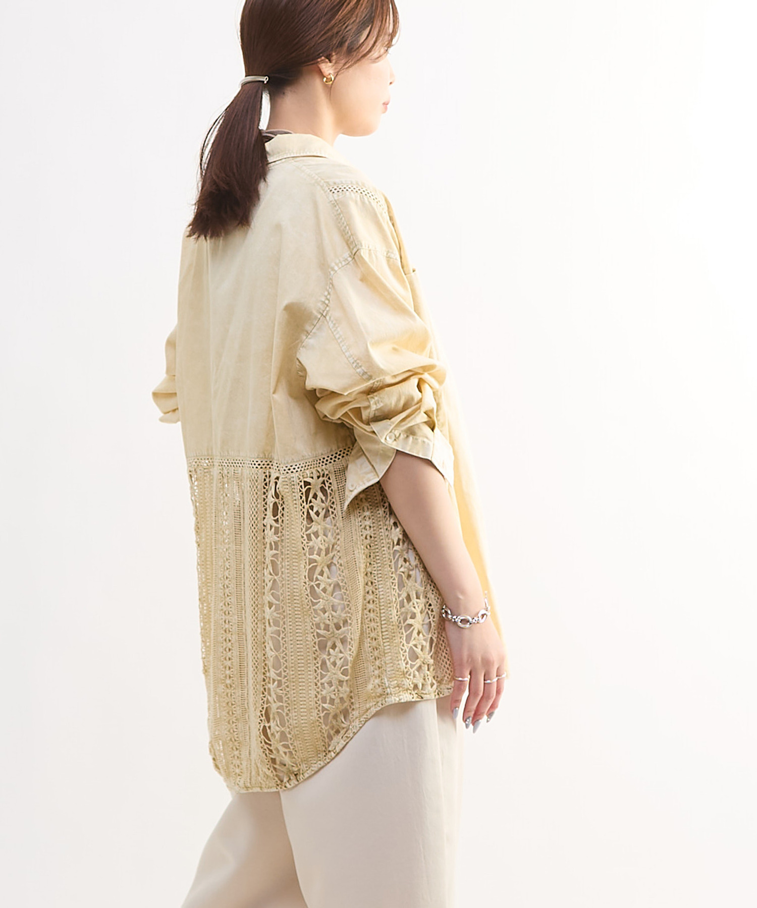 アシッドウォッシュ レースドッキング オーバーシャツ