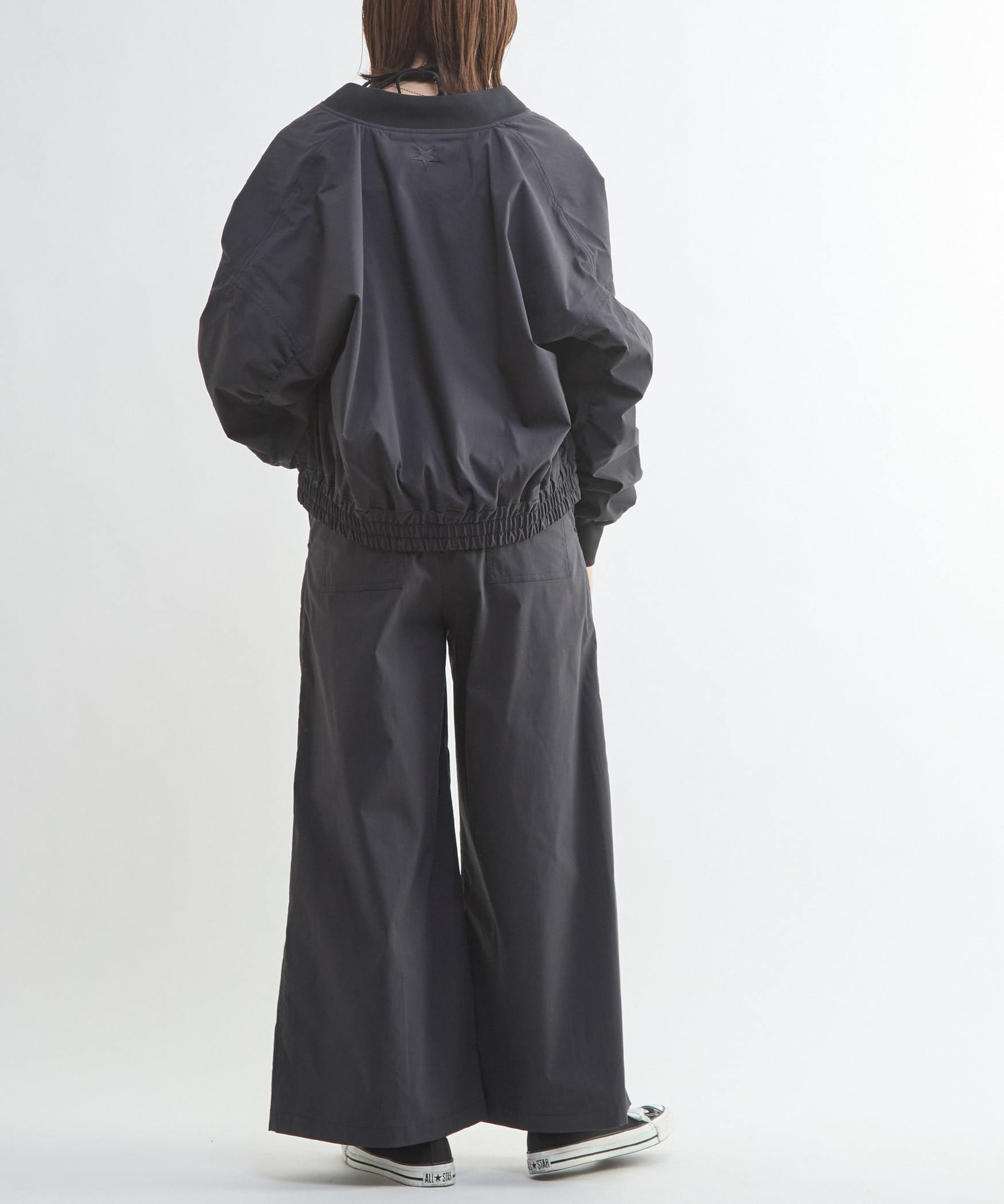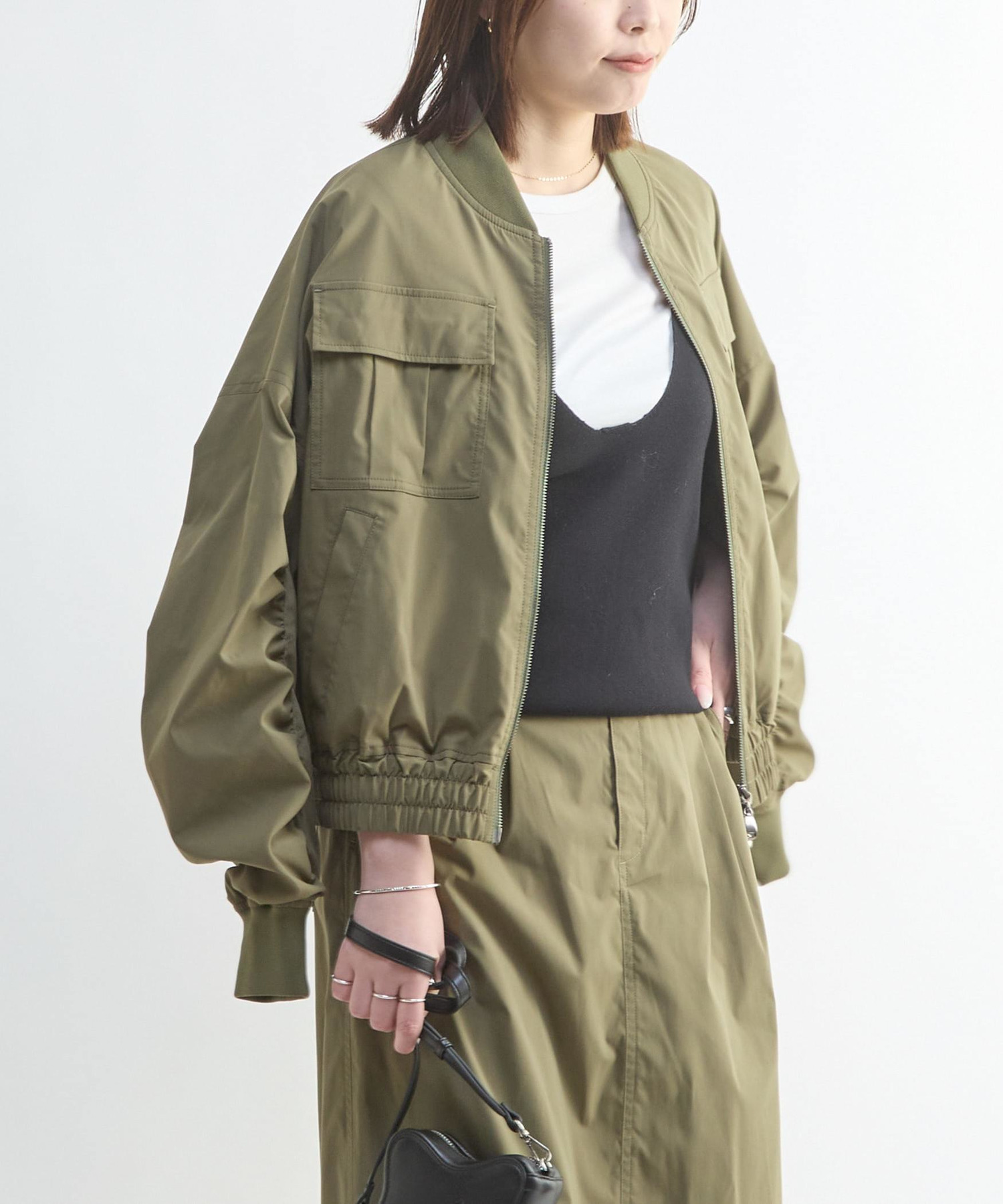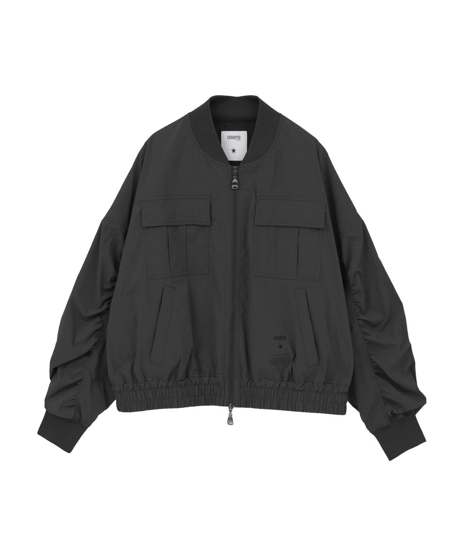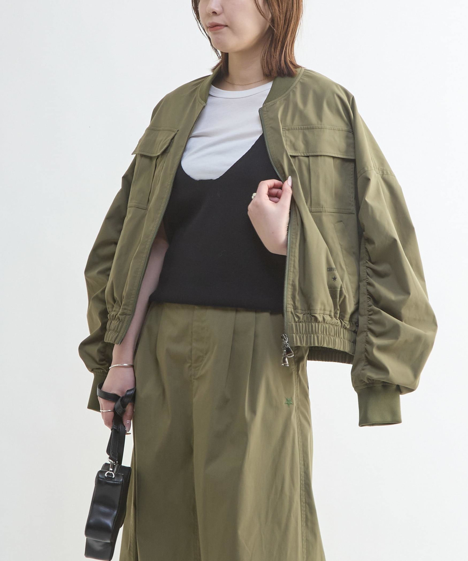 袖にたっぷりとギャザーを寄せ、丸みのあるボリュームスリーブに仕上げたMA-1ジャケット。
