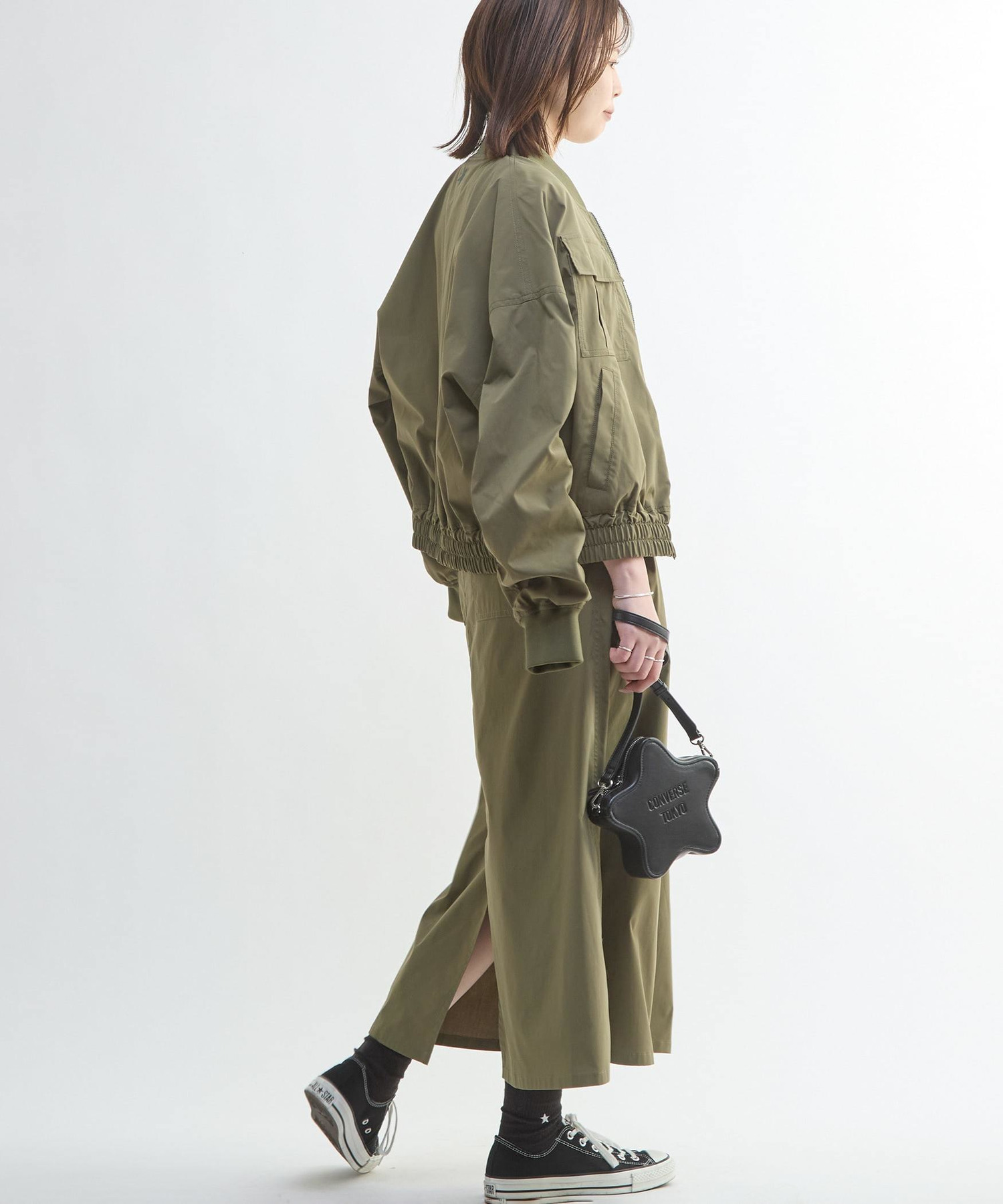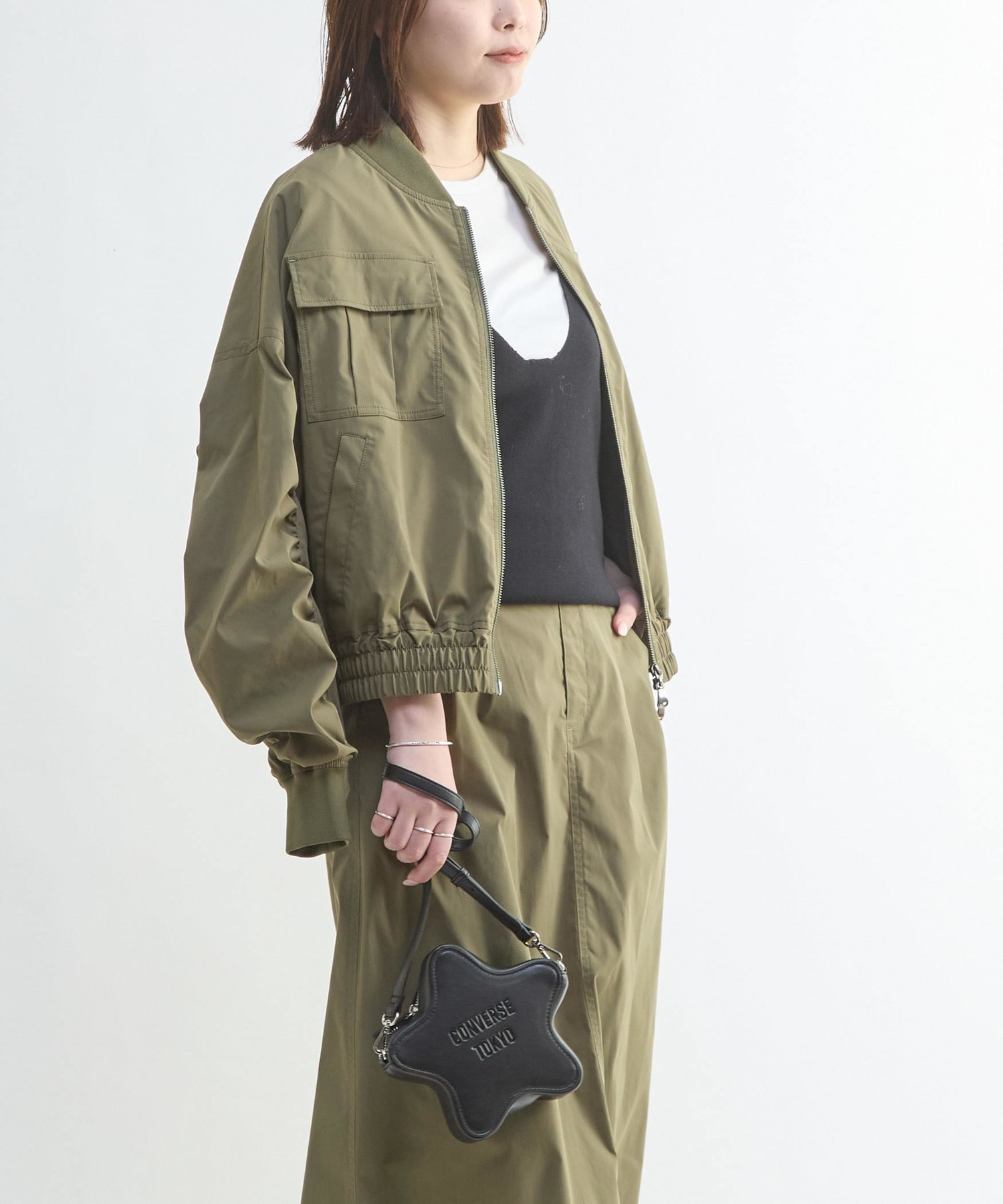 MA-1のボリューム感を活かし、ナロースカートやスッキリとしたシルエットのパンツを合わせたメリハリのあるスタイリングもおすすめ。