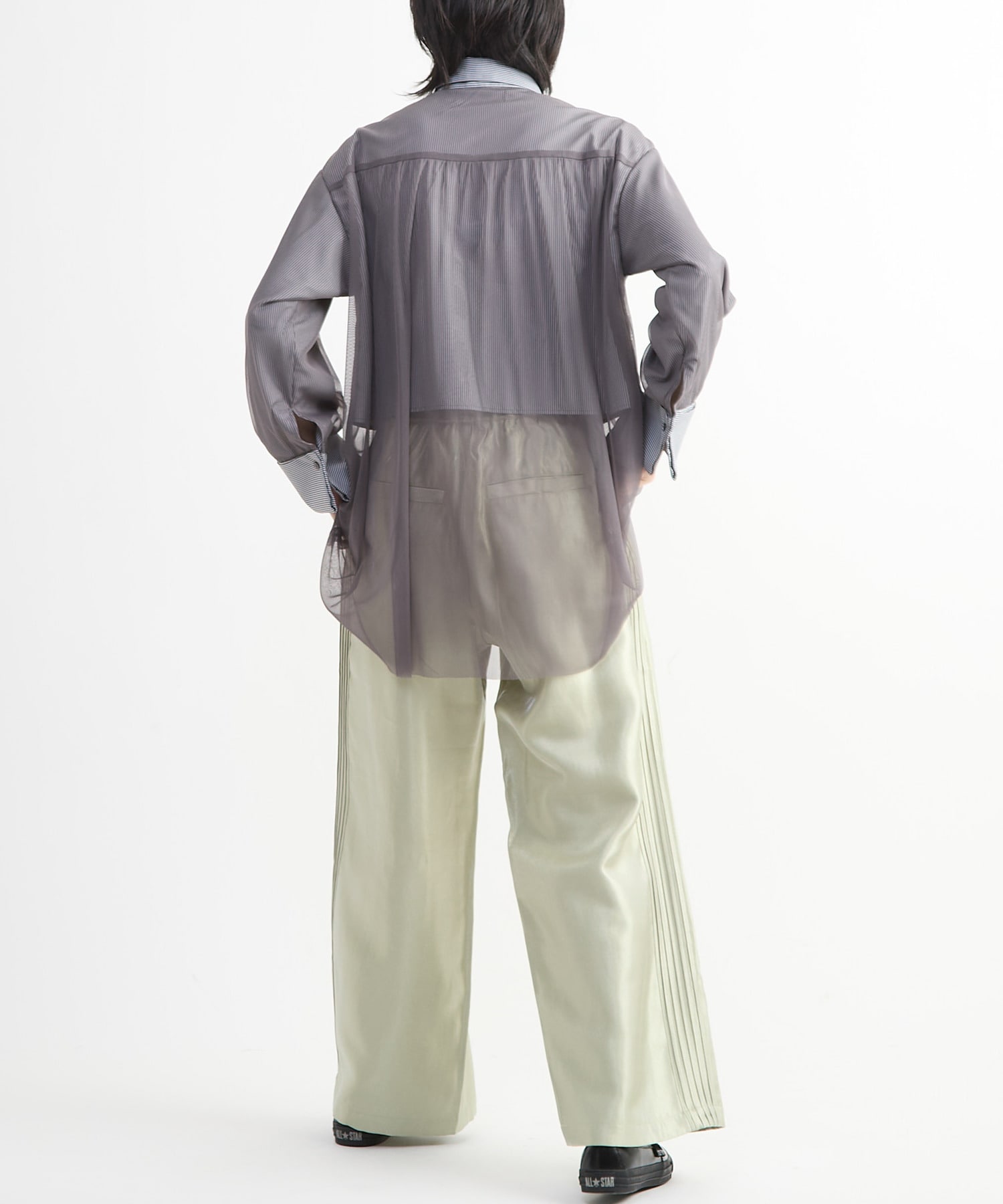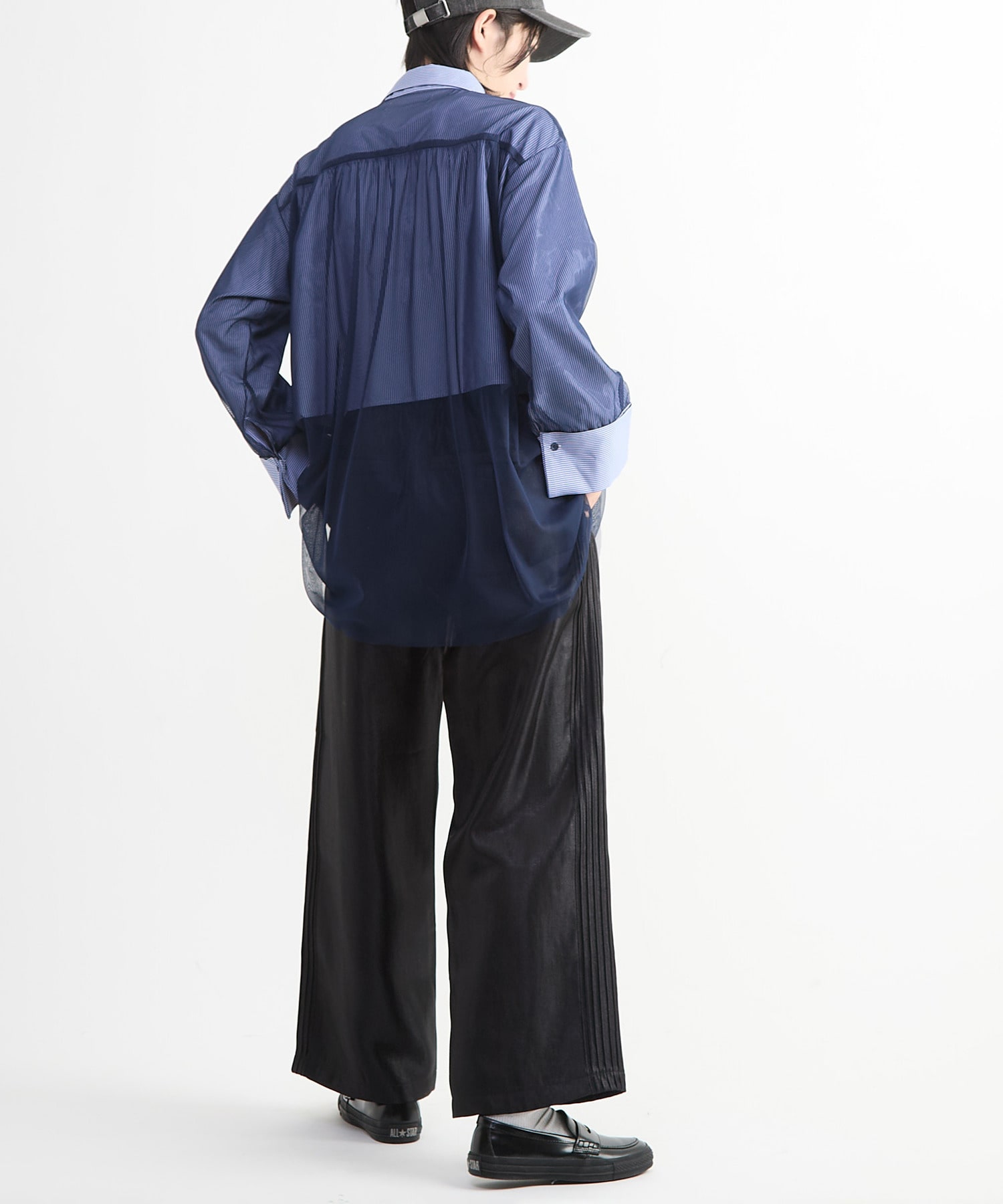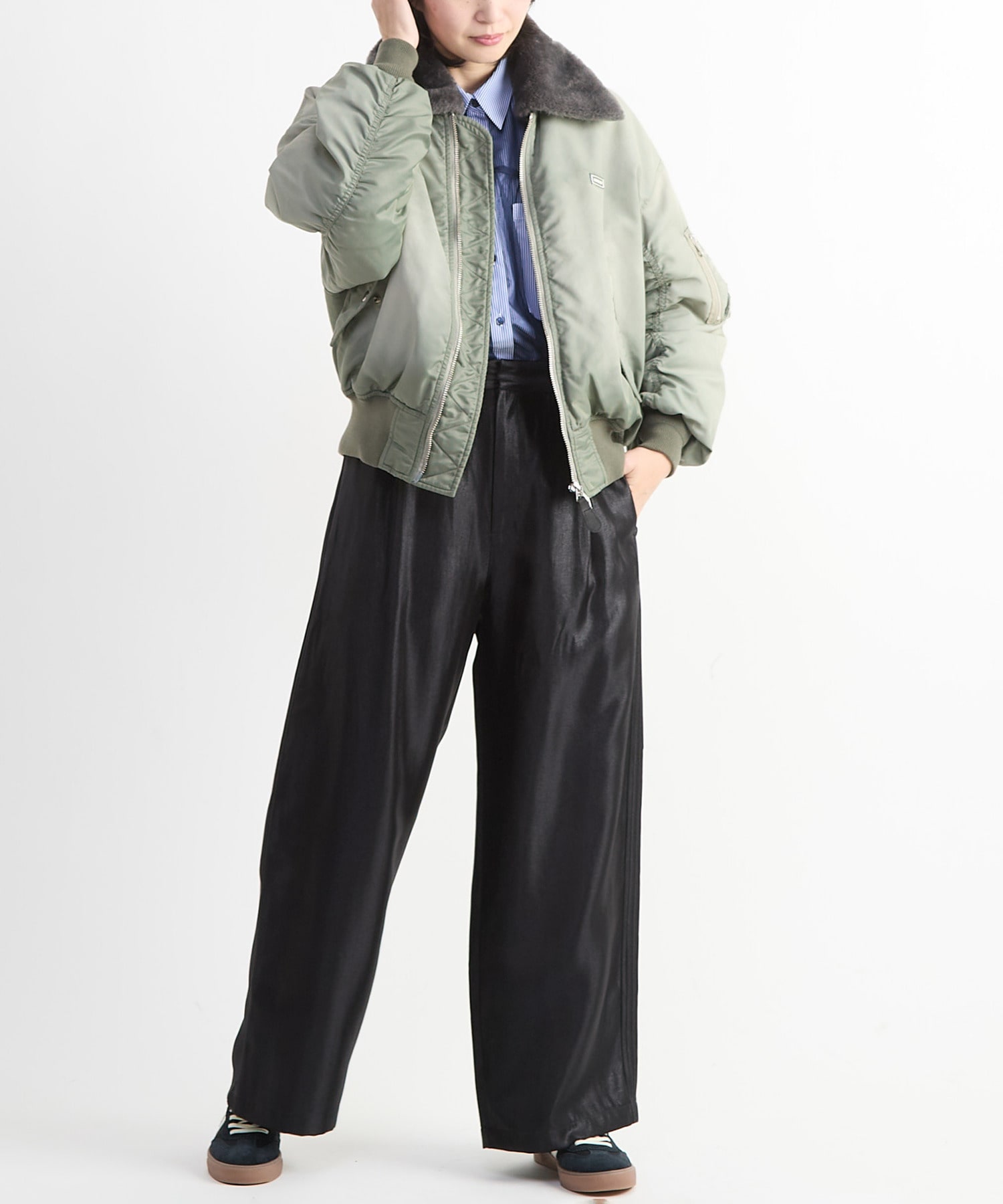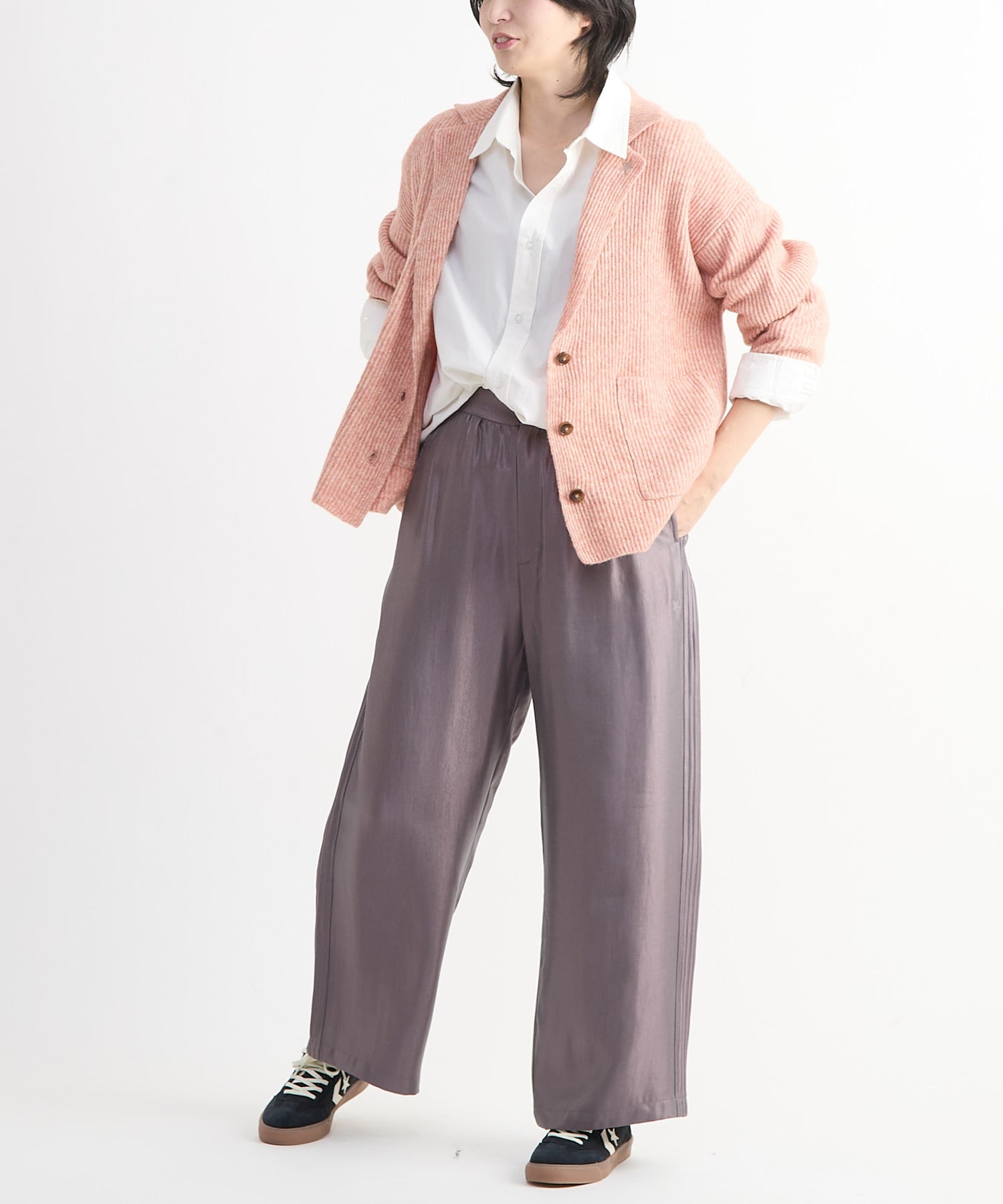 スニーカーでスポーティーに、ブーツやヒールでモード寄りにと、足元次第で印象の変化も楽しめるアイテム。