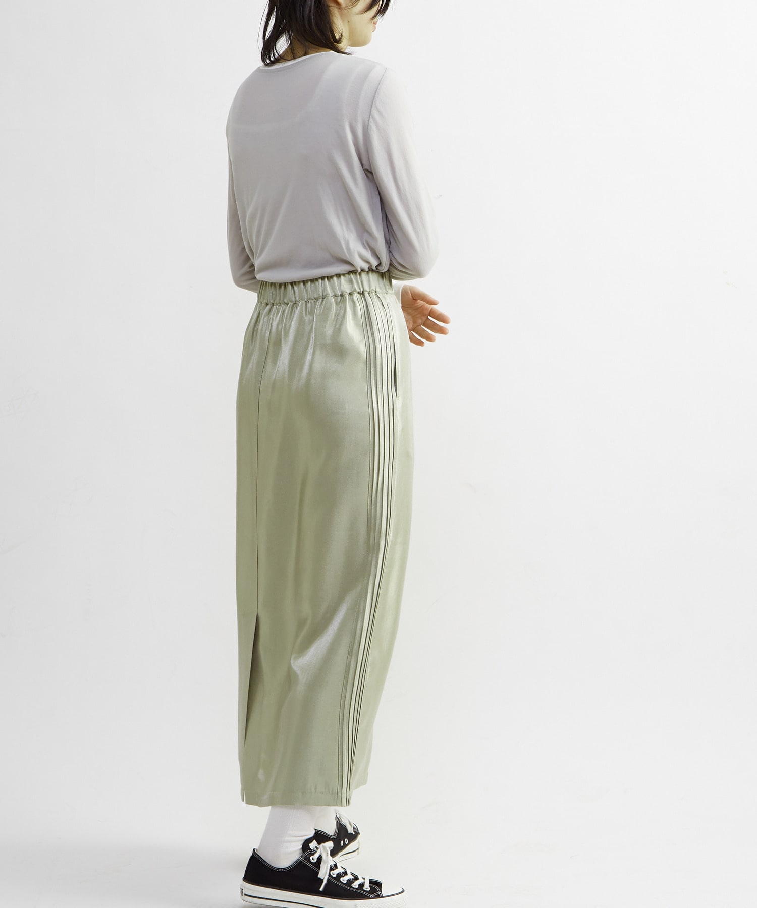 両サイドにピンタックを施し、サイドラインのように見せたスポーティーな印象のナロースカート。
