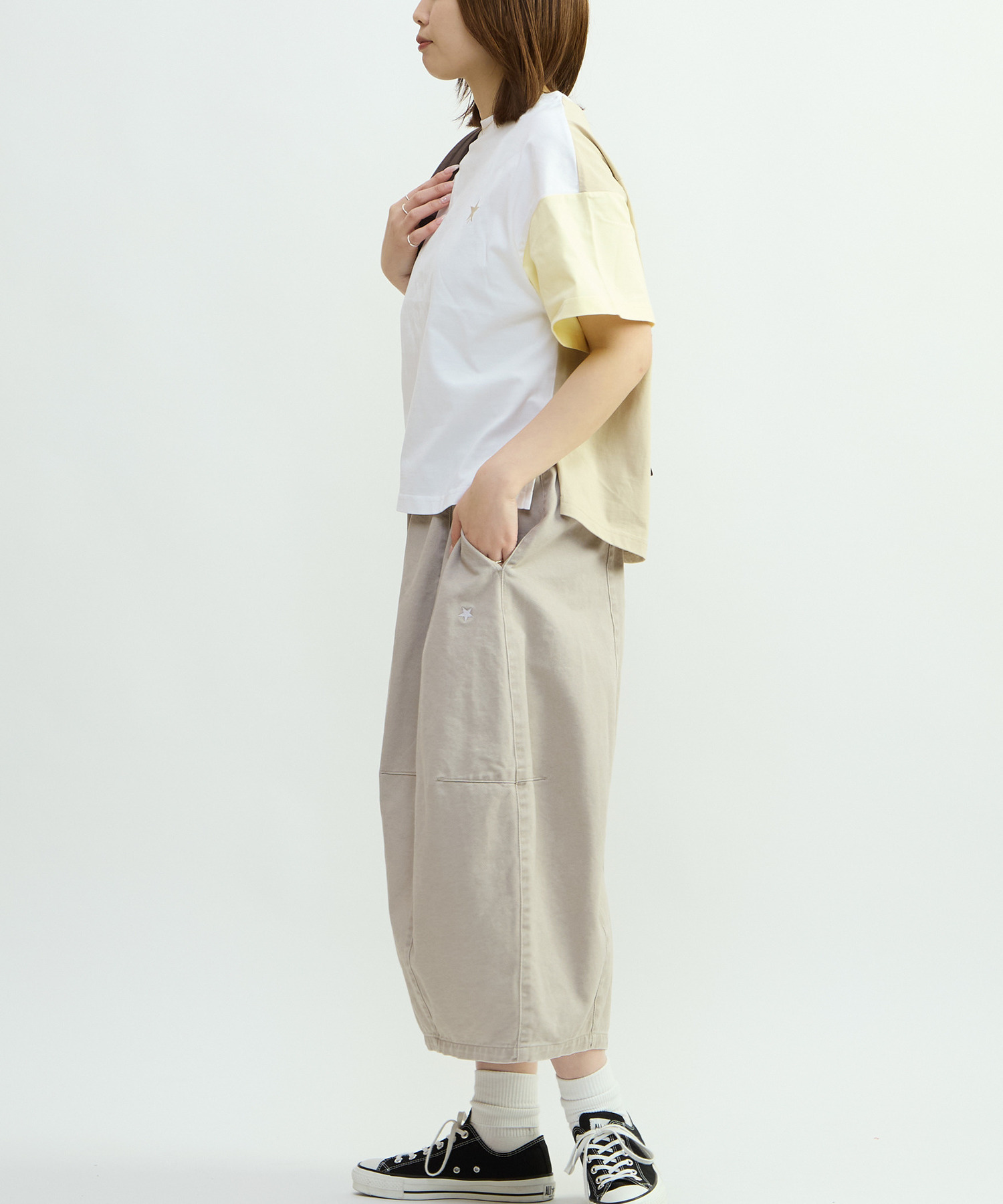 足元はスニーカーでカジュアルにまとめたり、ローファーやパンプスでモードな雰囲気にも好相性。