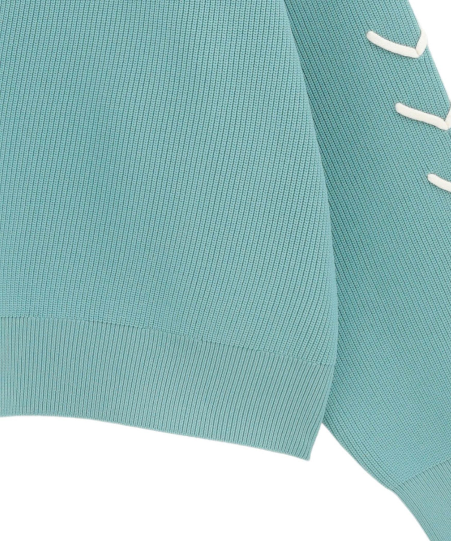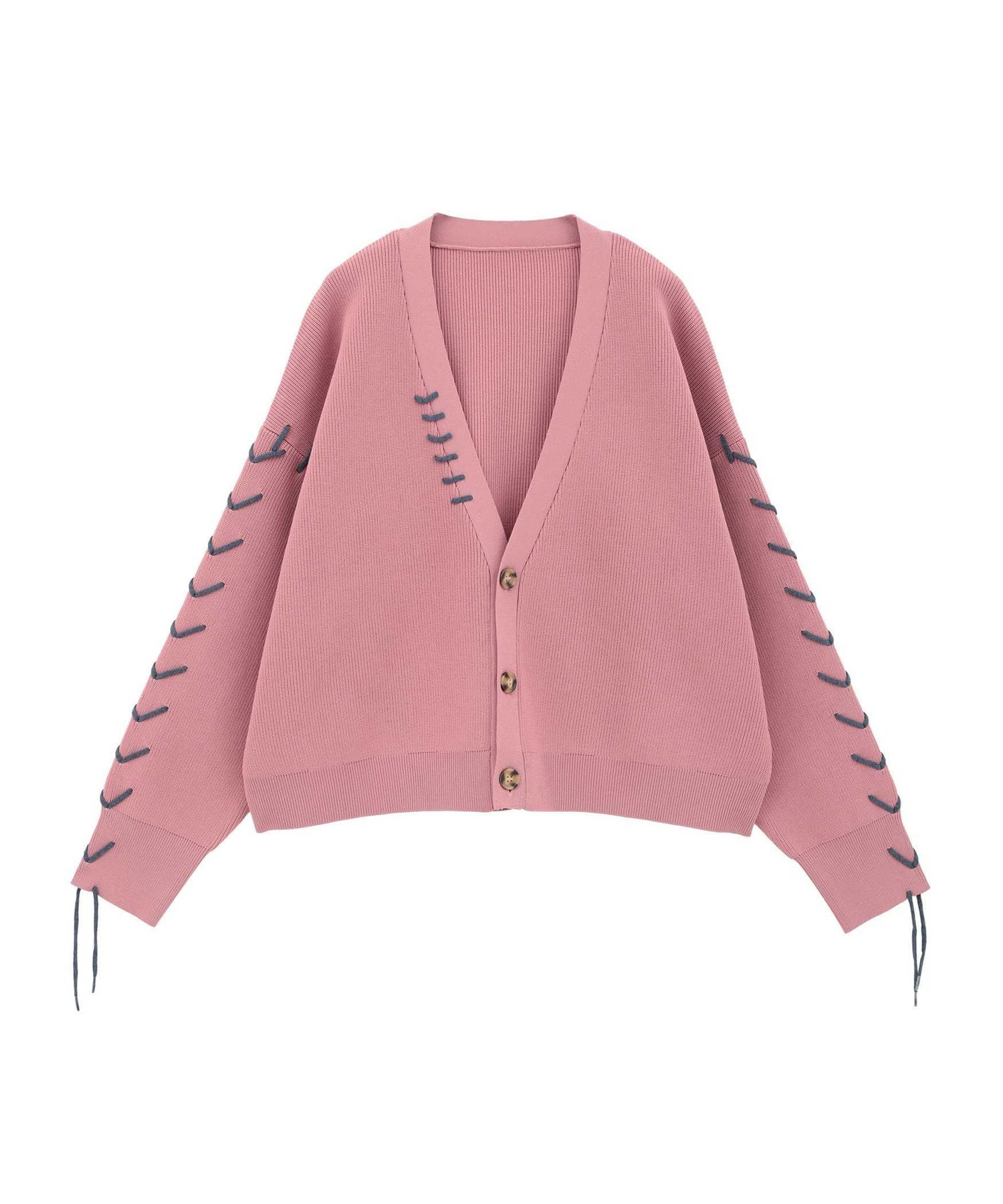 ショルダーから袖にかけてシューレースを模したステッチが施された、CONVERSE TOKYOならではの短丈ニットカーディガン。