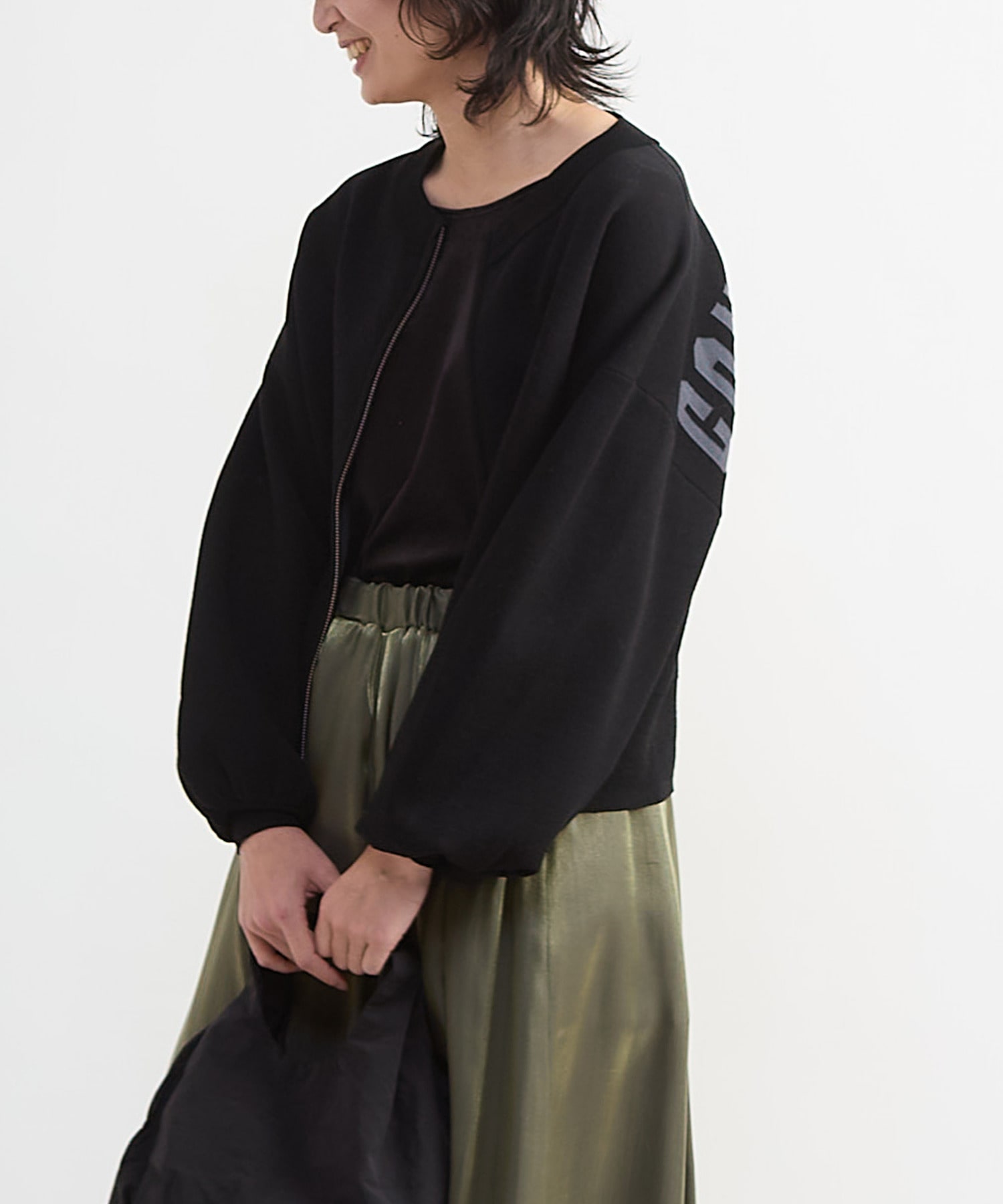 アレンジが自由自在のダブルジップ仕様で、トップスとしてはもちろん羽織りとしても着用でき、コーディネートの幅が広がる一枚。