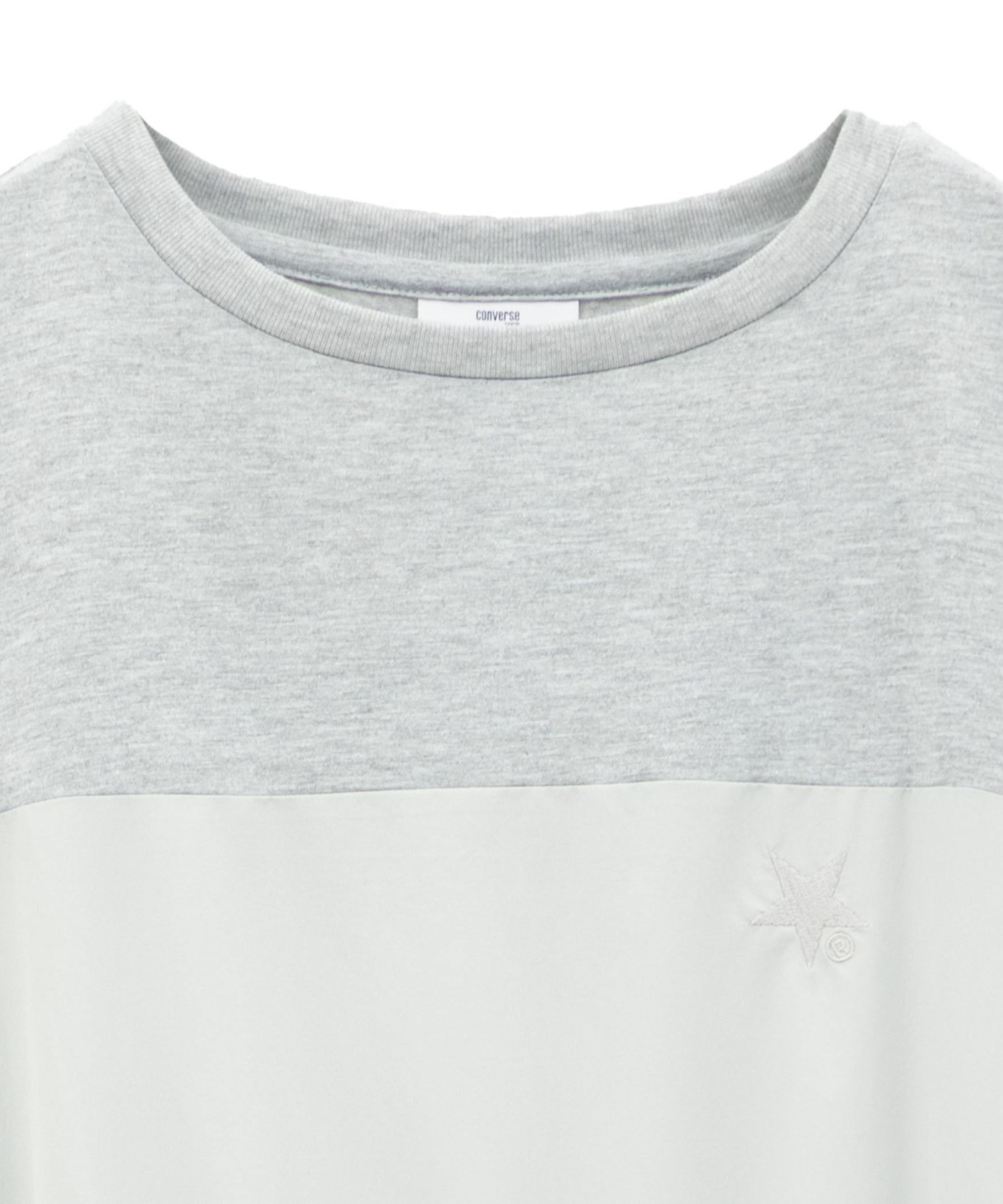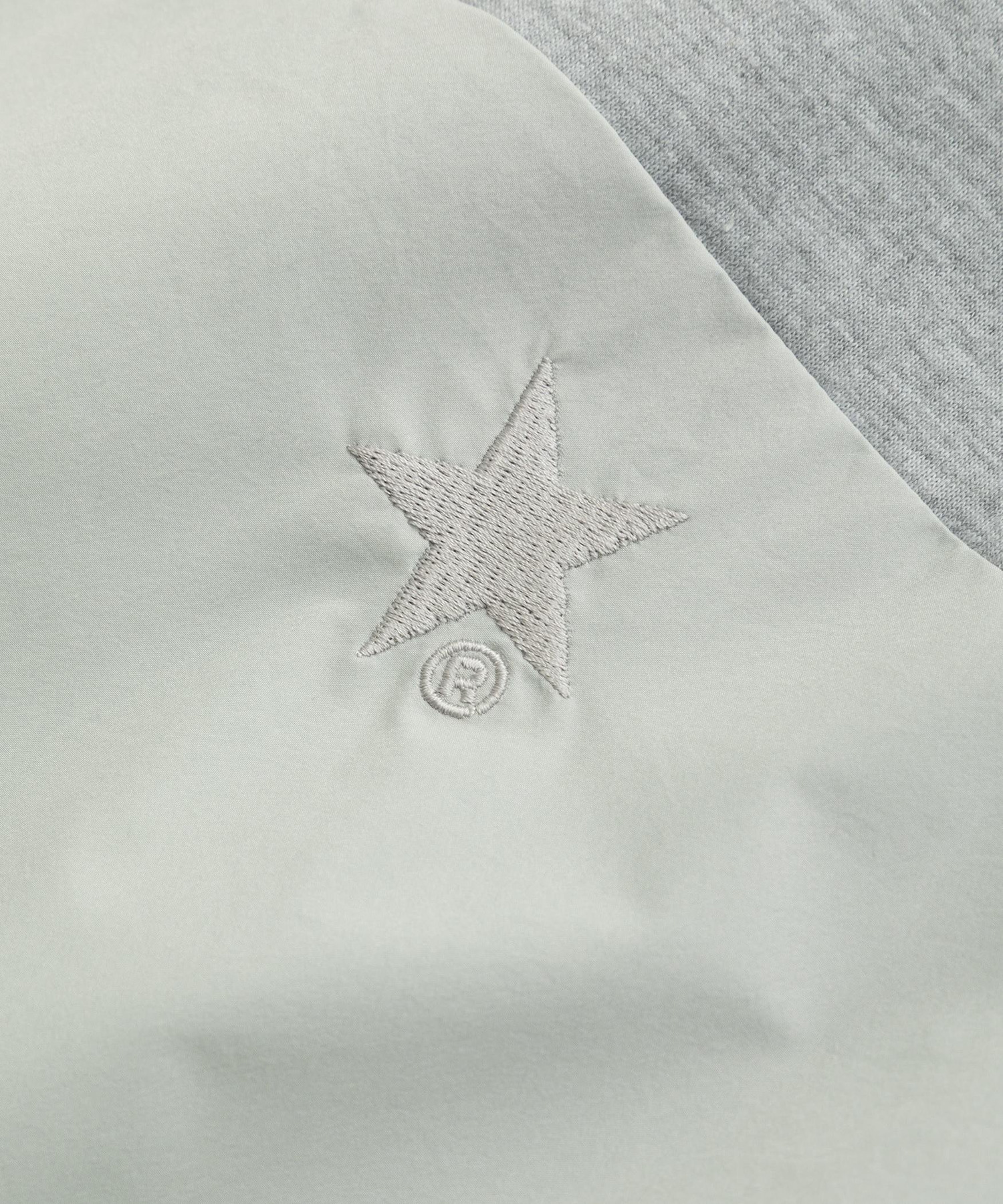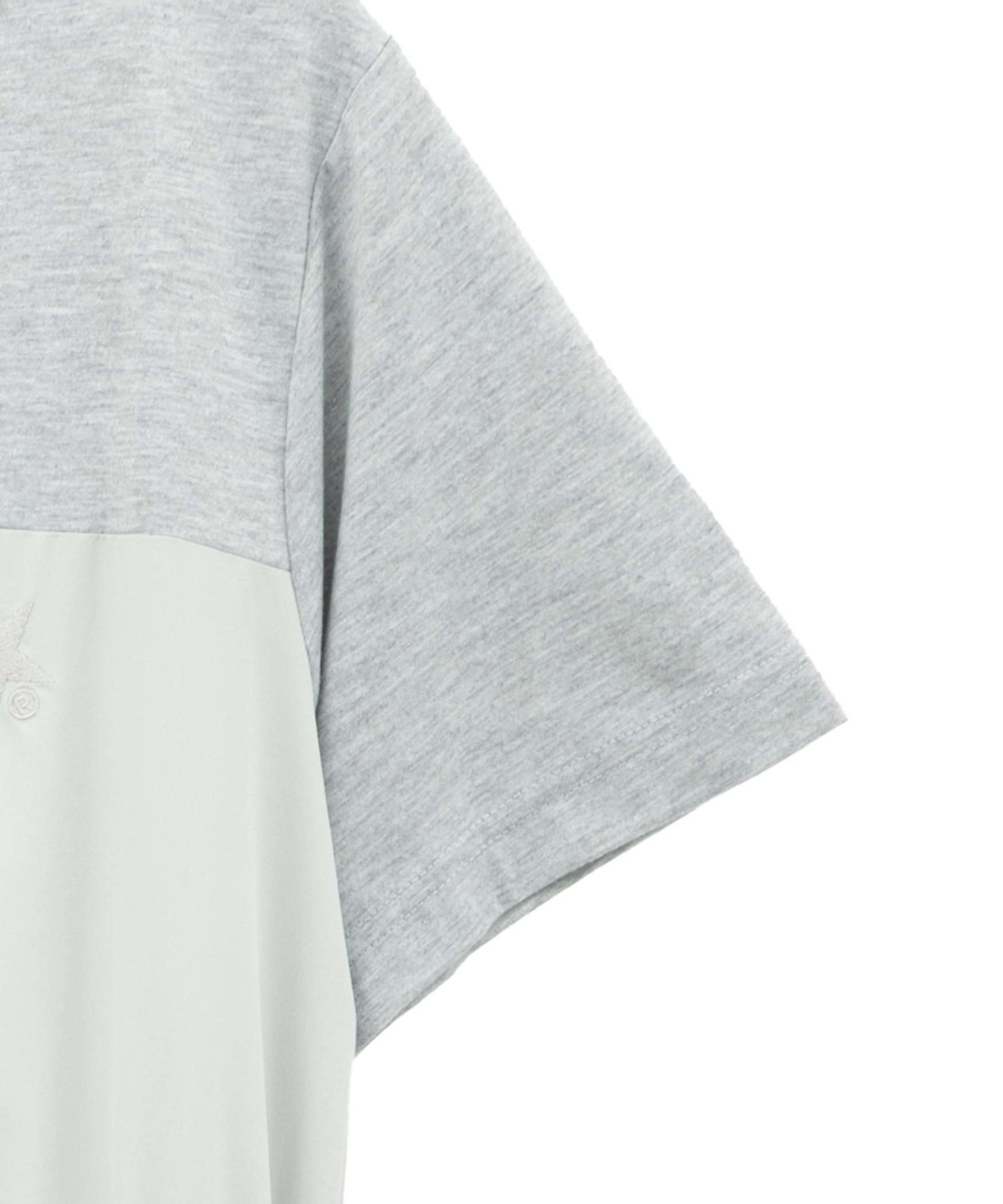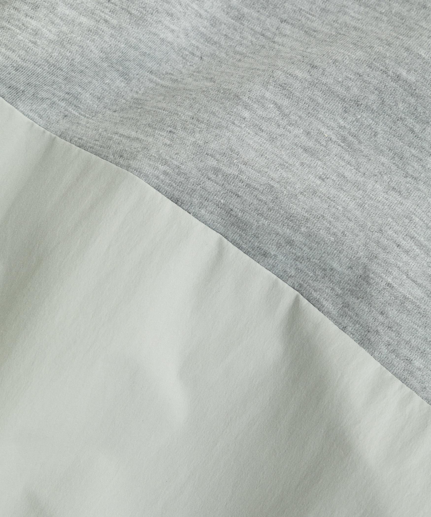 身頃には軽やかなポリエステル、トップ部分には肌馴染みの良いコットン混素材を組み合わせたハイブリッドな一着。