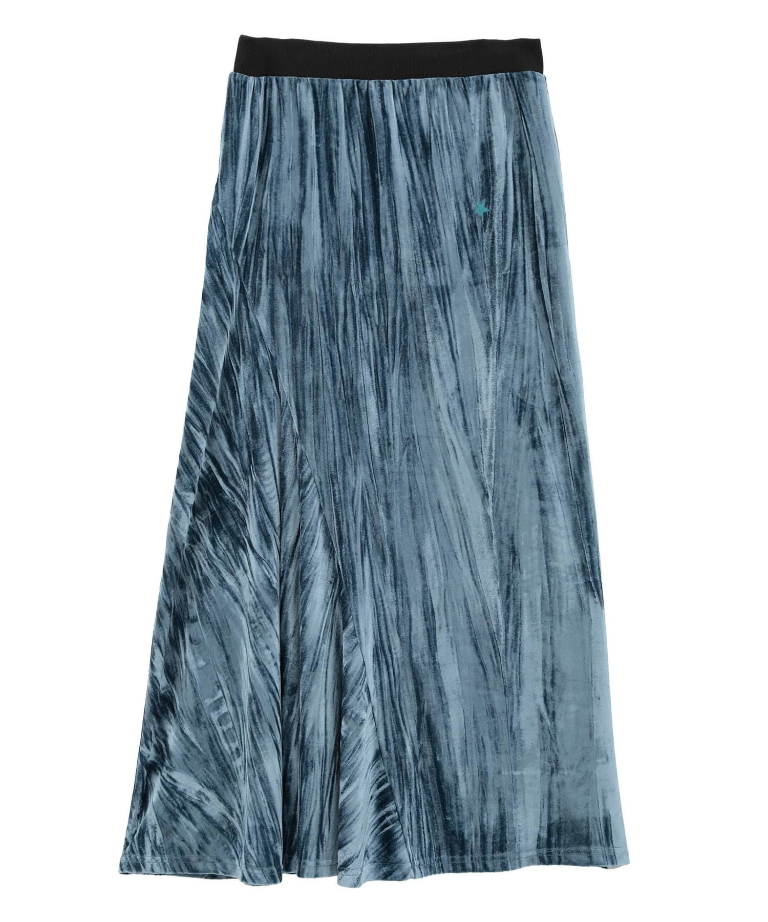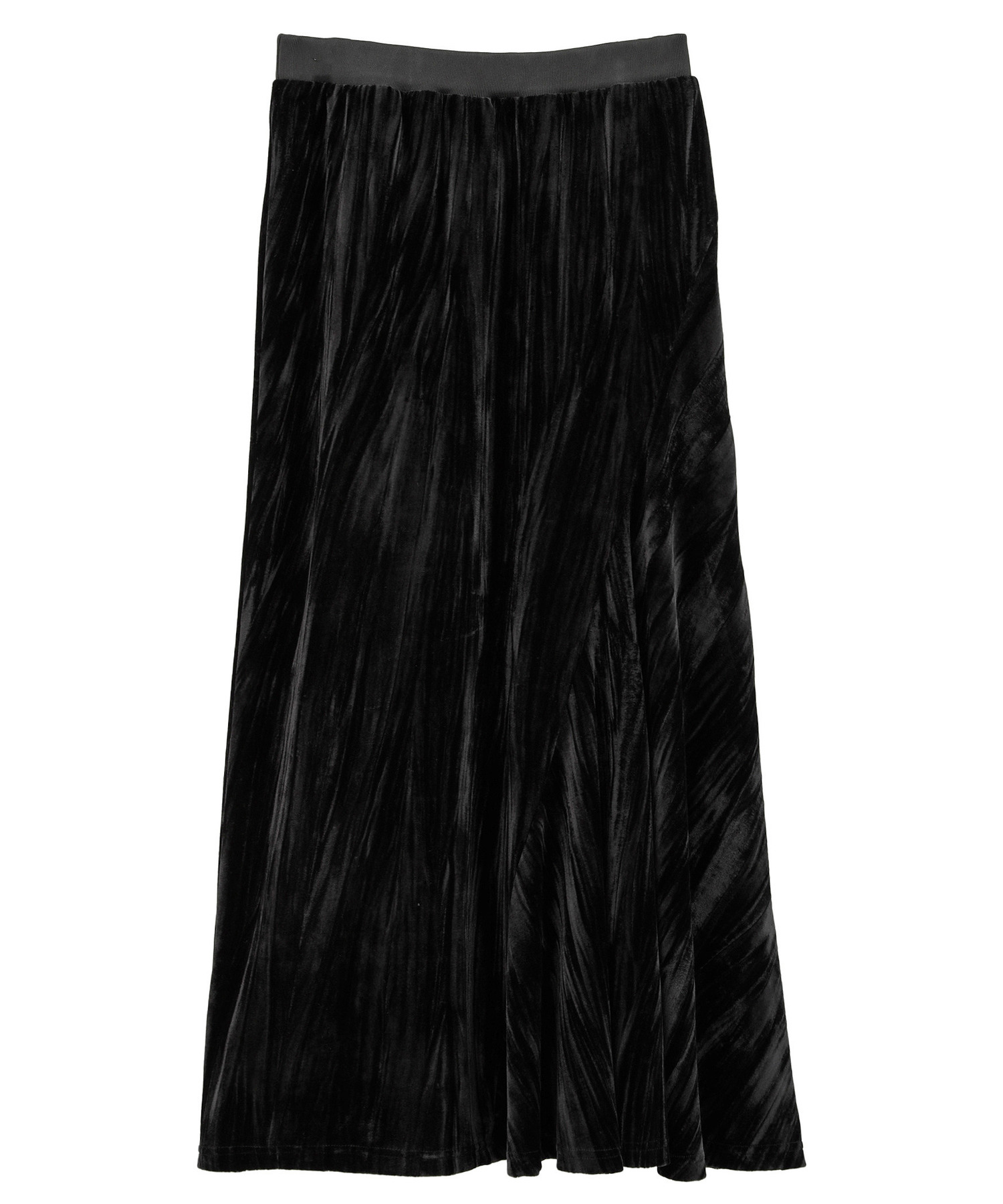 フレアシルエットとストレートシルエットを掛け合わせた、動きのあるアシンメトリーラインが特徴のロングスカート。