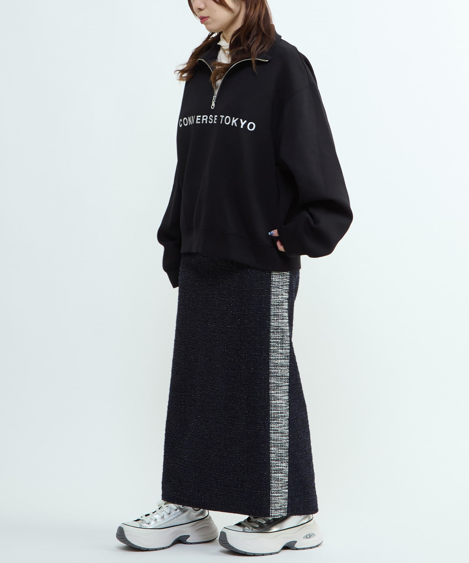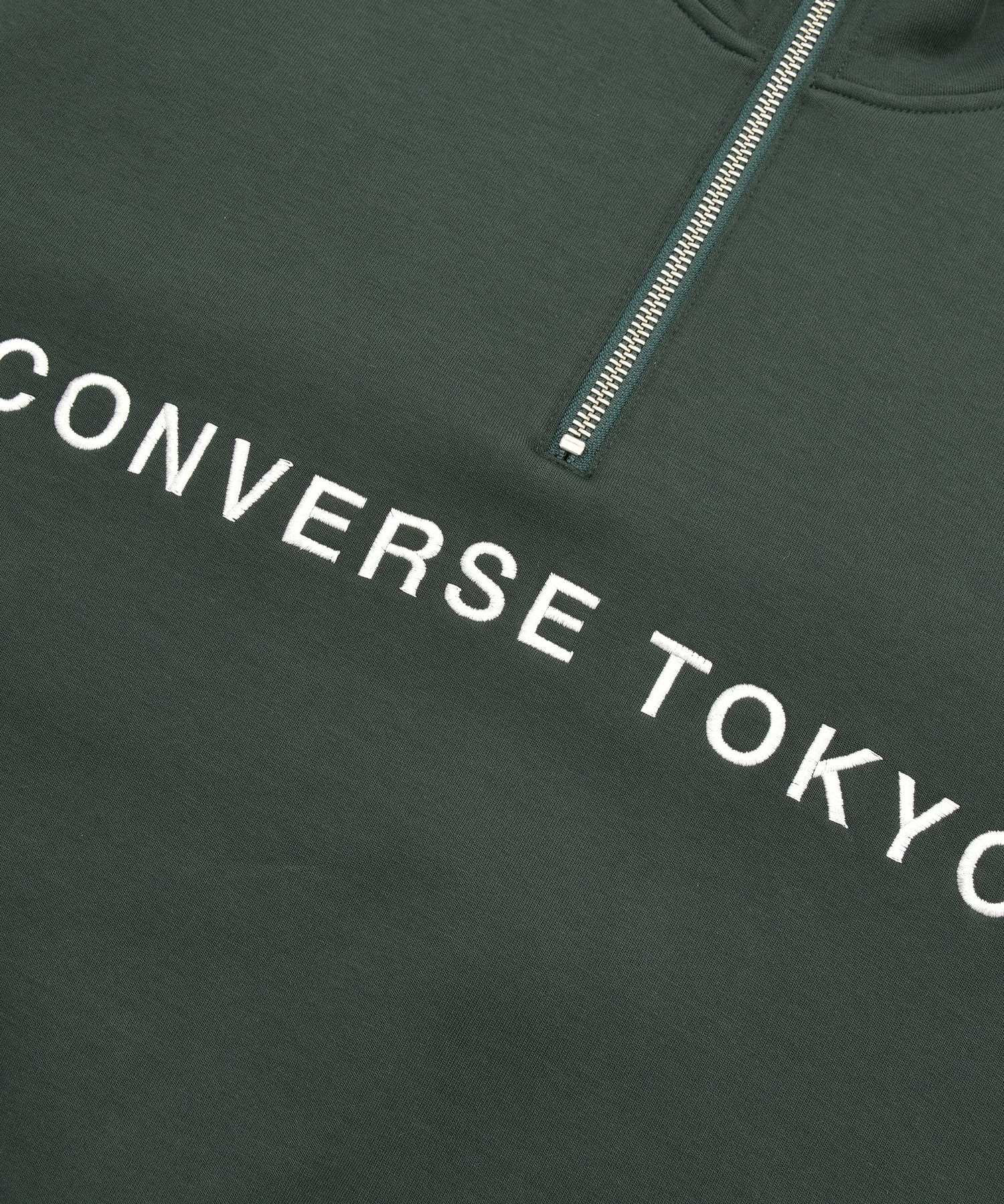 フロントには存在感のあるCONVERSE TOKYOのロゴ刺繍、バックには★の切り替えデザインをあしらい、シンプルながらも印象的な仕上がりに。