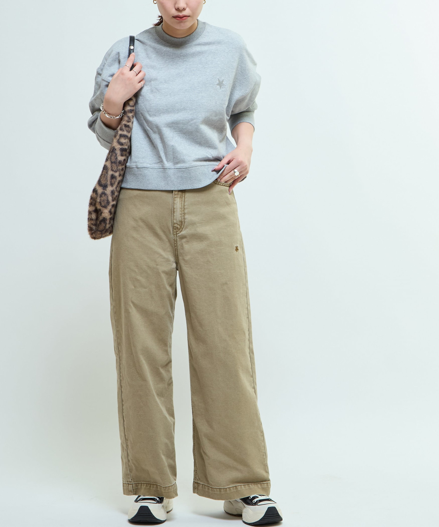 ゆったりとしたボディとドロップショルダーで抜け感のあるシルエットがポイント。