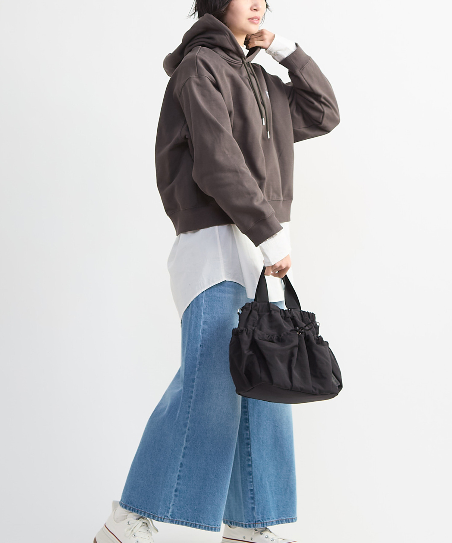アウターのインナーとしても使いやすく、ワードローブに欠かせない定番フーディ。