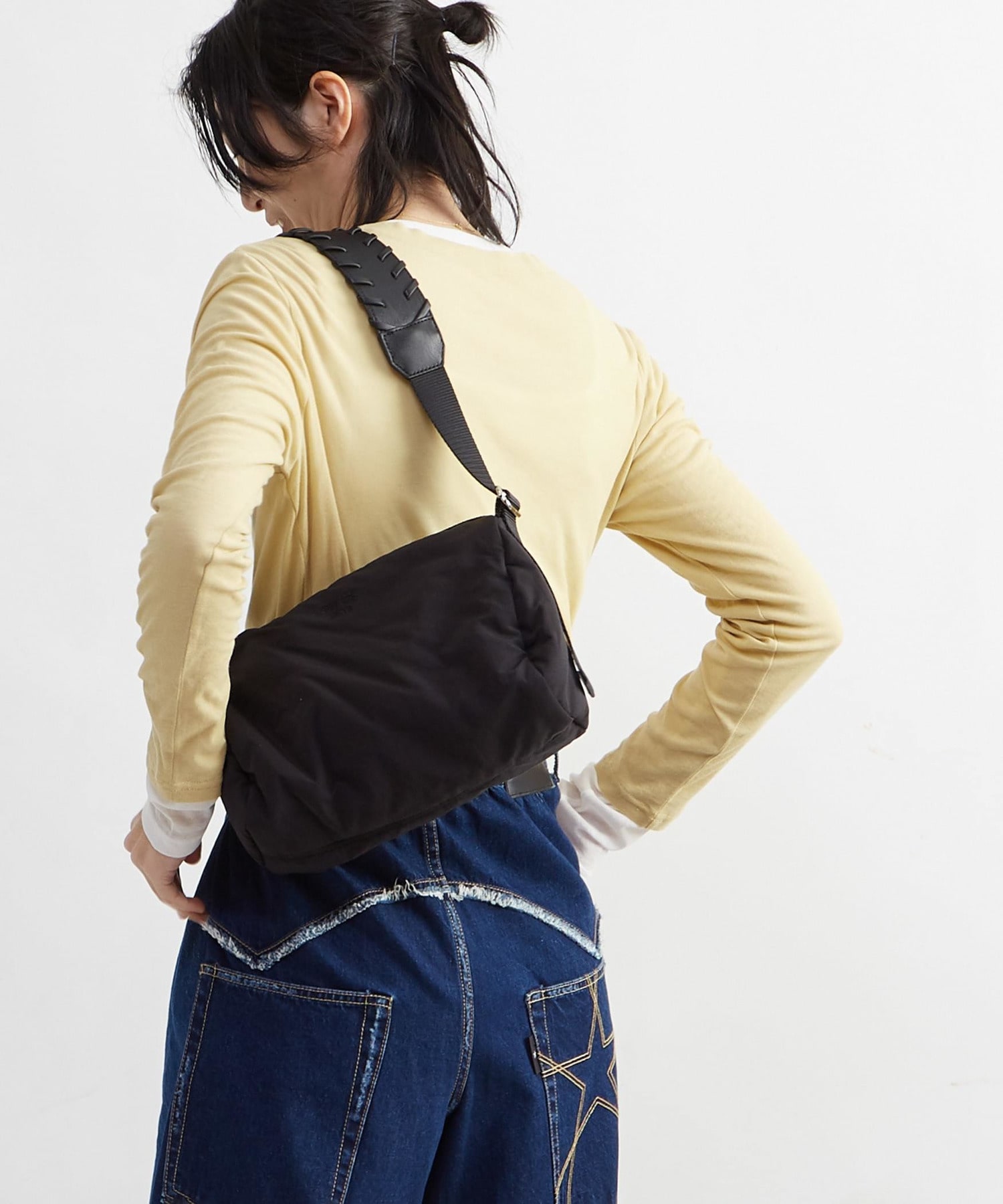 2枚重ねのレイヤードデザインが特徴で、コーディネートにこなれ感をプラスするアイテム。