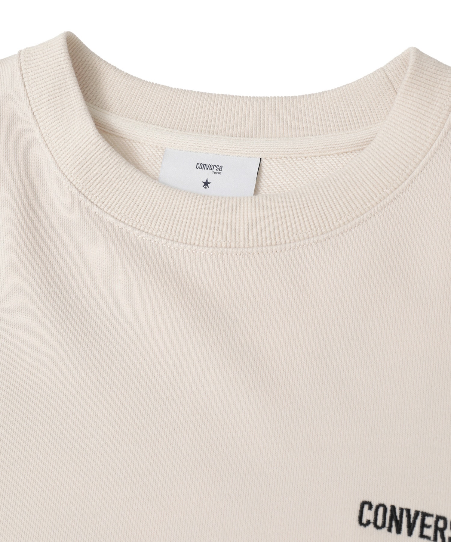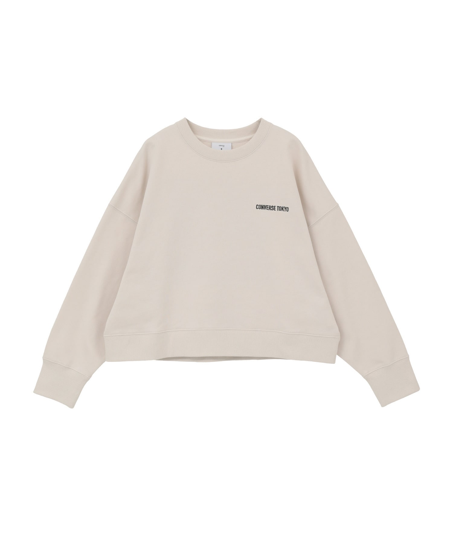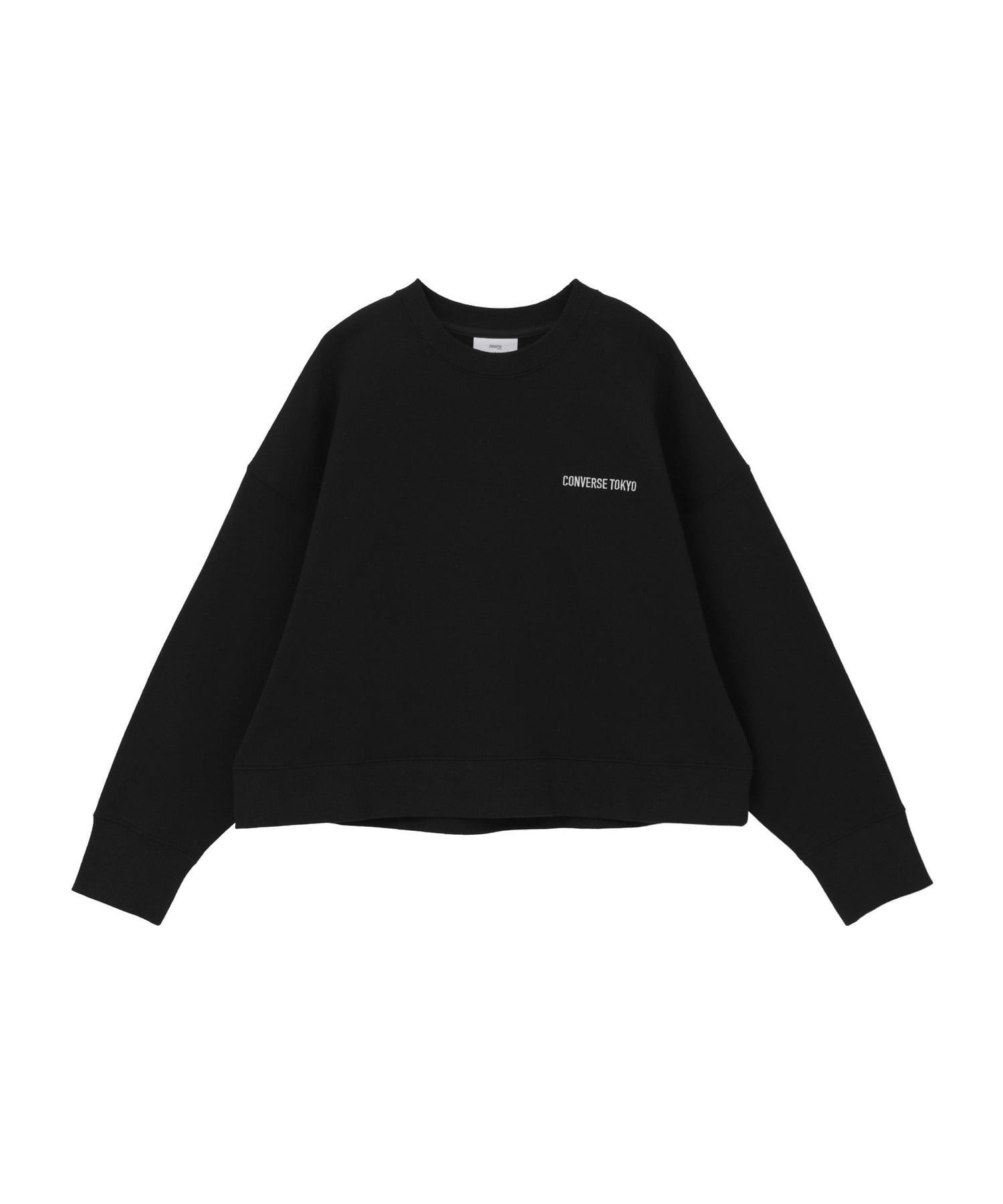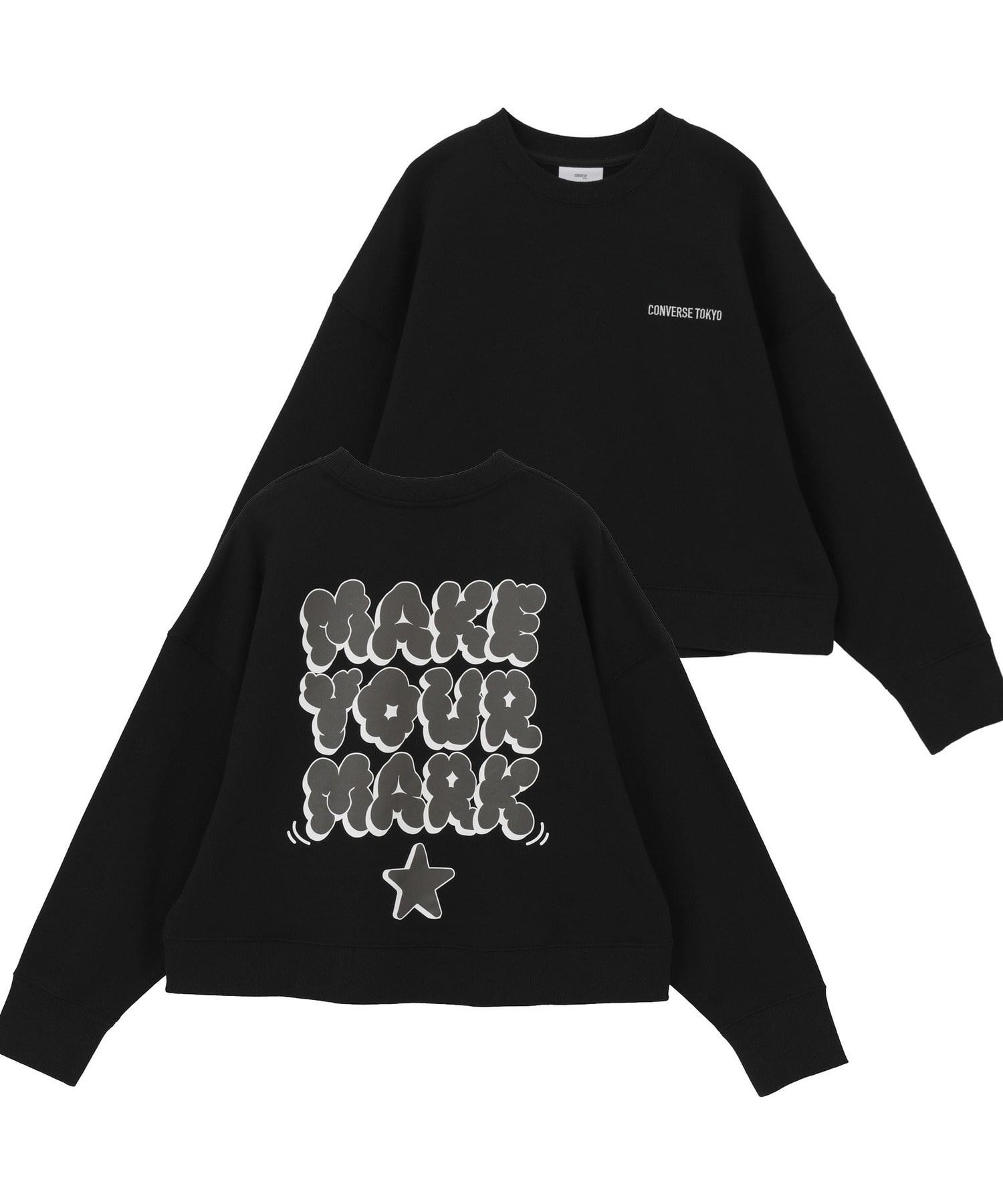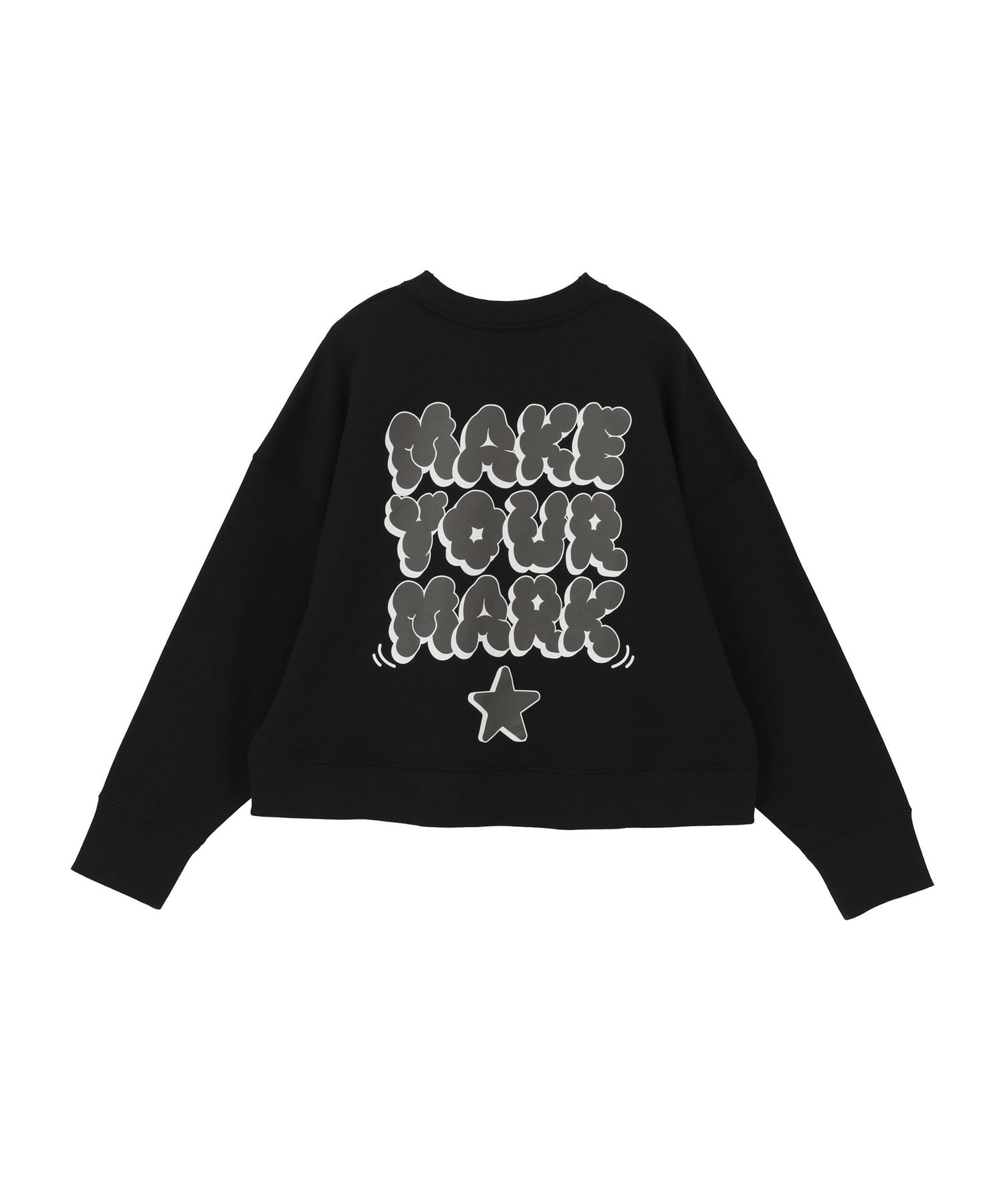 大胆なメッセージバックプリントが印象的な、ショート丈仕様の裏毛スウェット。