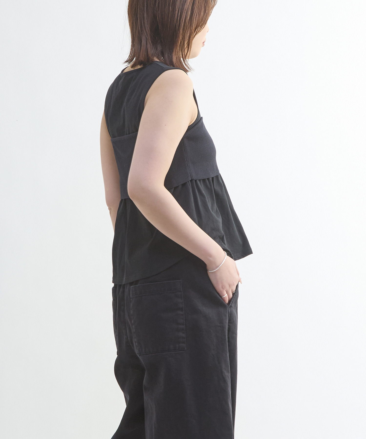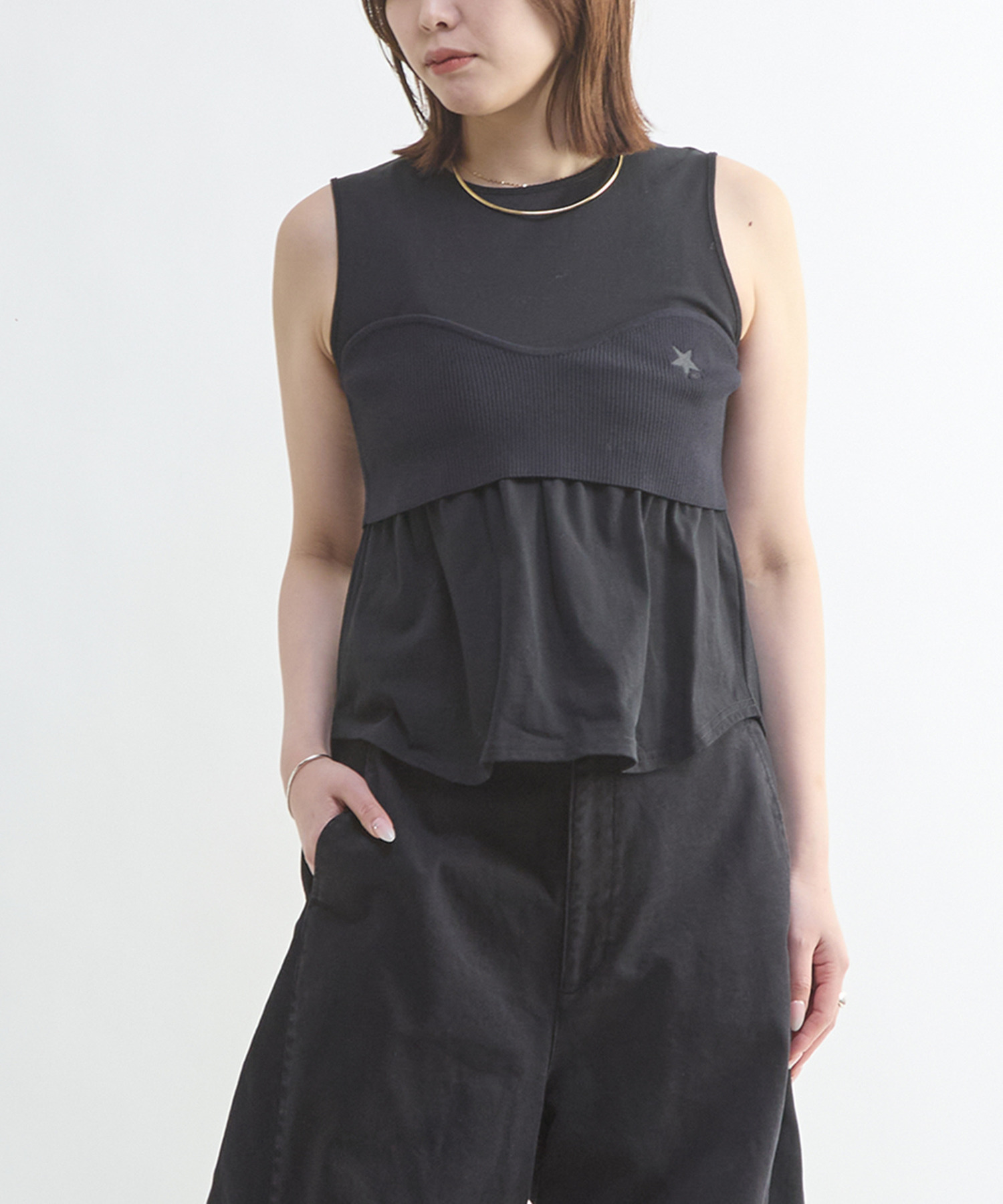 • KNIT BUSTIER LAYERED TANK TOP 詳細画像 ブラック 1