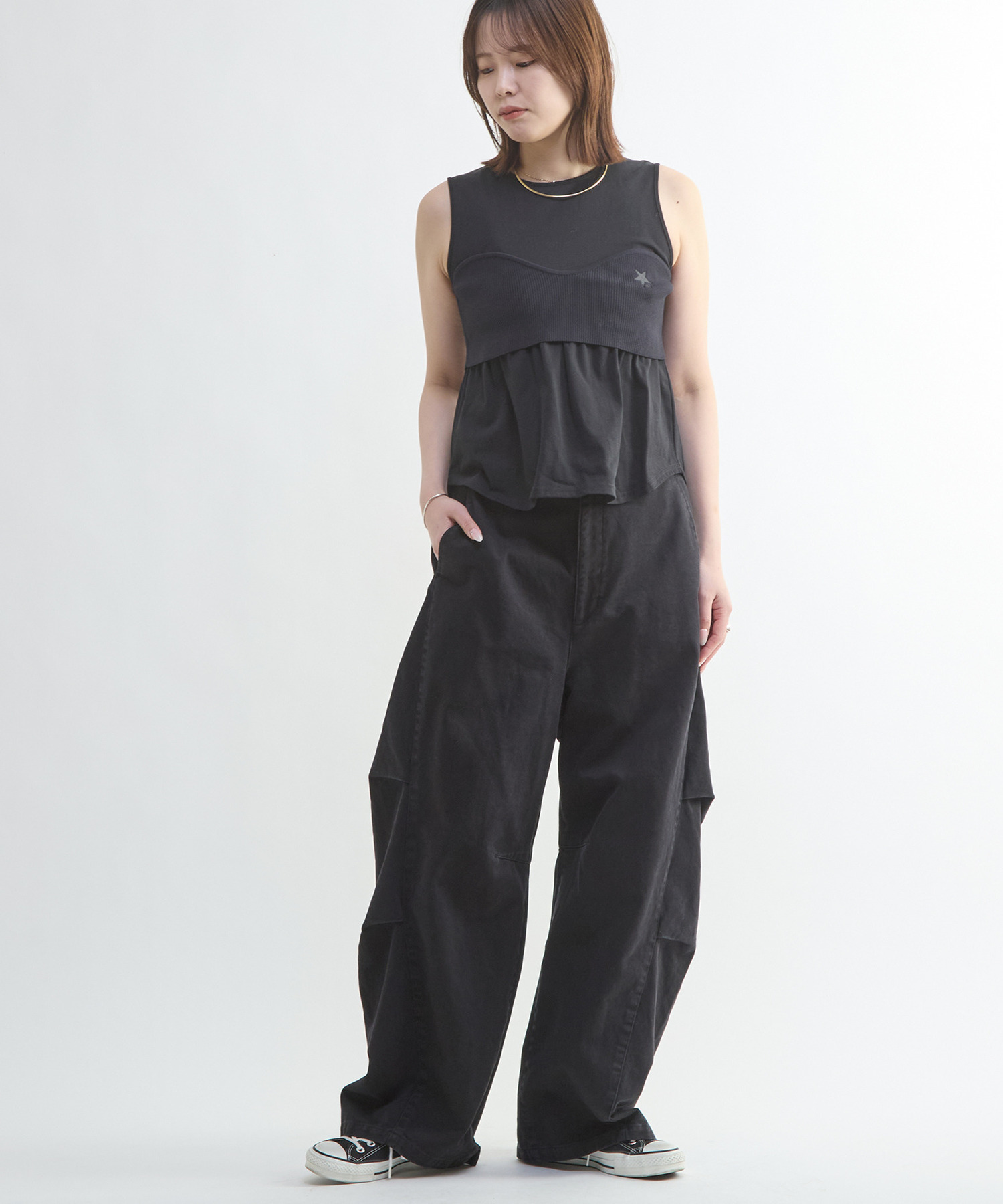 ビスチェを外せばシンプルなタンクトップとして、シャツやカーディガンのインナーとしても活躍。