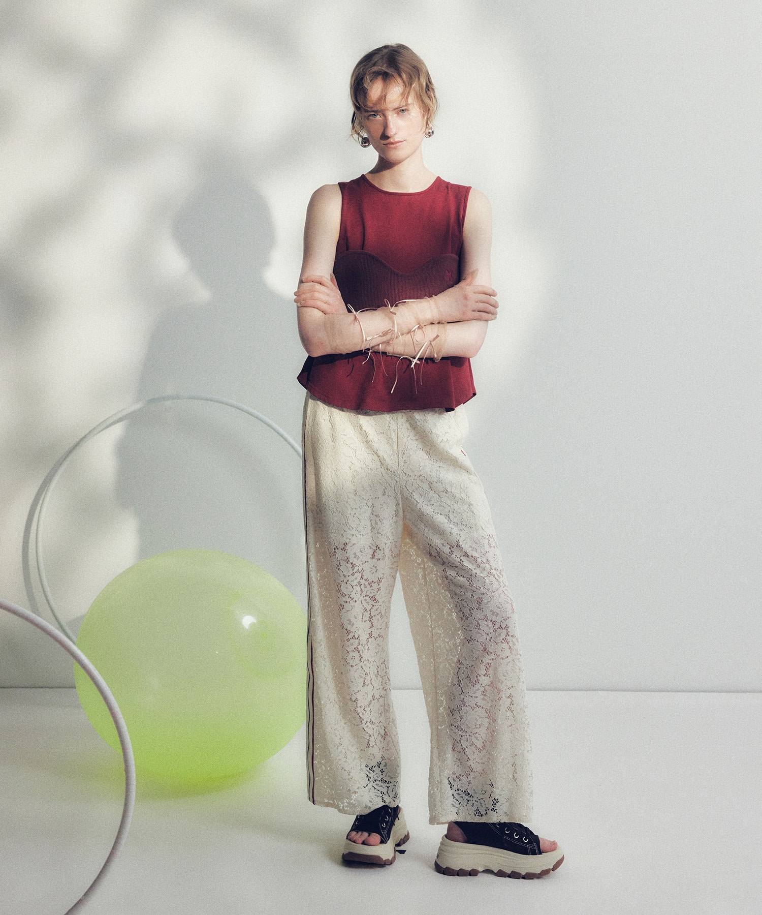 ベースのタンクトップには、肌触りの良いカットソー素材を使用。