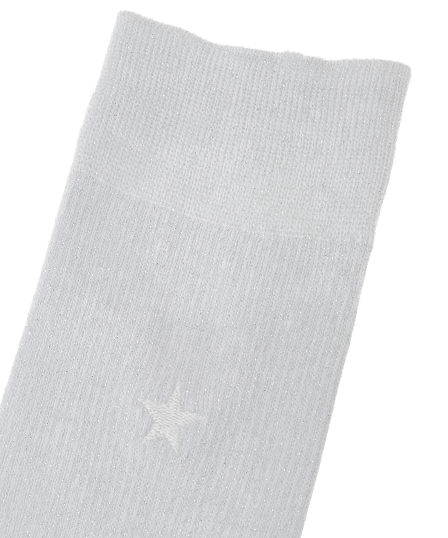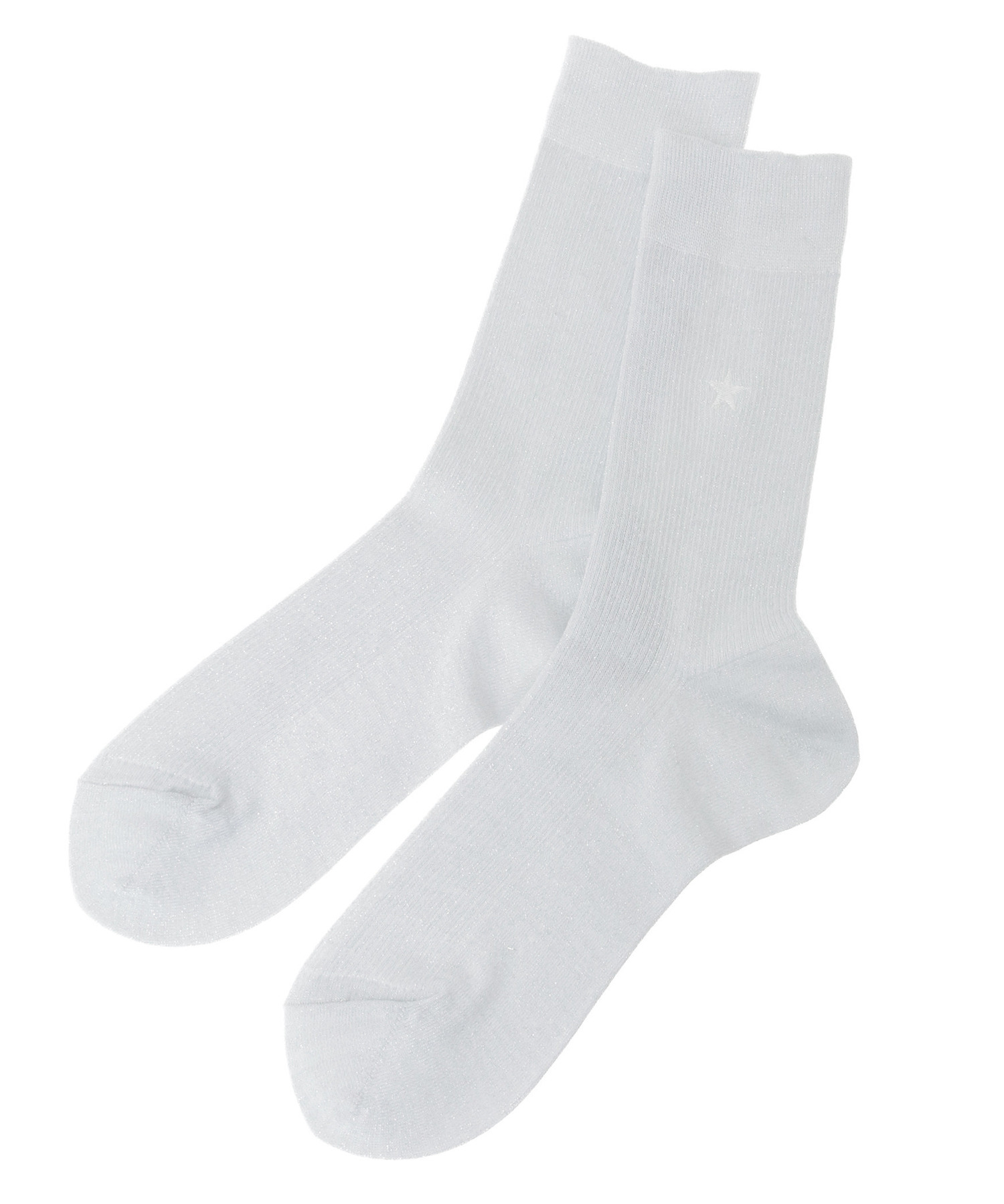 ハイゲージの上品なラメソックスで、サイドにアイコンである一つ星の刺繍入り。