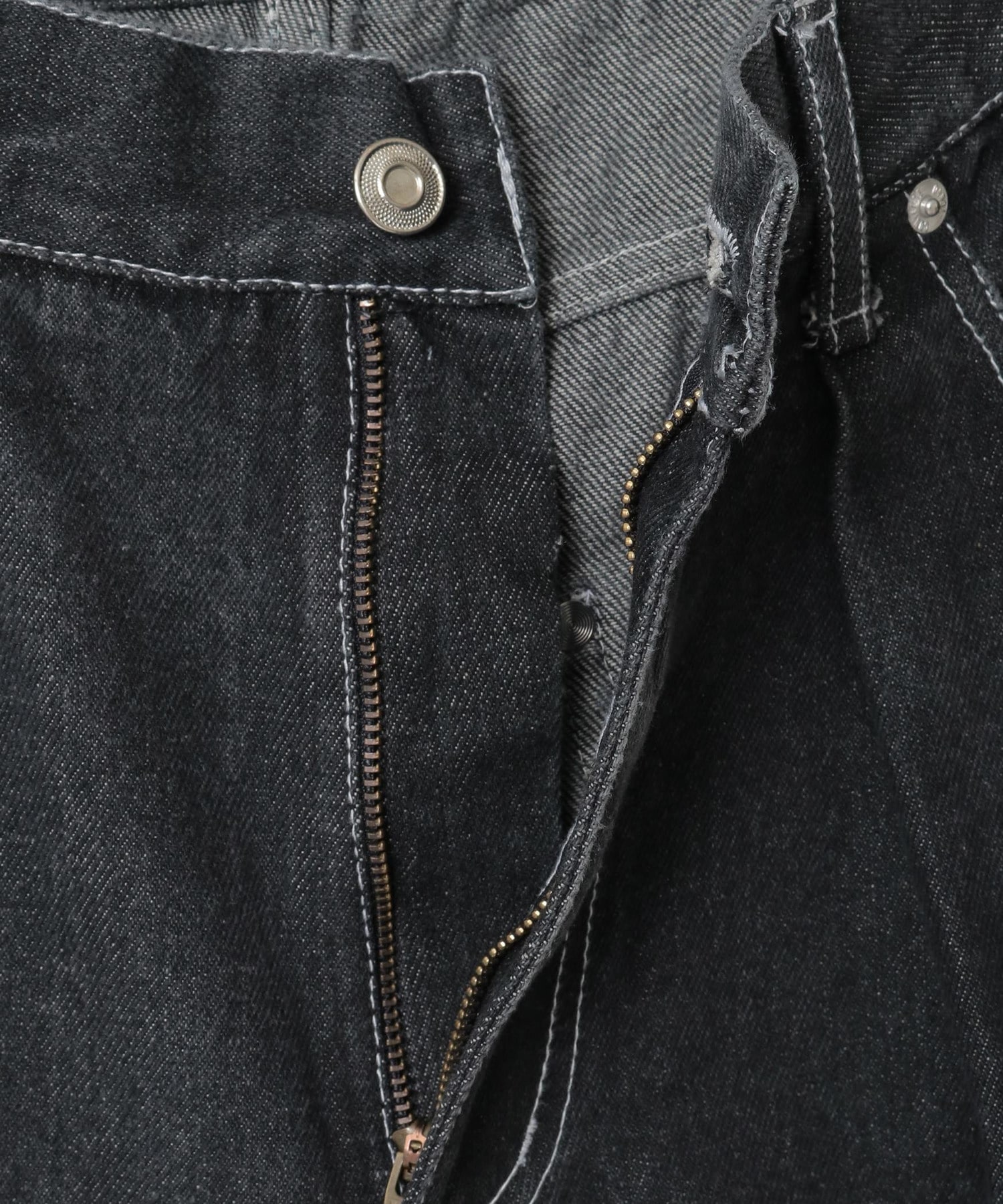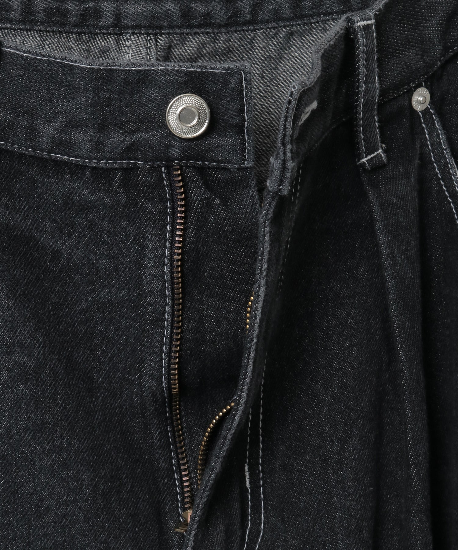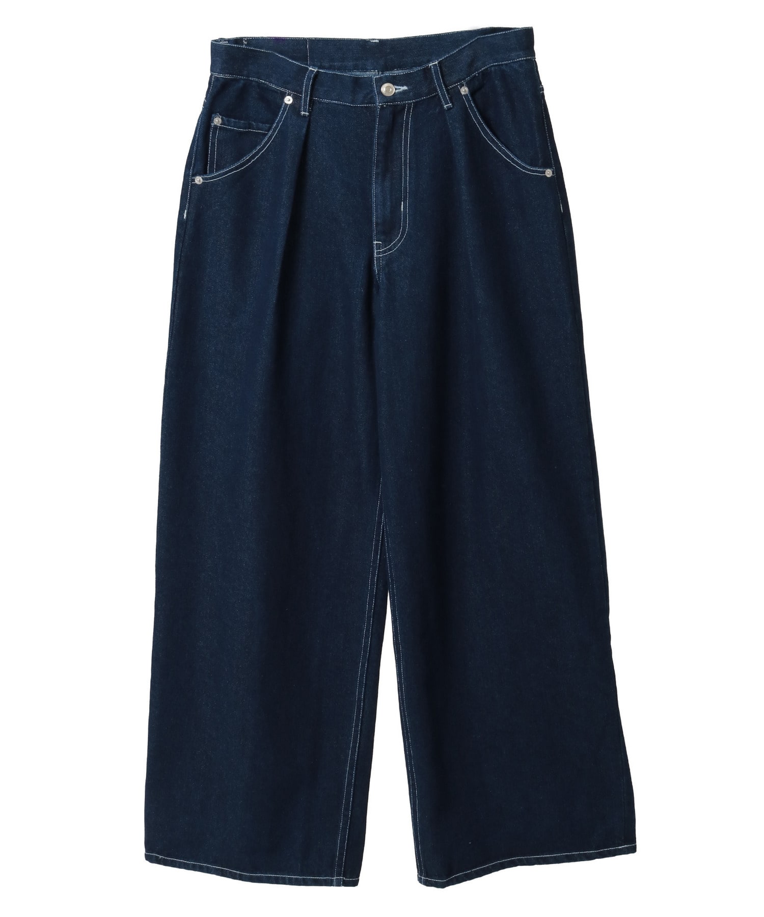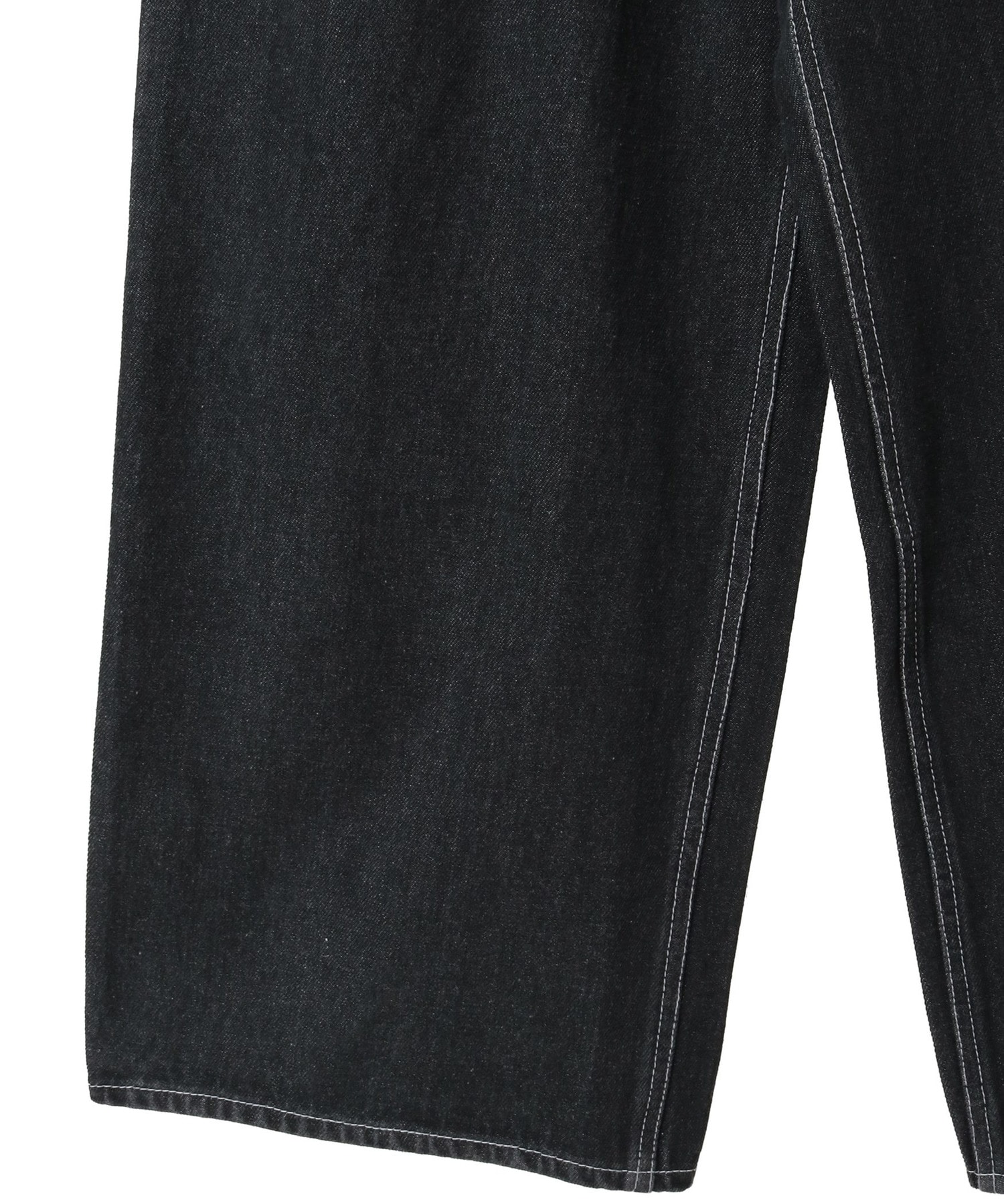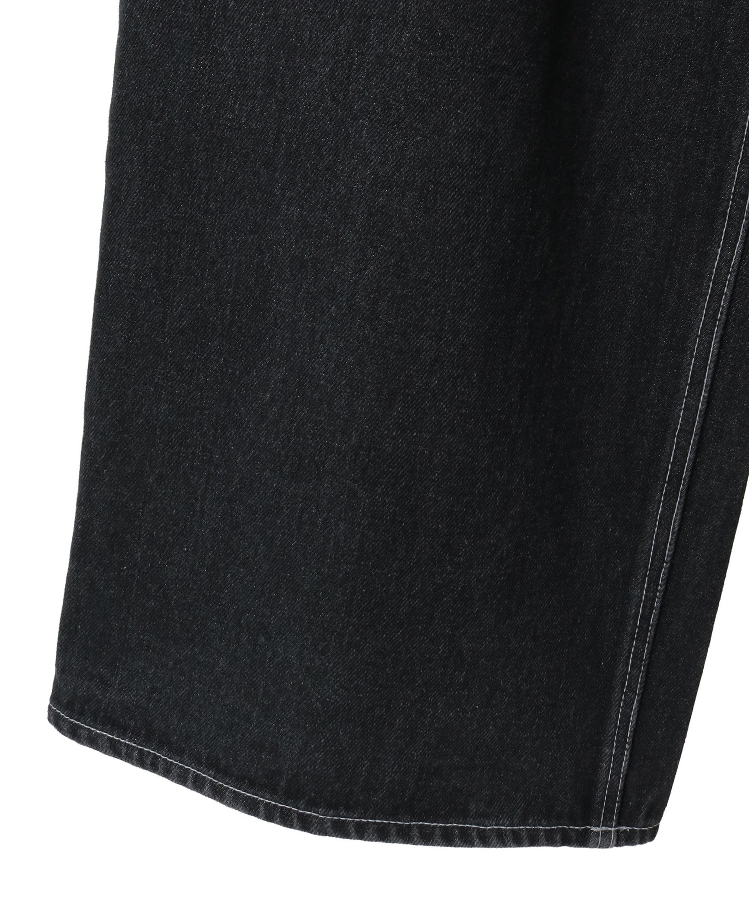 裾に向かってストレートに落ちる、ワイドシルエットが特徴的なデニムパンツ。
