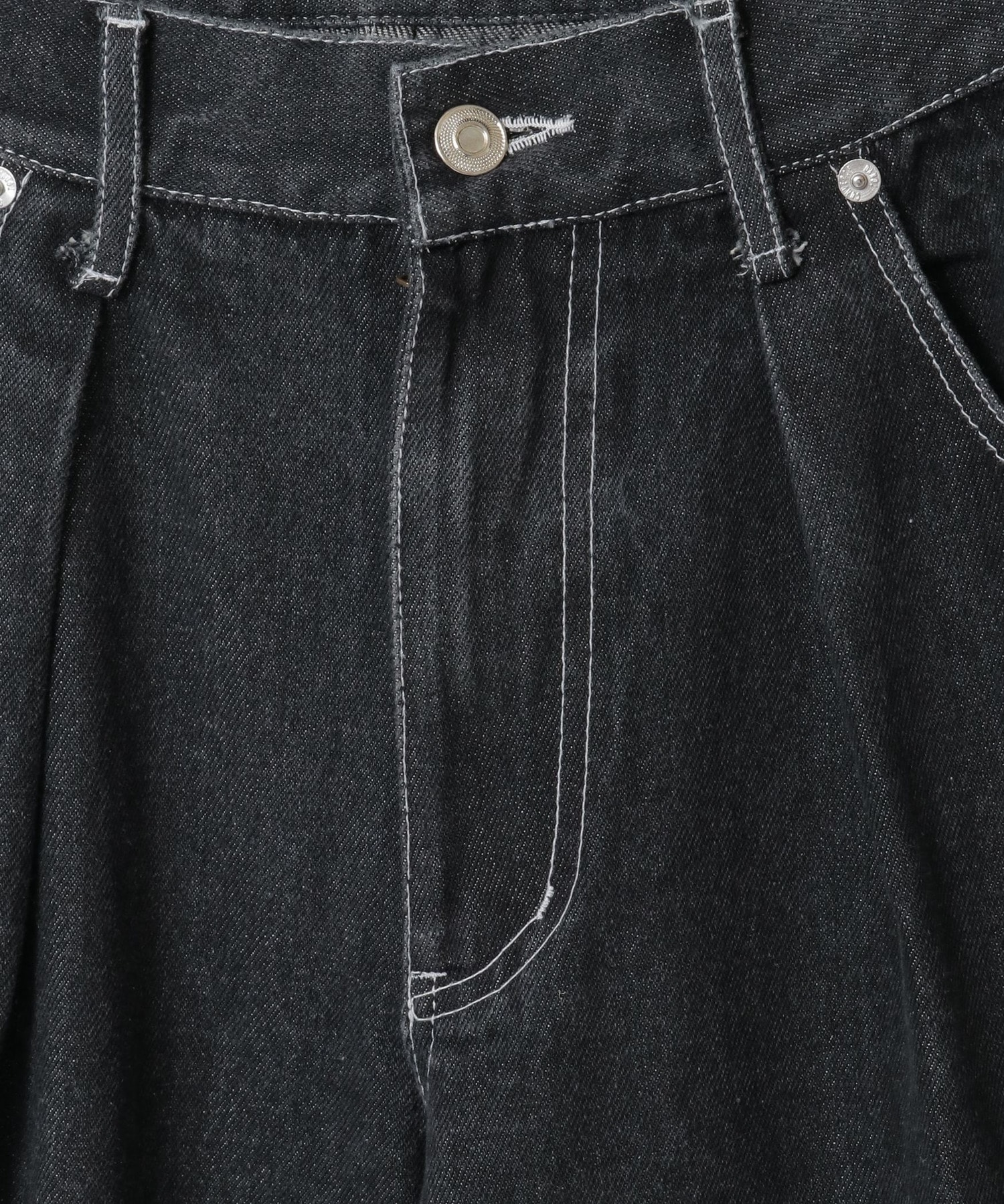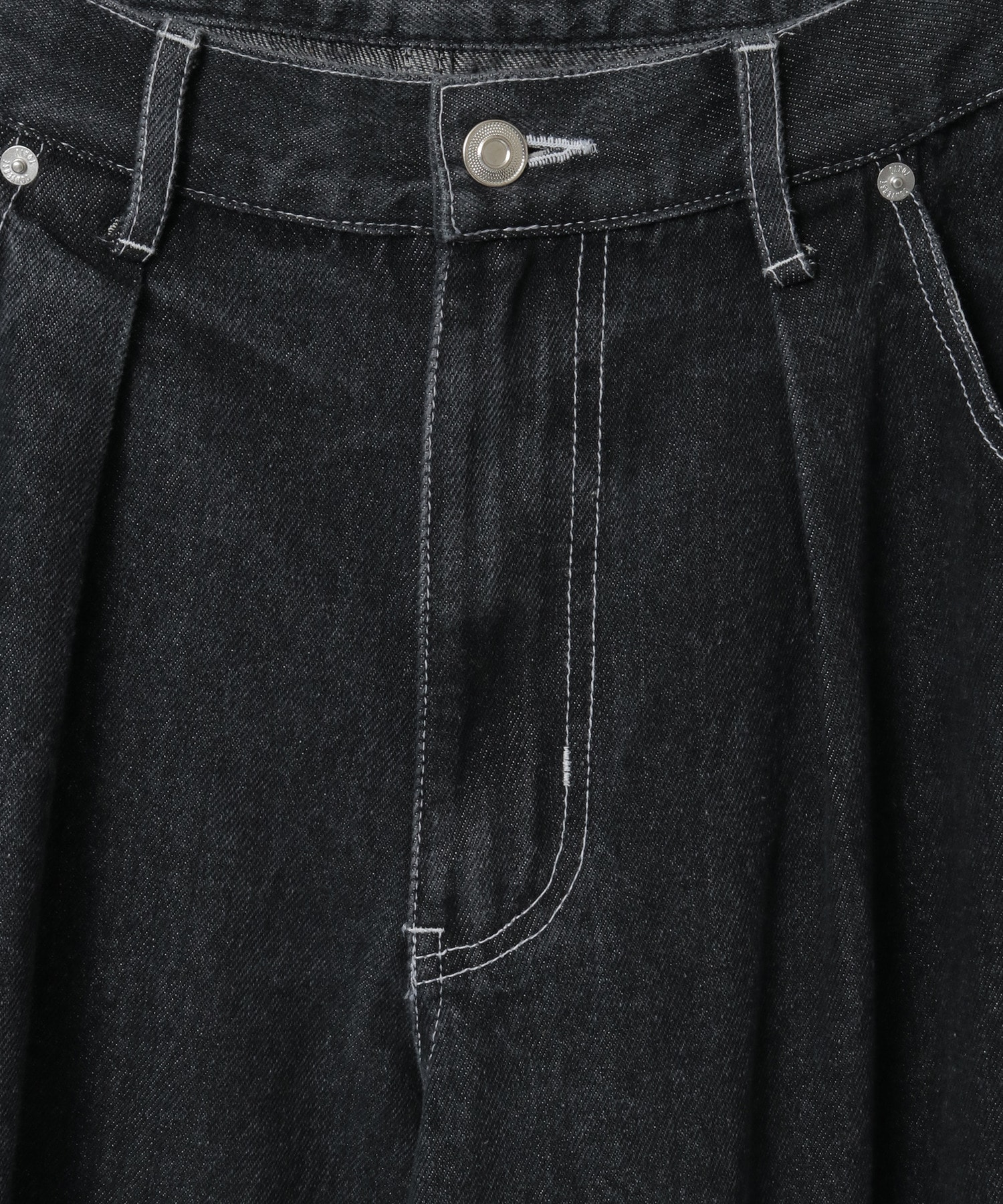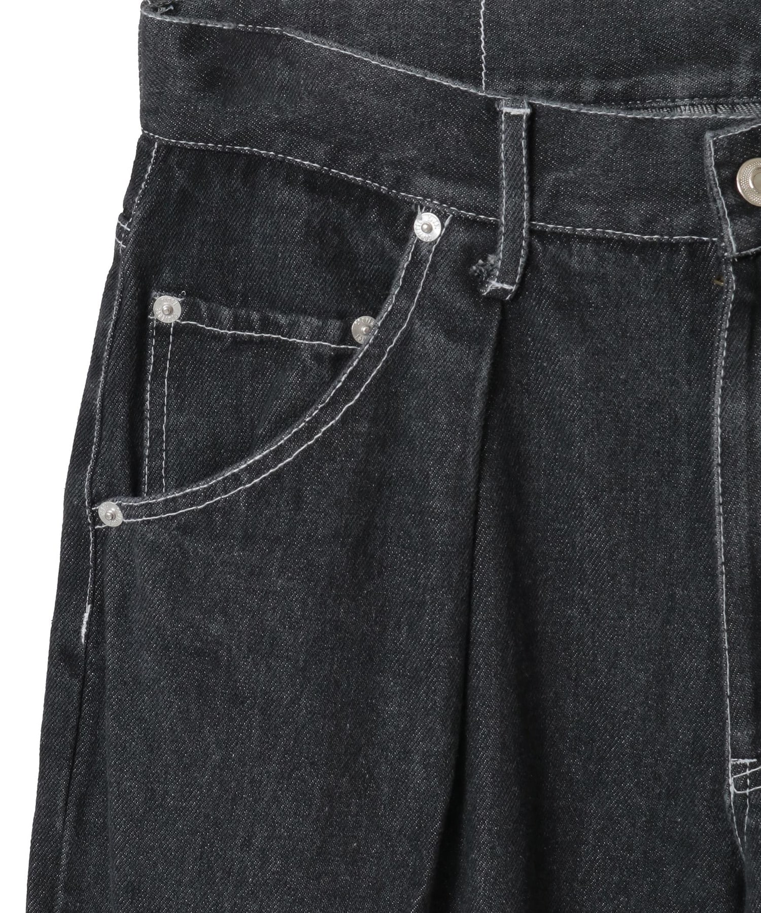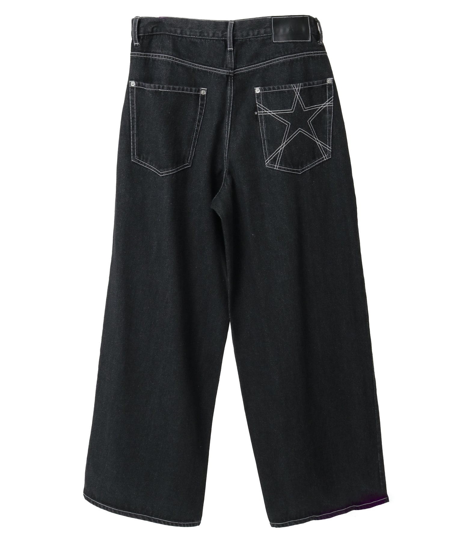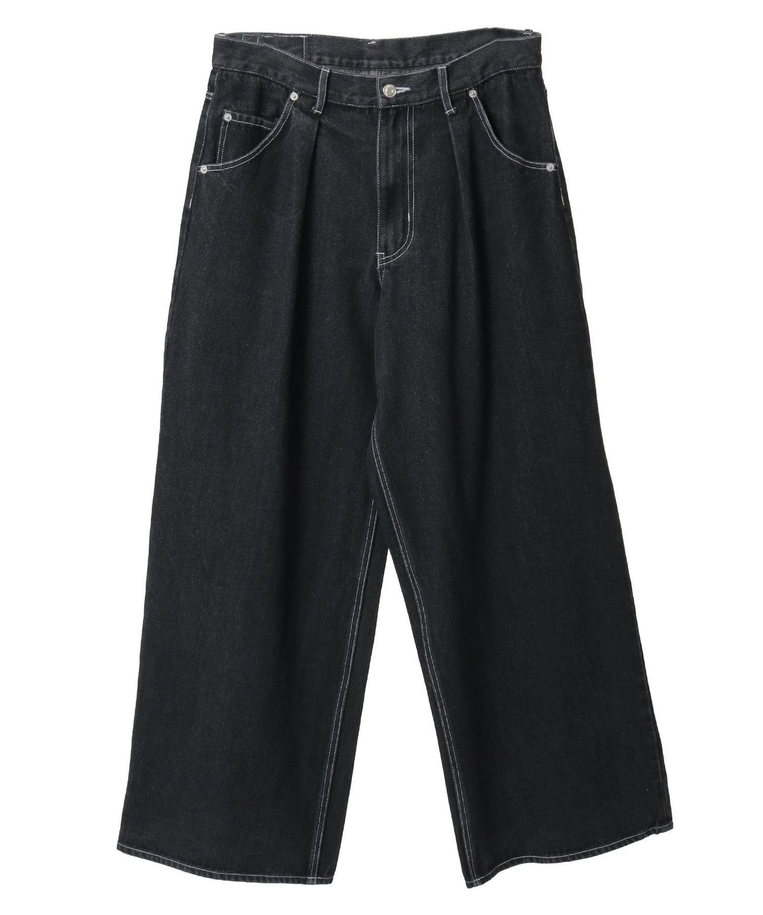 裾に向かってストレートに落ちる、ワイドシルエットが特徴的なデニムパンツ。