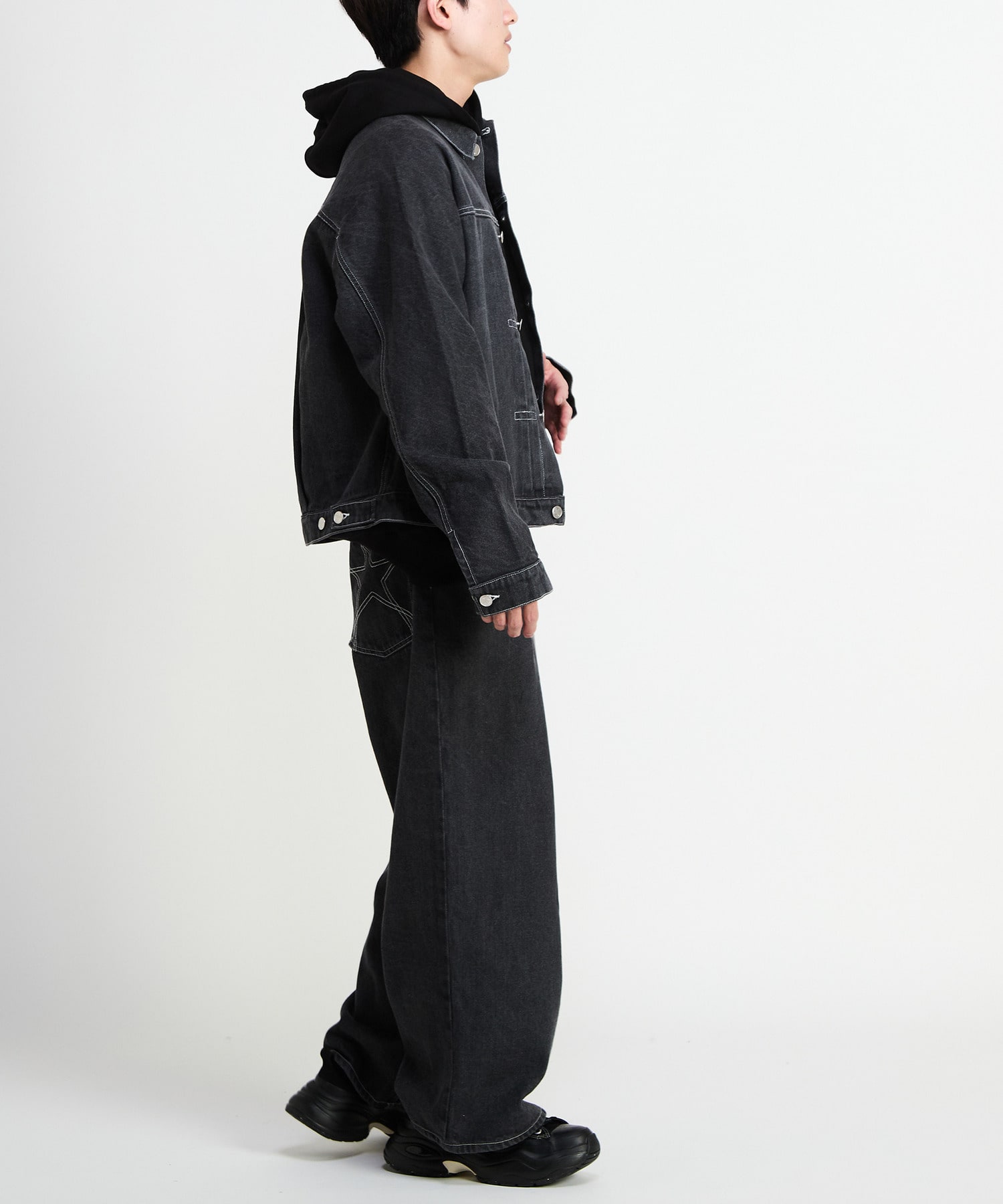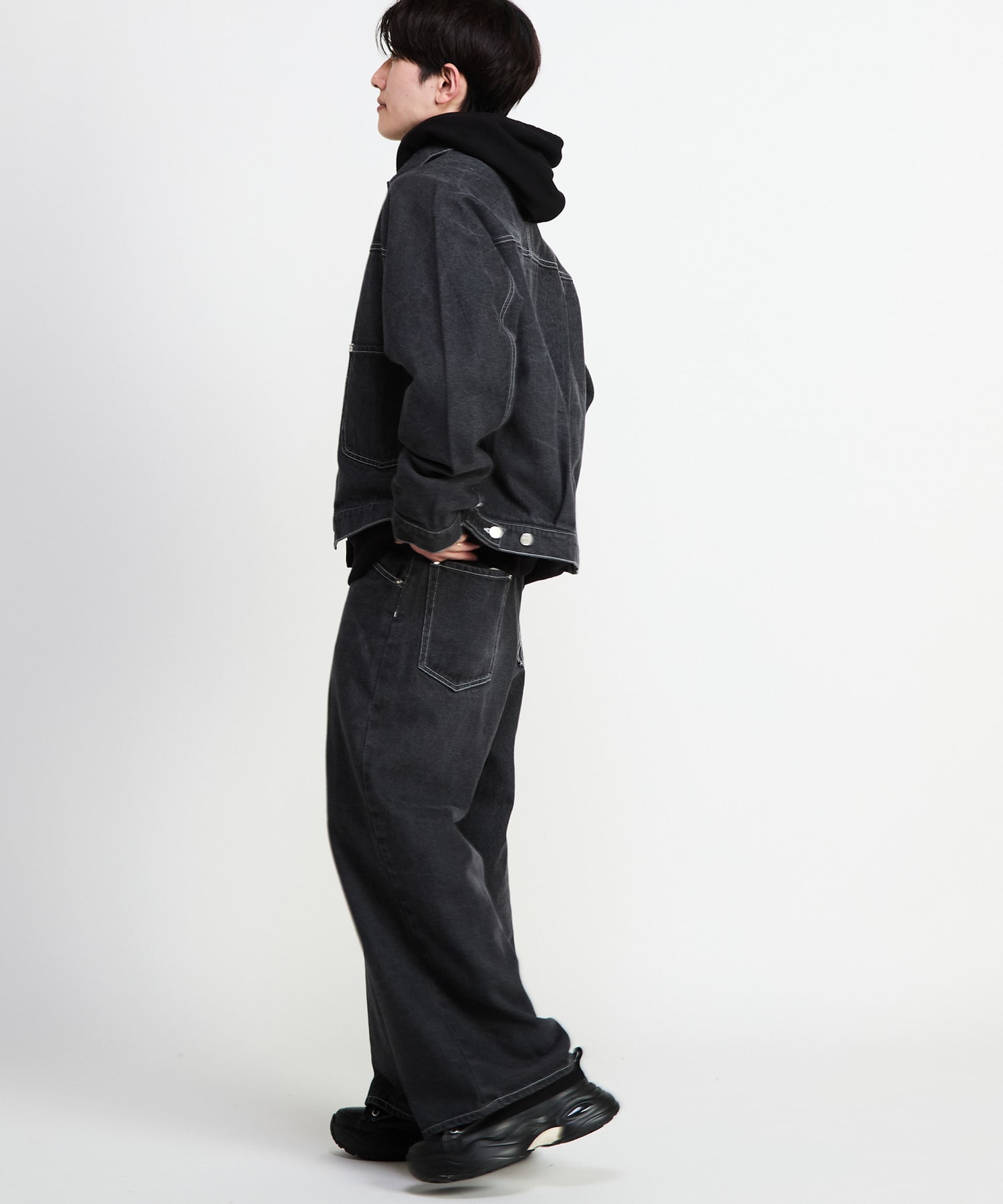 同素材のデニムジャケット(A2853FJM341)とセットアップで着用すればルーズでこなれ感のあるデニムスタイルに。