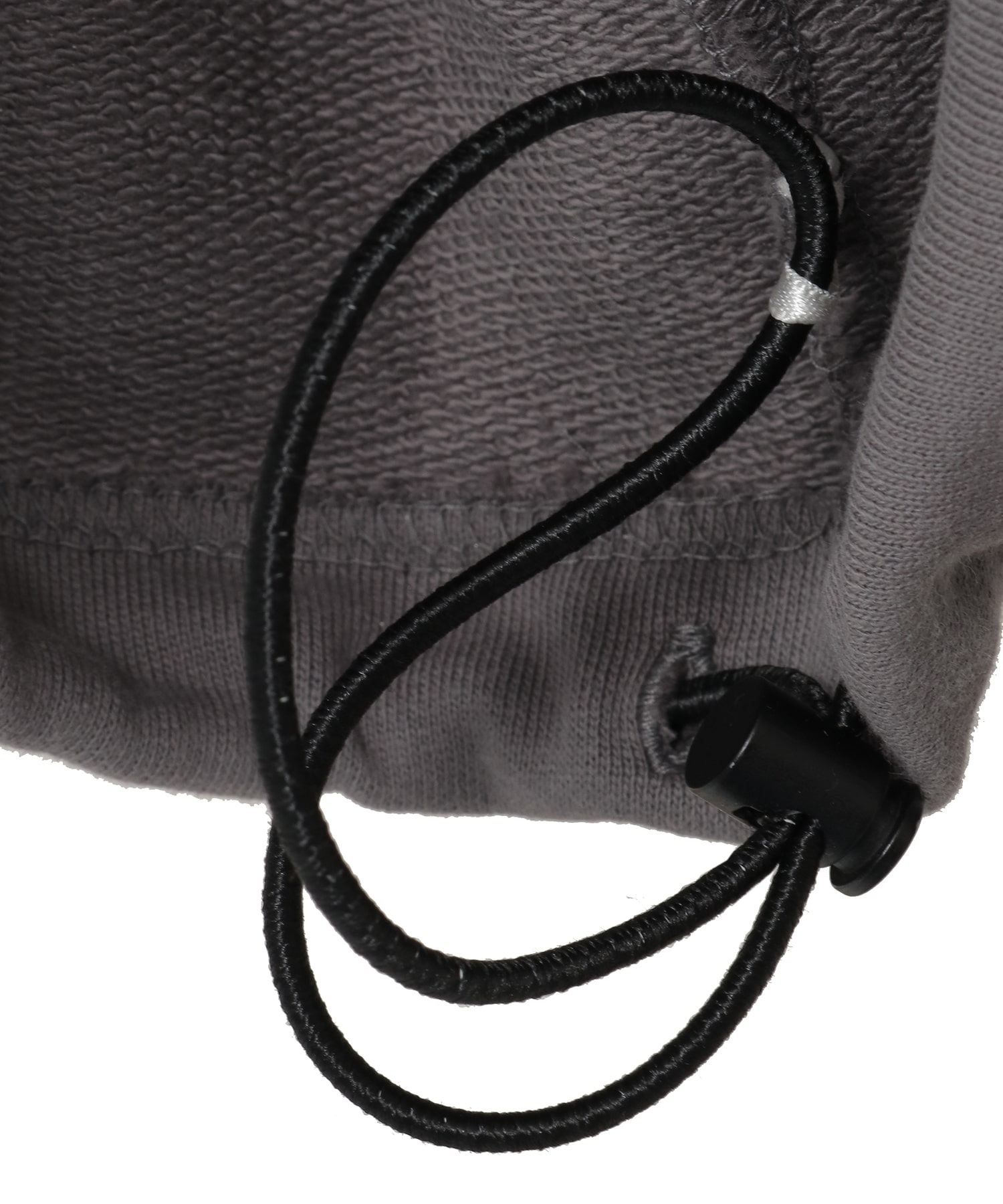 ワイドシルエットでリラックス感がありつつ、裾にはドローコードを配しており、スタイリングに応じてシルエットの変化を楽しめる2WAY使用。