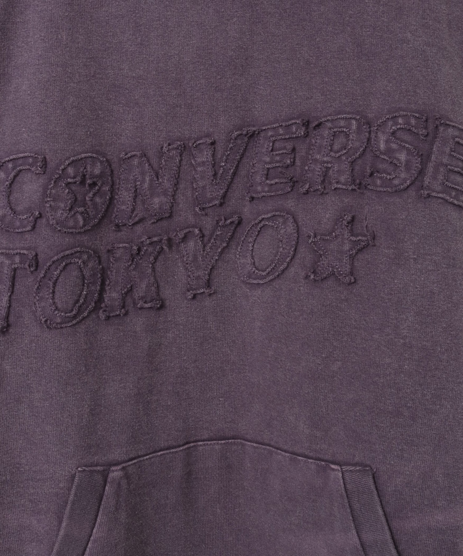 フロントには「CONVERSE TOKYO」のロゴを立体感のあるパッチ刺繍で大胆に施し、目を引くアクセントに。