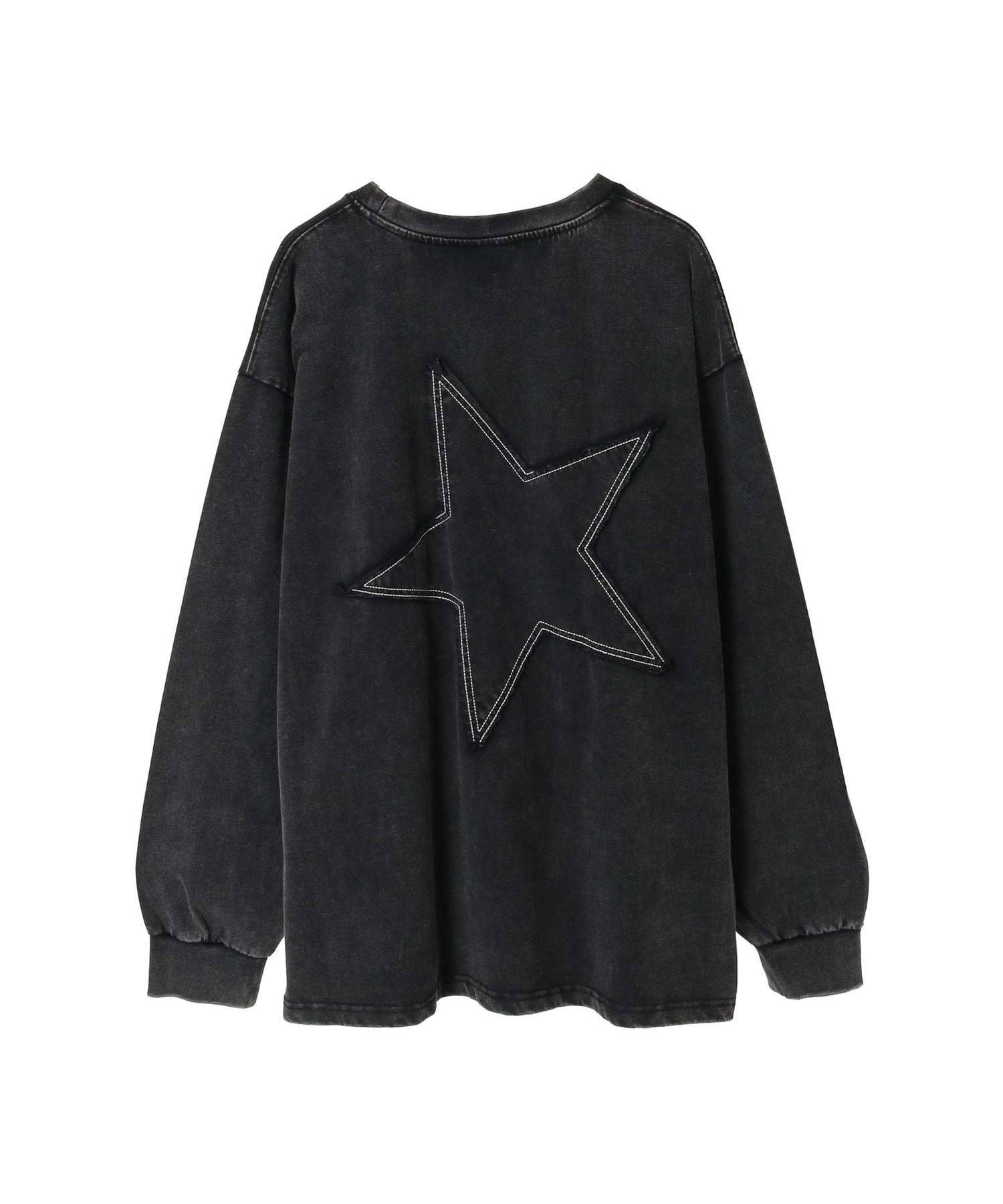 ケミカルウォッシュ加工による独特の色落ちと、背面に大胆にあしらった星パッチが目を惹くロンT。