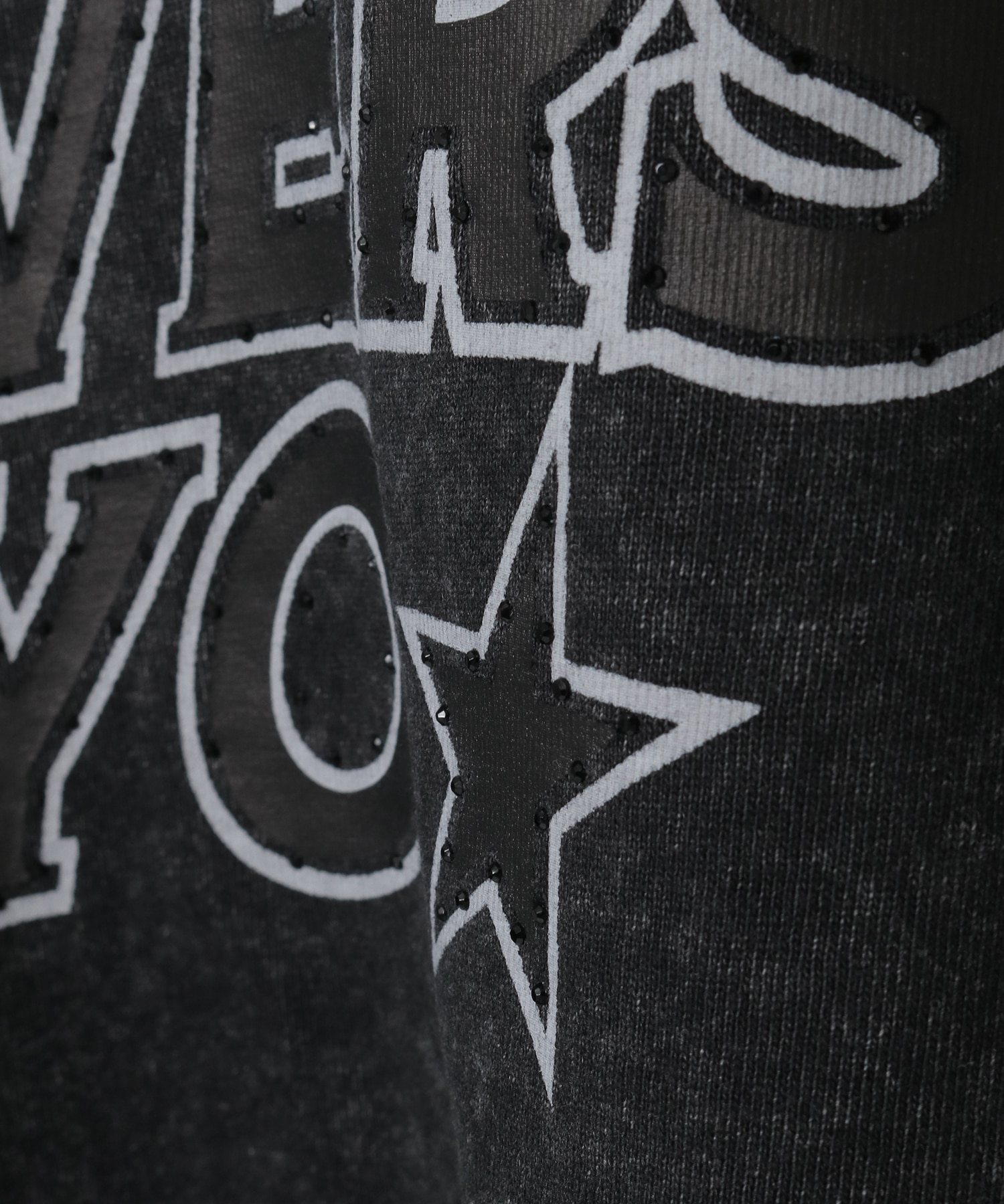 ロゴには、HOTFIX(ホットフィックス)加工を施したラインストーンのような装飾が施されており、さりげない輝きをプラス。