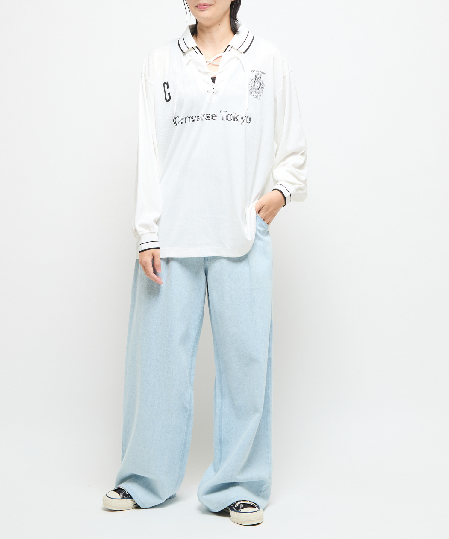 LACE-UP COLLAR SOCCER LONGSLEEVE TEE