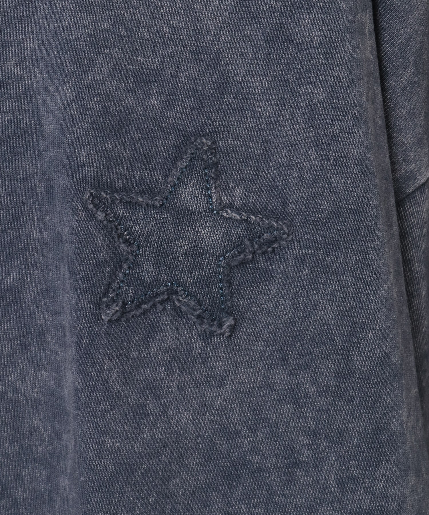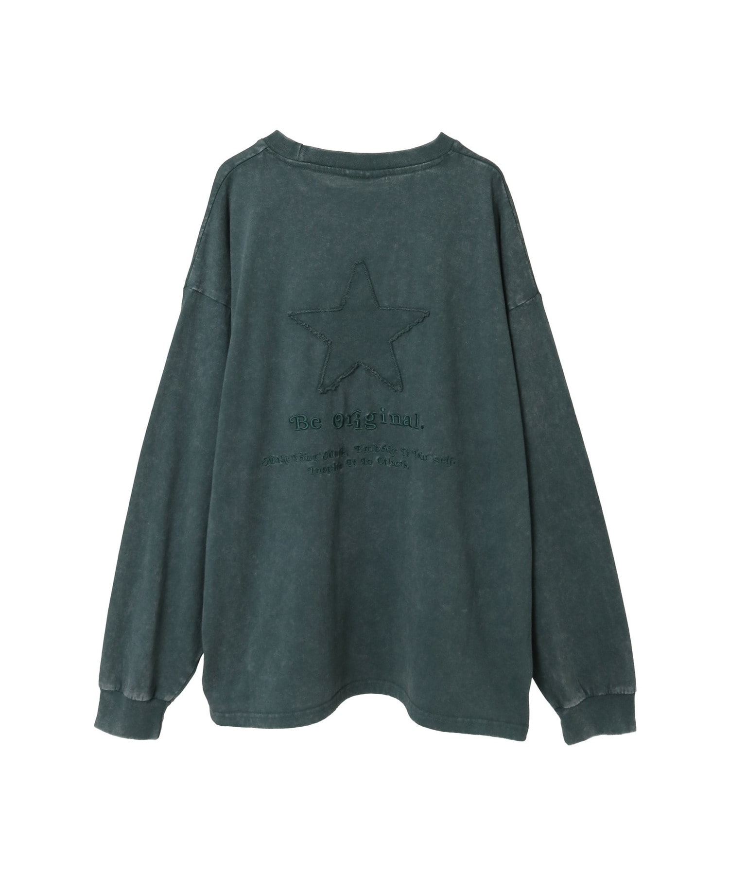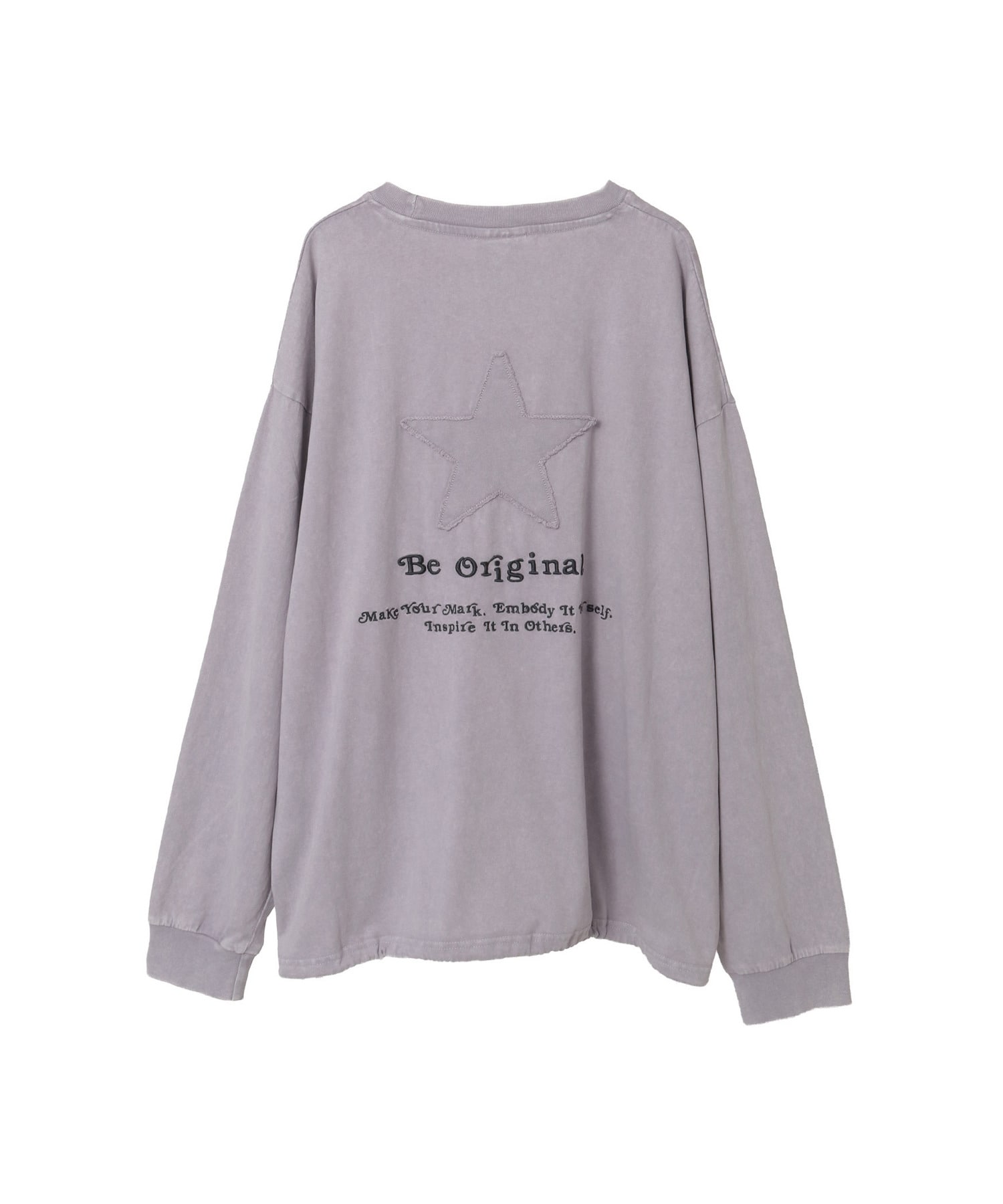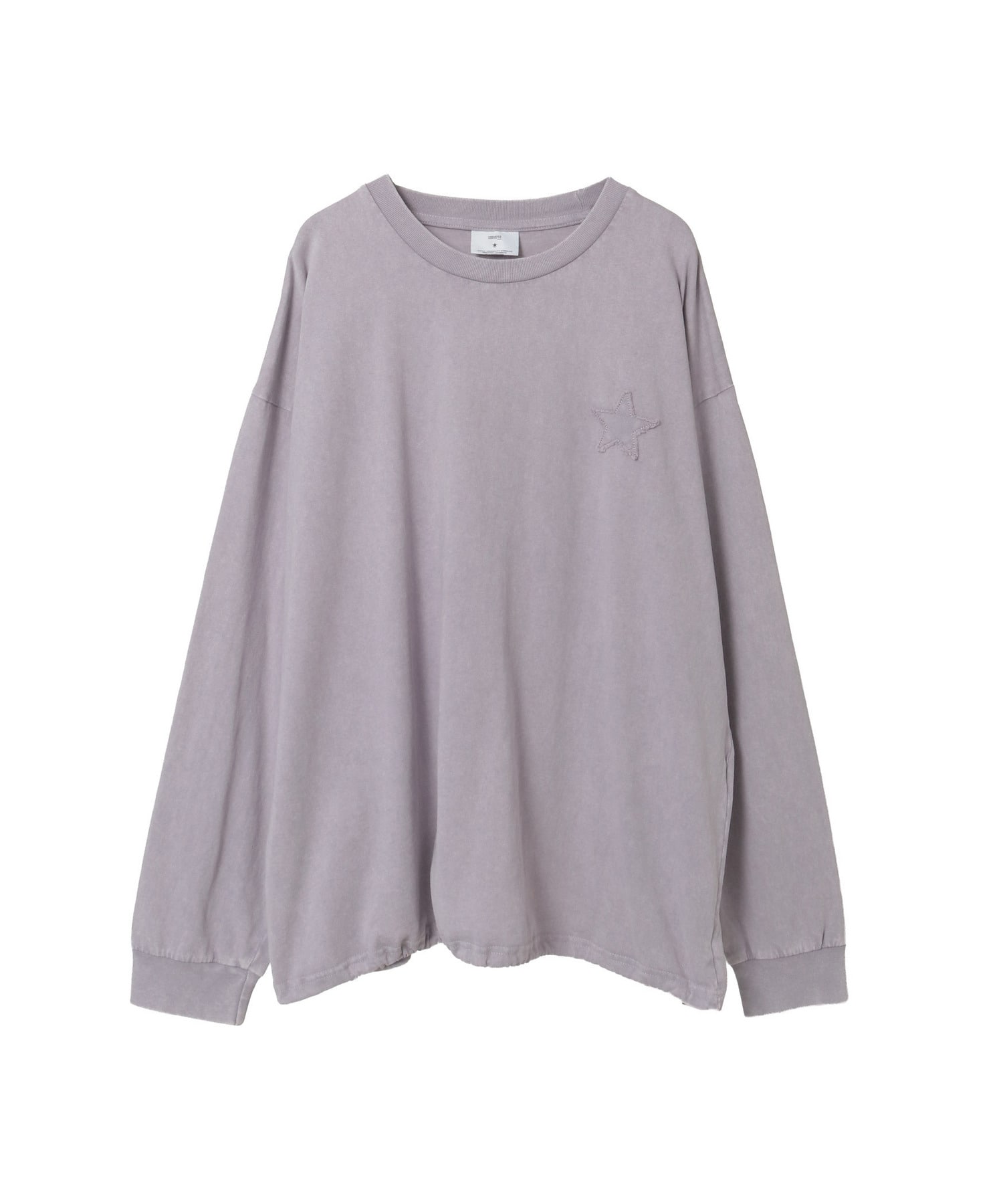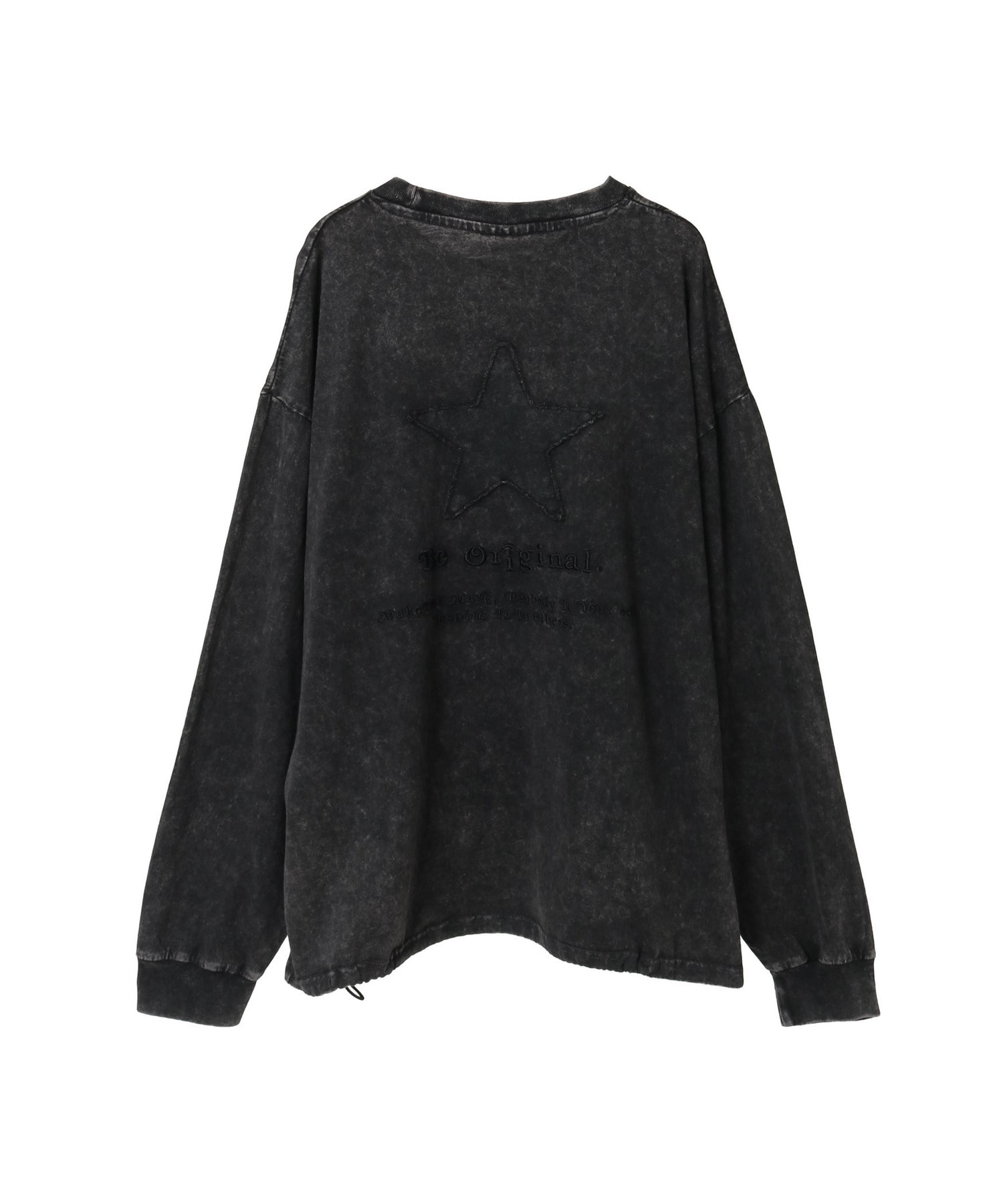 製品染めによる自然なの色落ちと、背面に大胆にあしらった星パッチが目を惹くロングスリーブTシャツ。