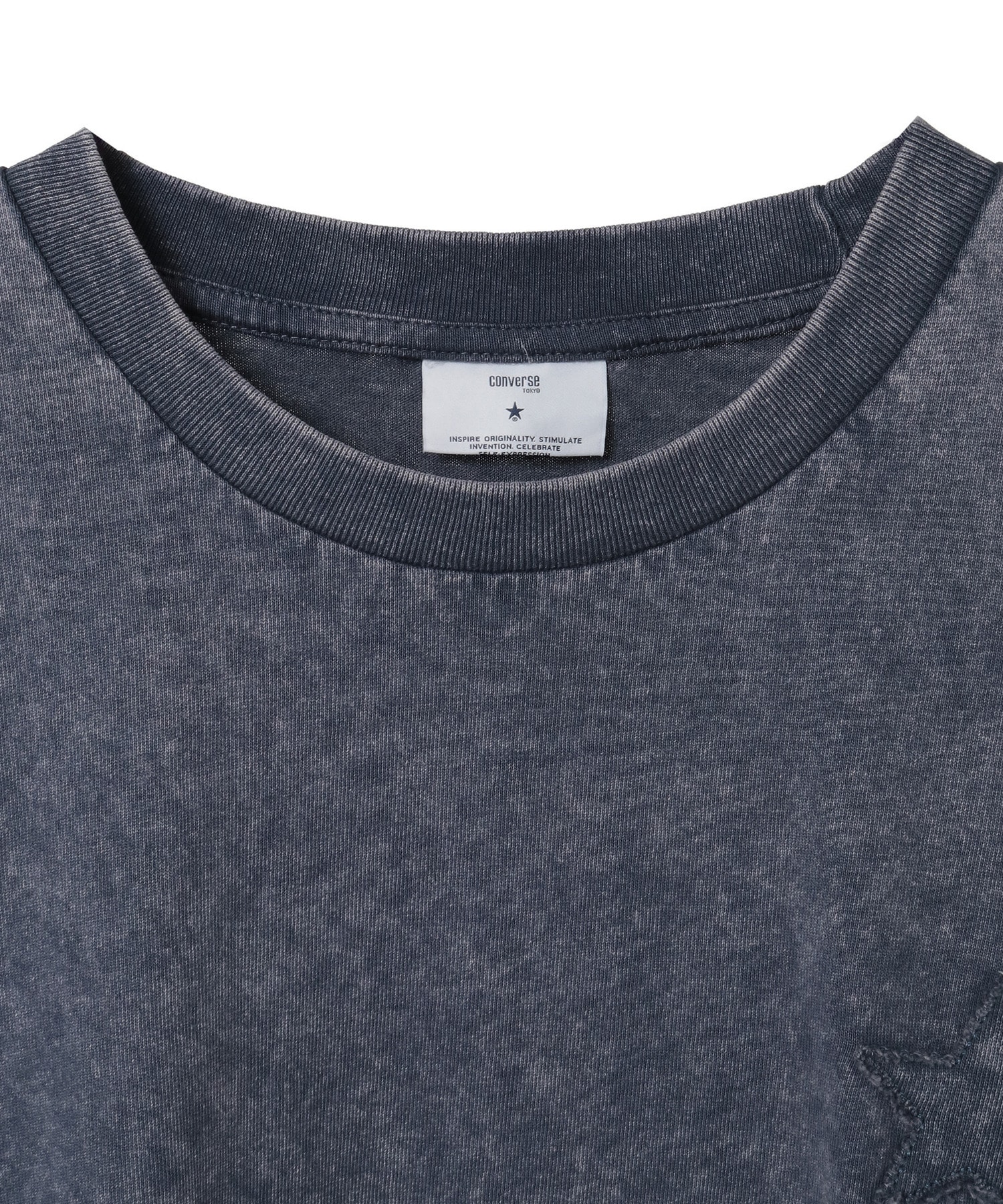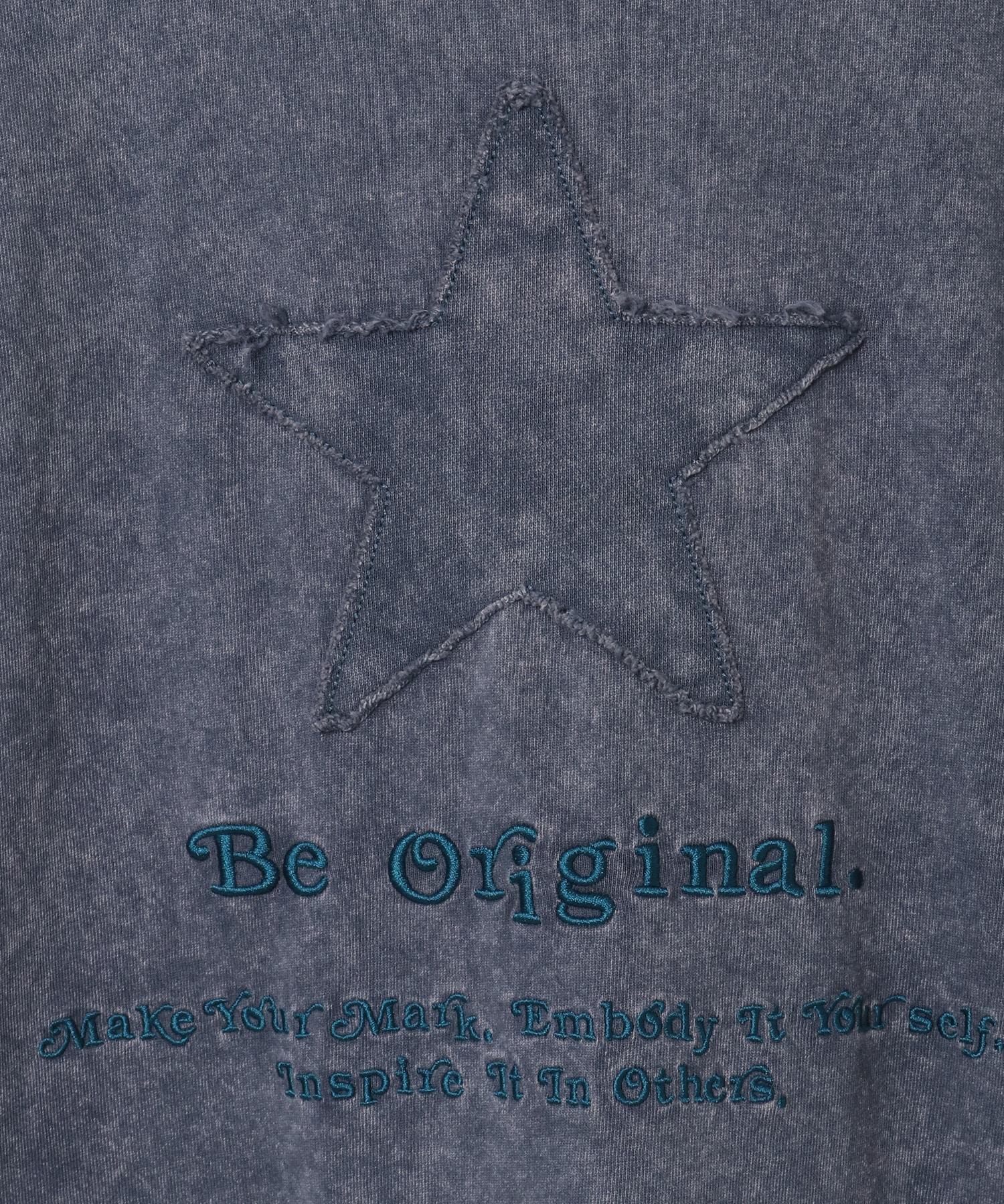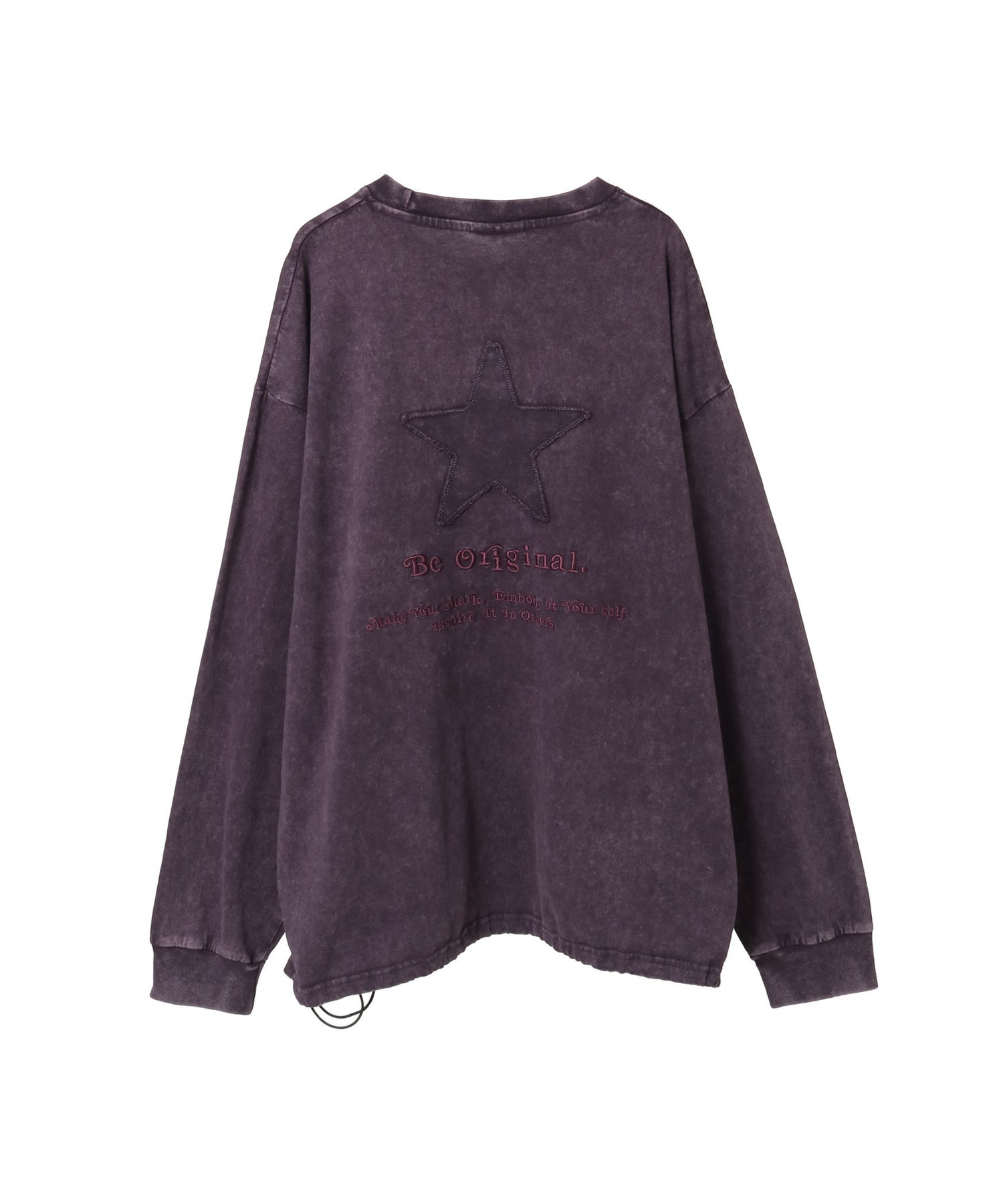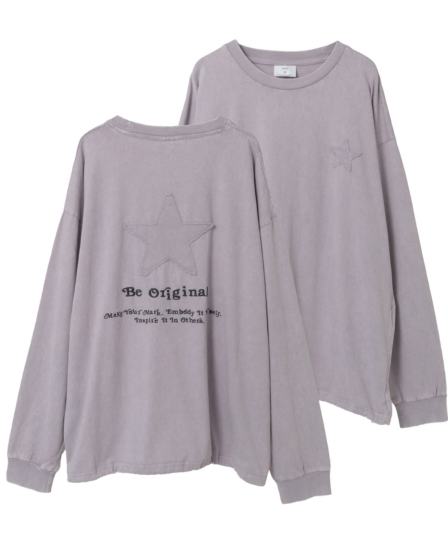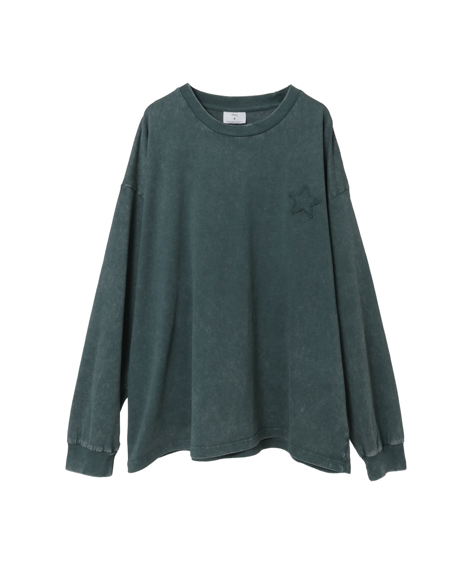 製品染めによる自然なの色落ちと、背面に大胆にあしらった星パッチが目を惹くロングスリーブTシャツ。