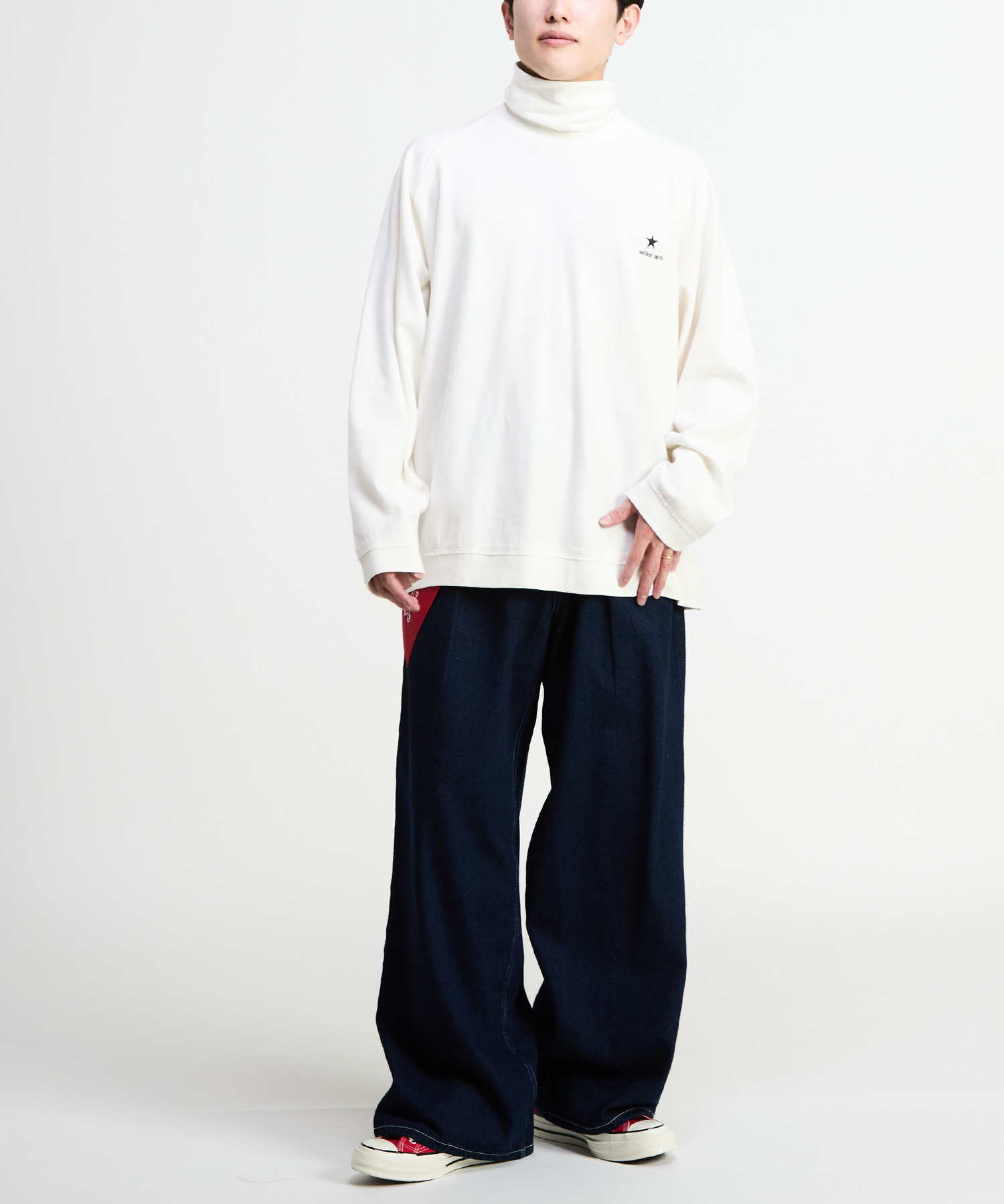 ピグメント加工によるヴィンテージライクな風合いが魅力のタートルネックロンT。