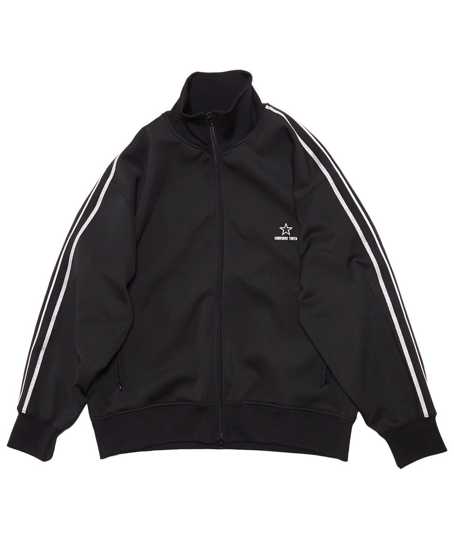 サイドの編立リブに”ALLSTAR”のラインをデザインに落とし込み、ラメ素材を使用することでよりトレンドライクな印象に仕上げたトラックジャケット。