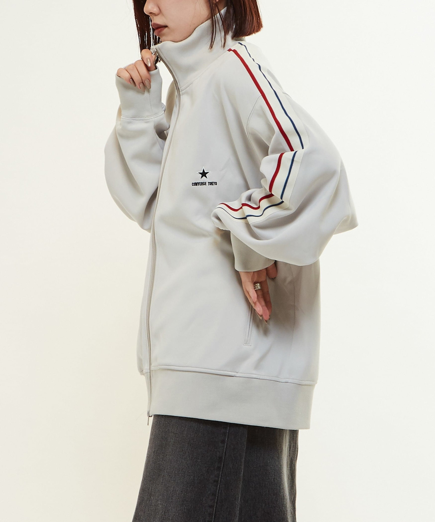 サイドの編立リブに”ALLSTAR”のラインをデザインに落とし込み、ラメ素材を使用することでよりトレンドライクな印象に仕上げたトラックジャケット。