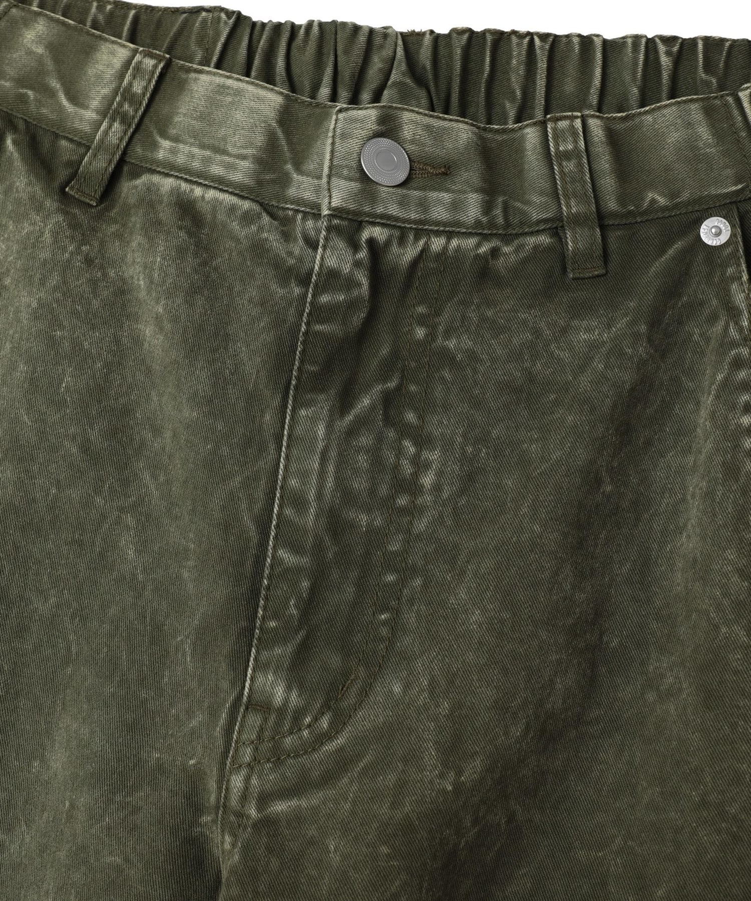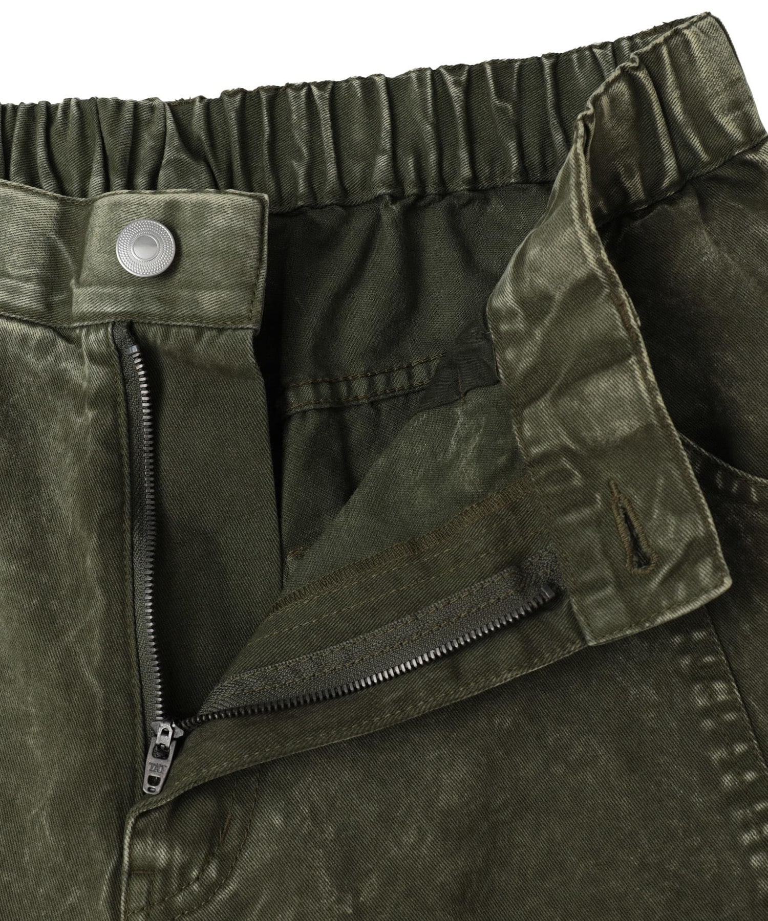 全体にピグメント染めやケミカル加工を施すことで、穿き込んだような独特のムラ感と、ヴィンテージデニムのような奥行きのある表情に。