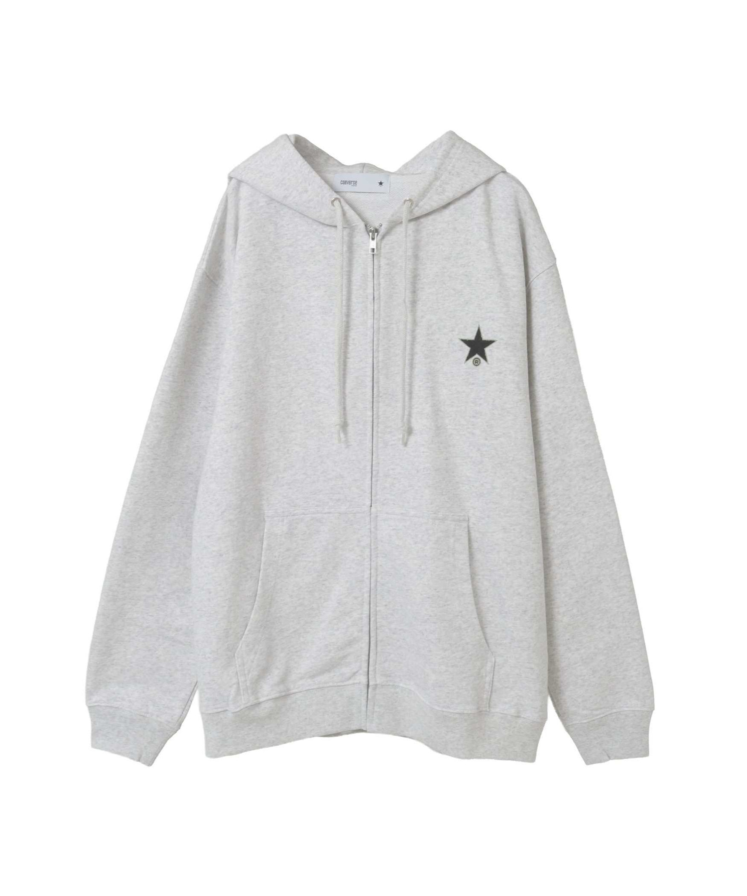 繊細なタッチで描いたグラフィックが目を惹くジップパーカー。
