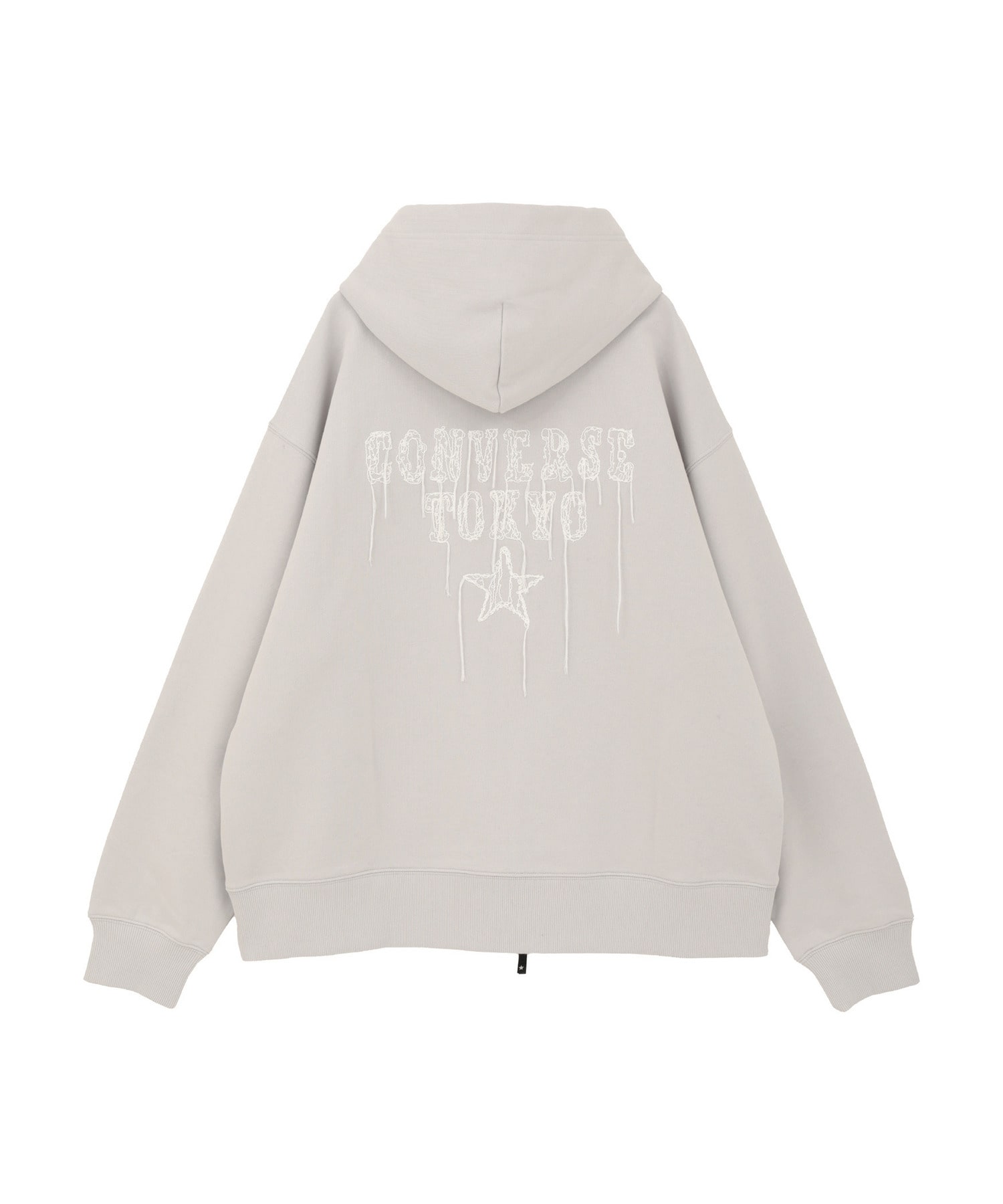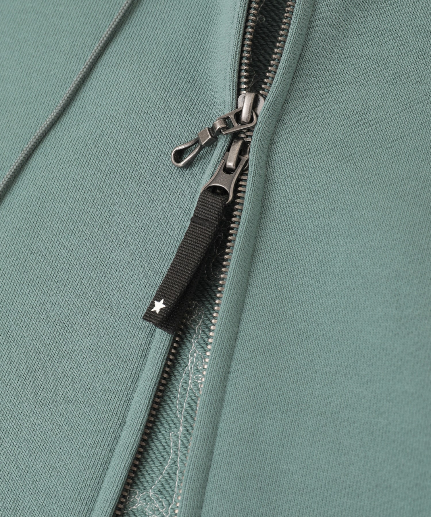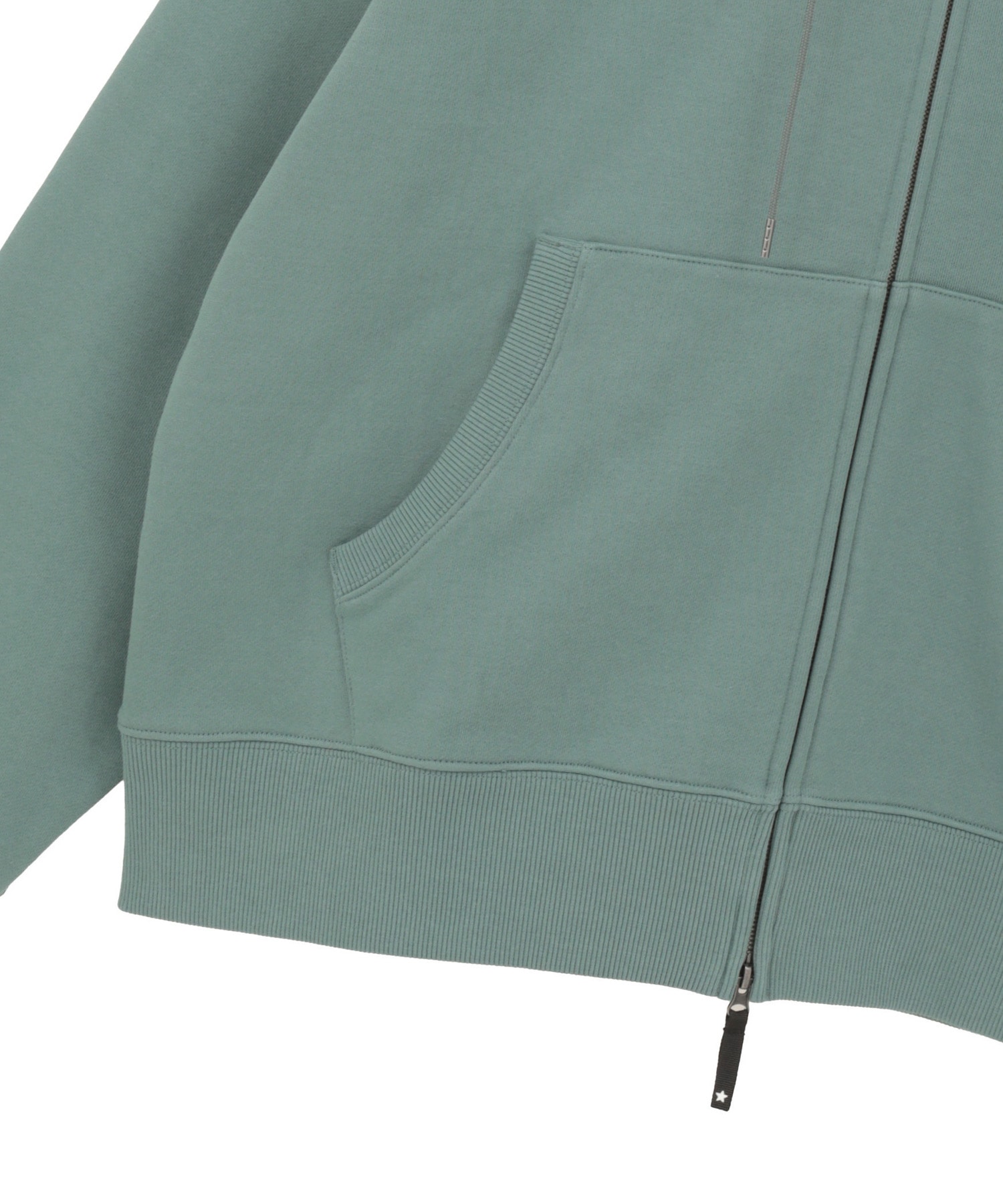 立体的な刺繍ロゴが目を惹くジップパーカー。