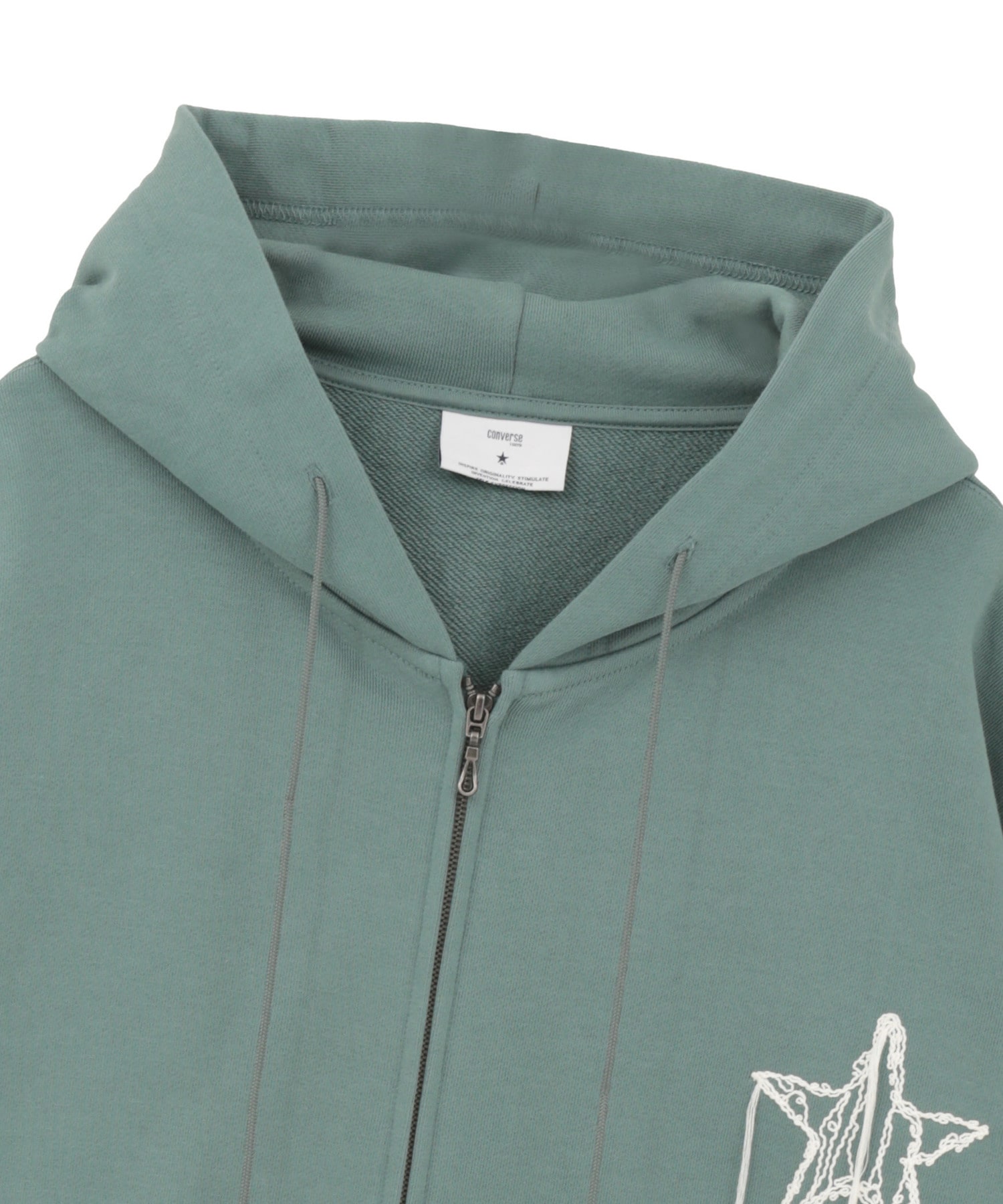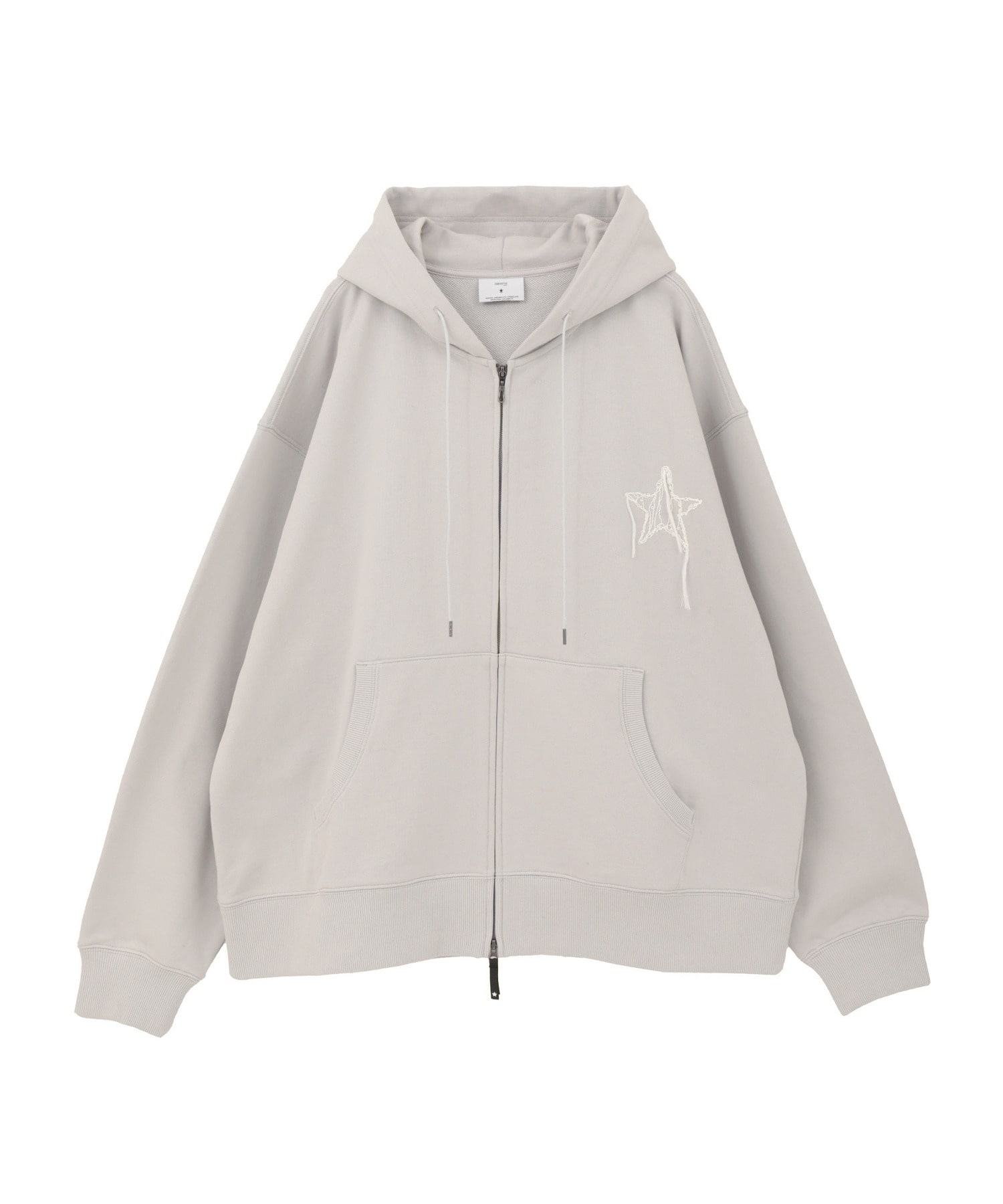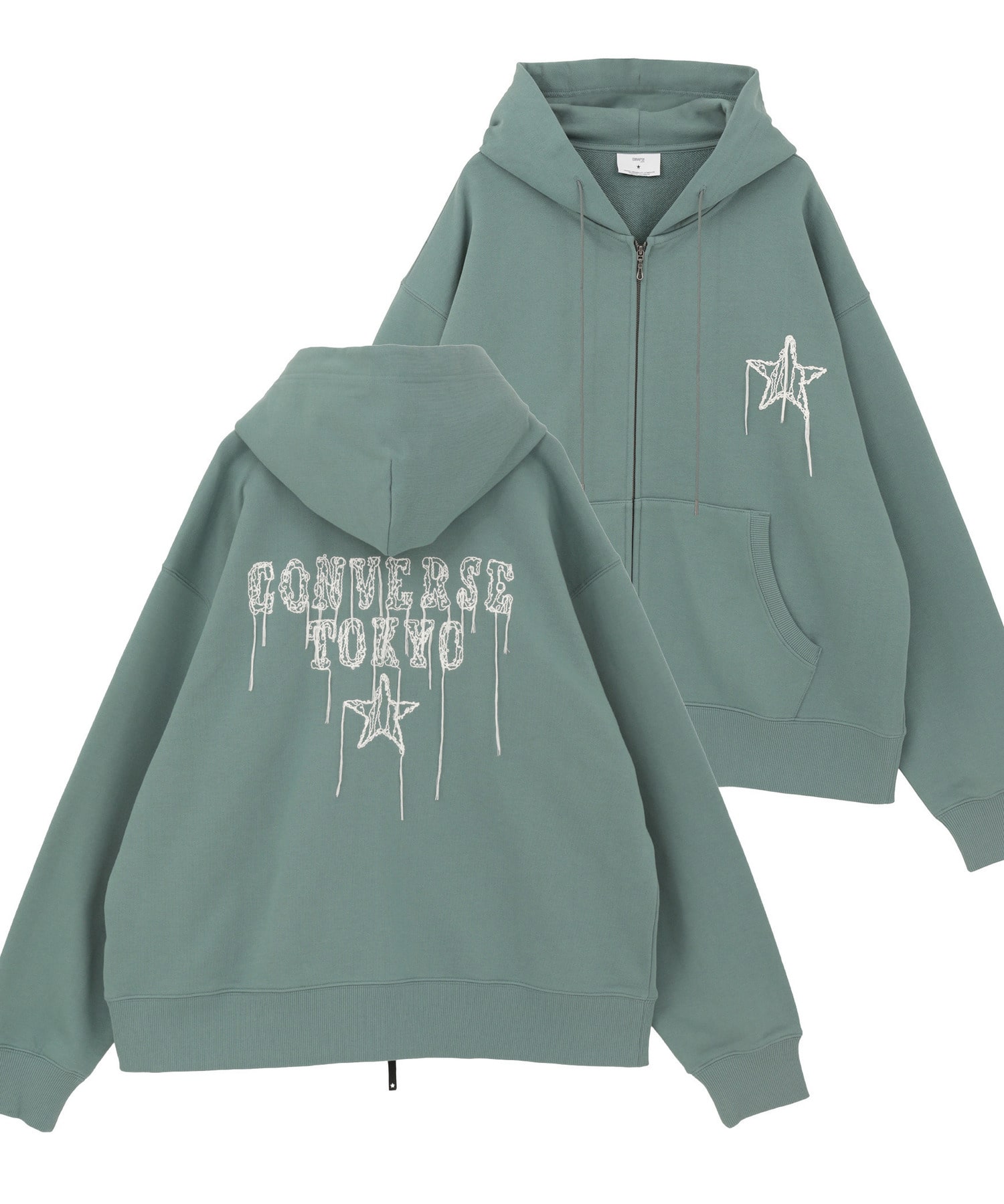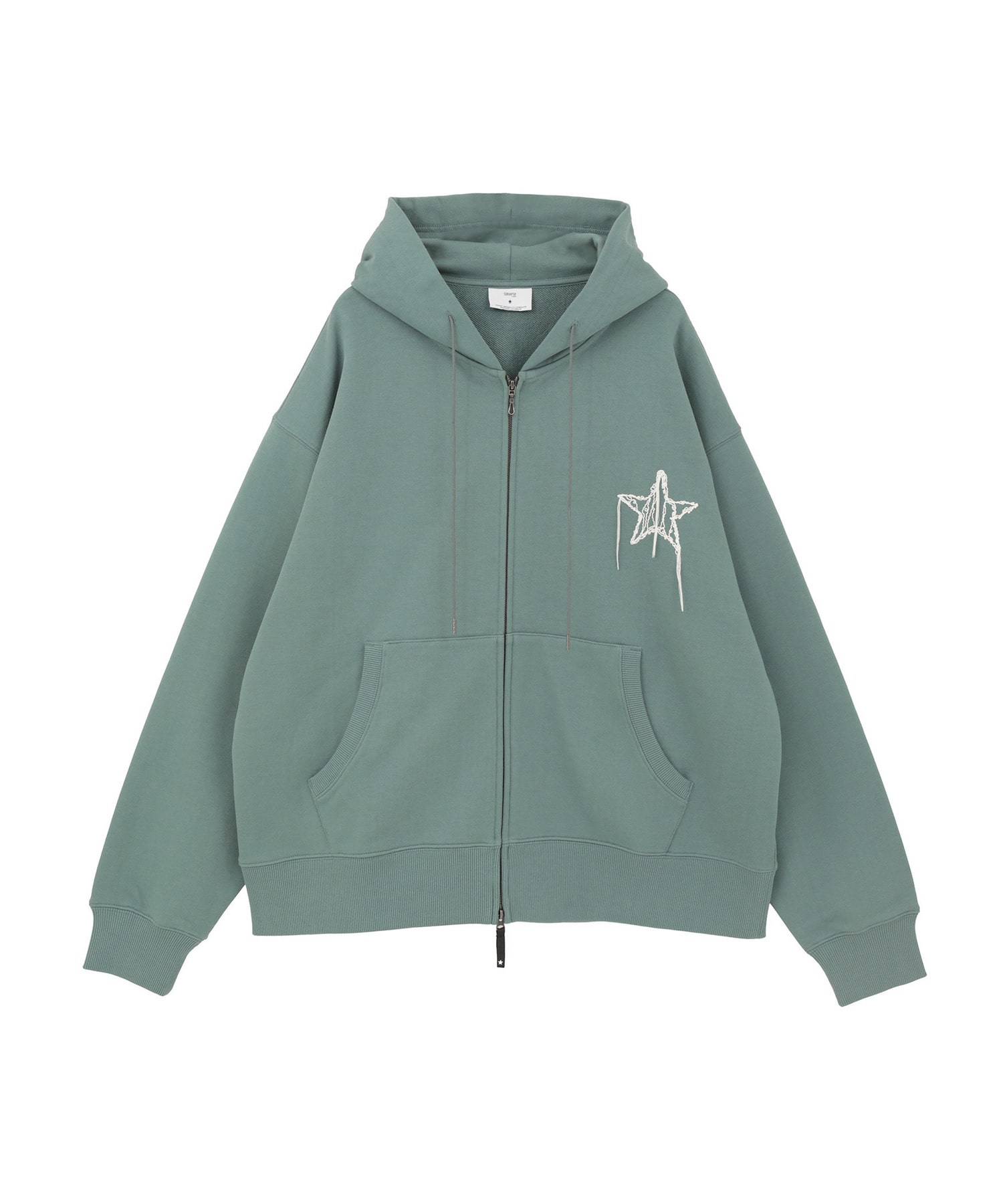 立体的な刺繍ロゴが目を惹くジップパーカー。