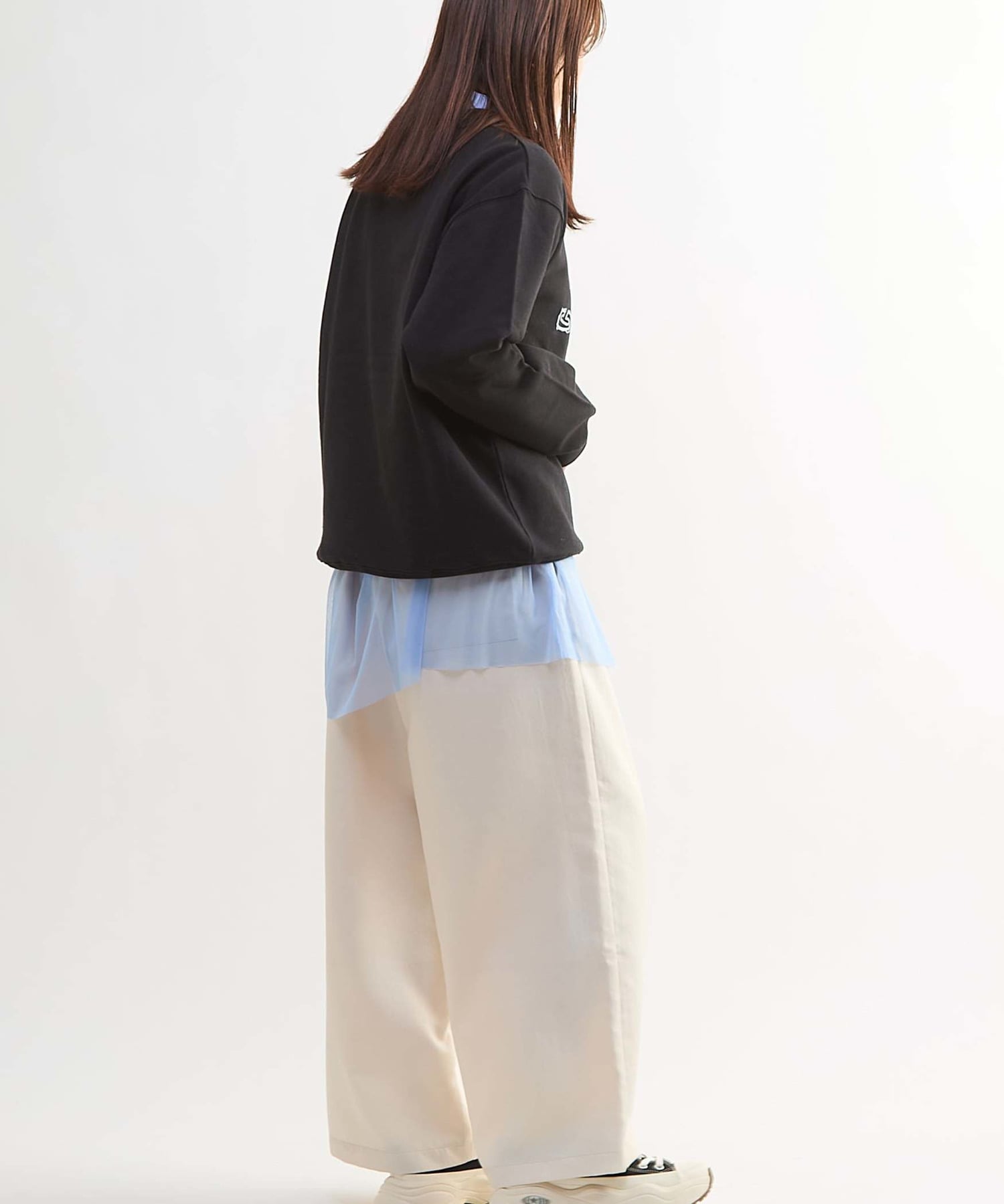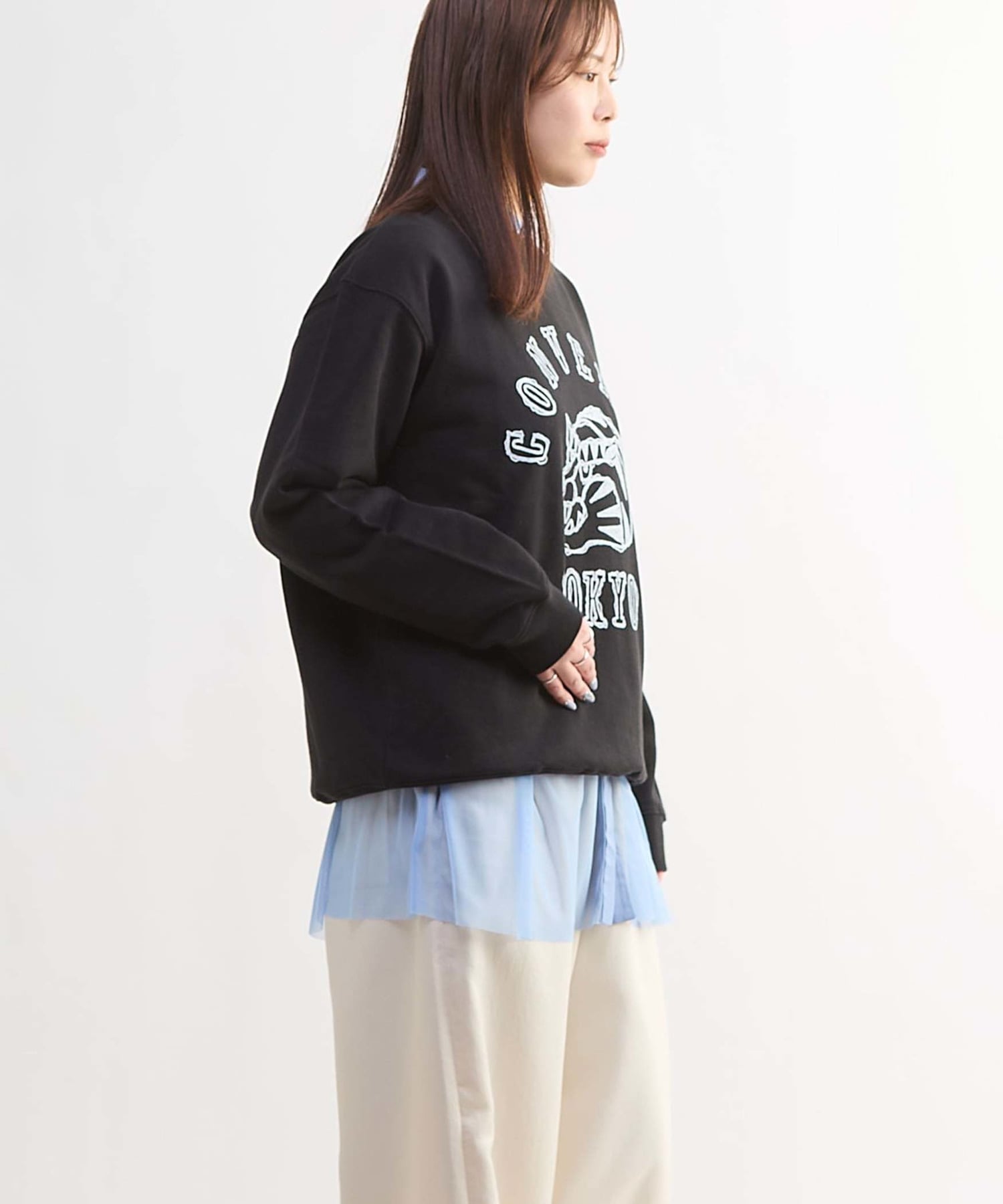 ほどよくゆとりのあるシルエットで、1枚着でもレイヤードでも様になるデザイン。