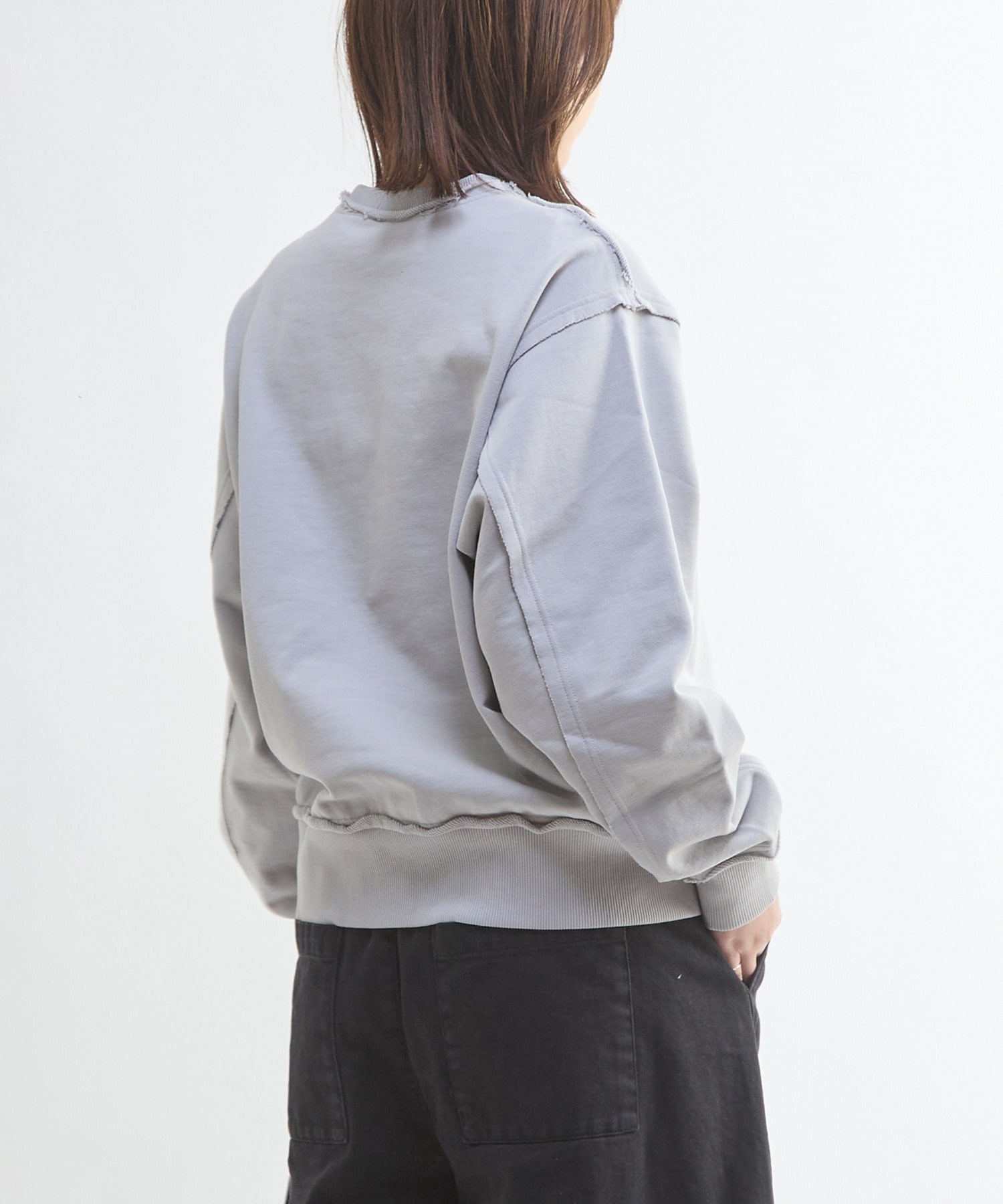首元や裾、袖口のリブ部分には、さりげないダメージ加工を施し、ヴィンテージライクなこなれ感を演出。