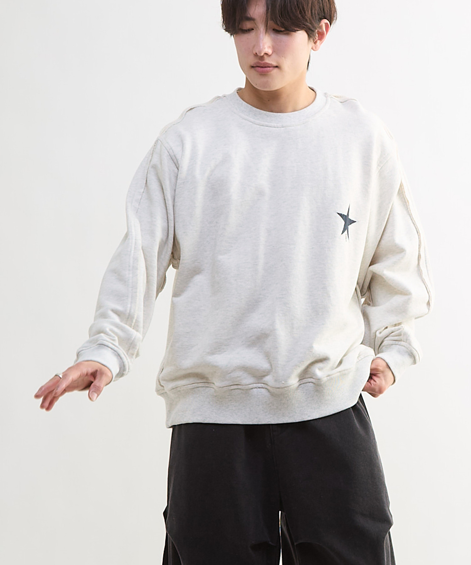 シーズンレスで着用可能な、程よい肉感のスウェット素材を使用。